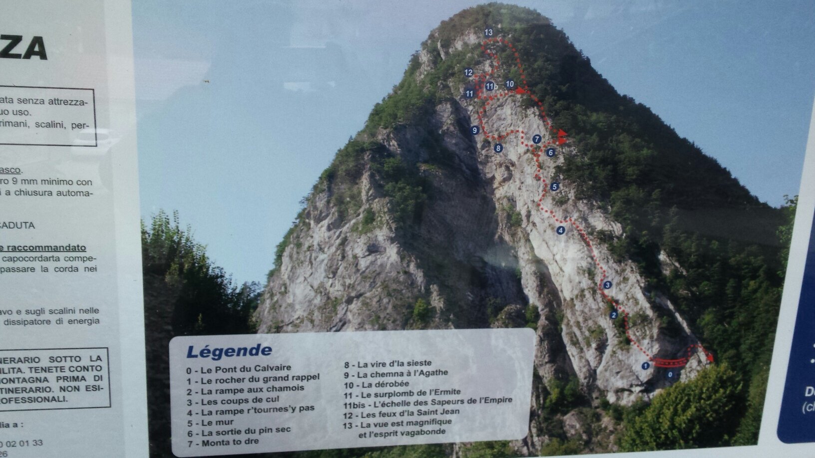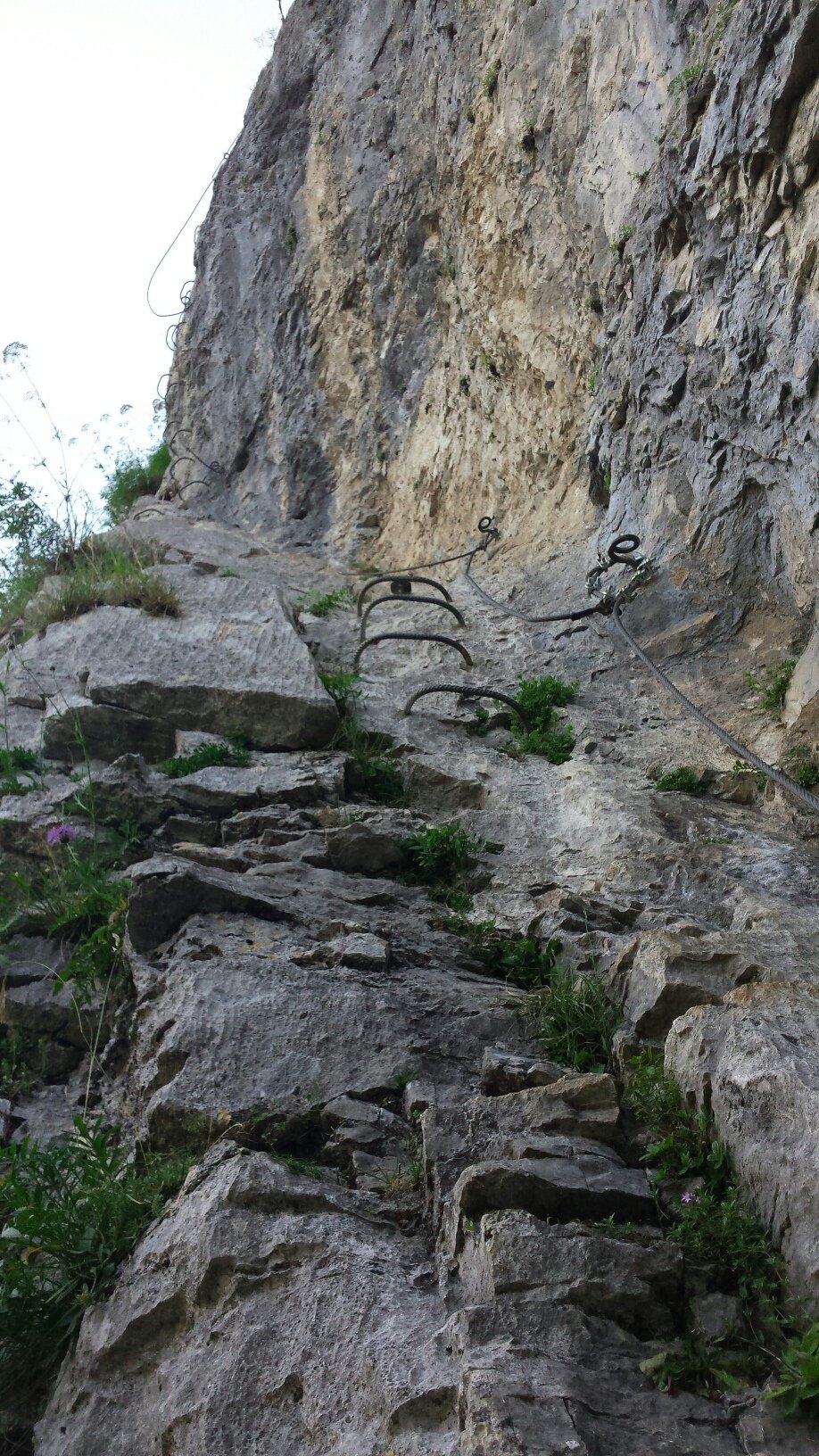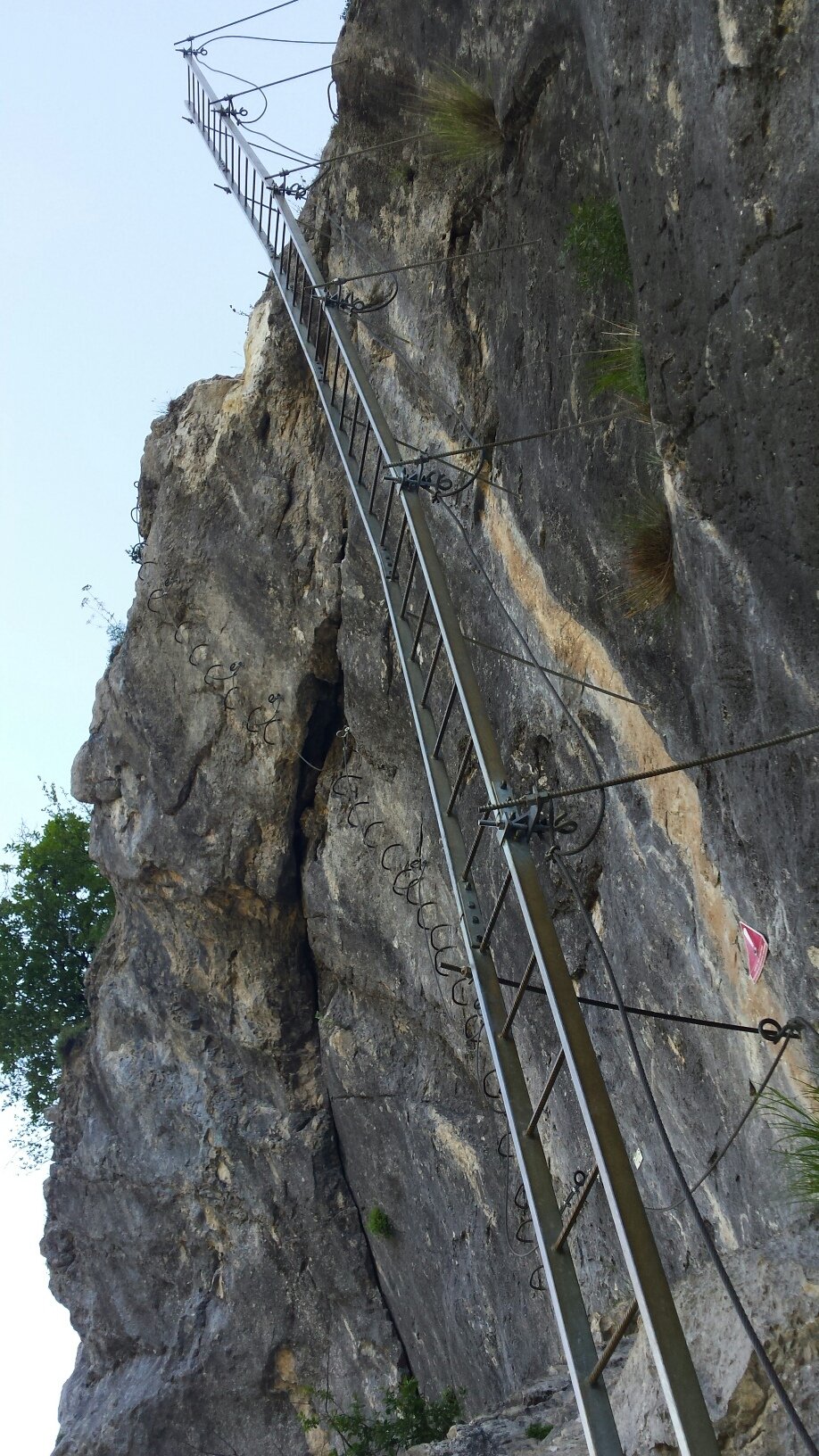 10 min dal parcheggio fino ai cavi. Un primo ponte di corde (2 corde) da subito la svegli. La salita prosegue traversando verso sx con dei brevi passaggi ripidi/strapiombanti. Ottimamente attrezzata con gradini, lasco del cavo per evitare la rottura dei moschettoni e code di porco sui fix per permettere di salire con una corda assicurando i meno esperti. Esiste una via di fuga posta a 3/4 ben segnalata.