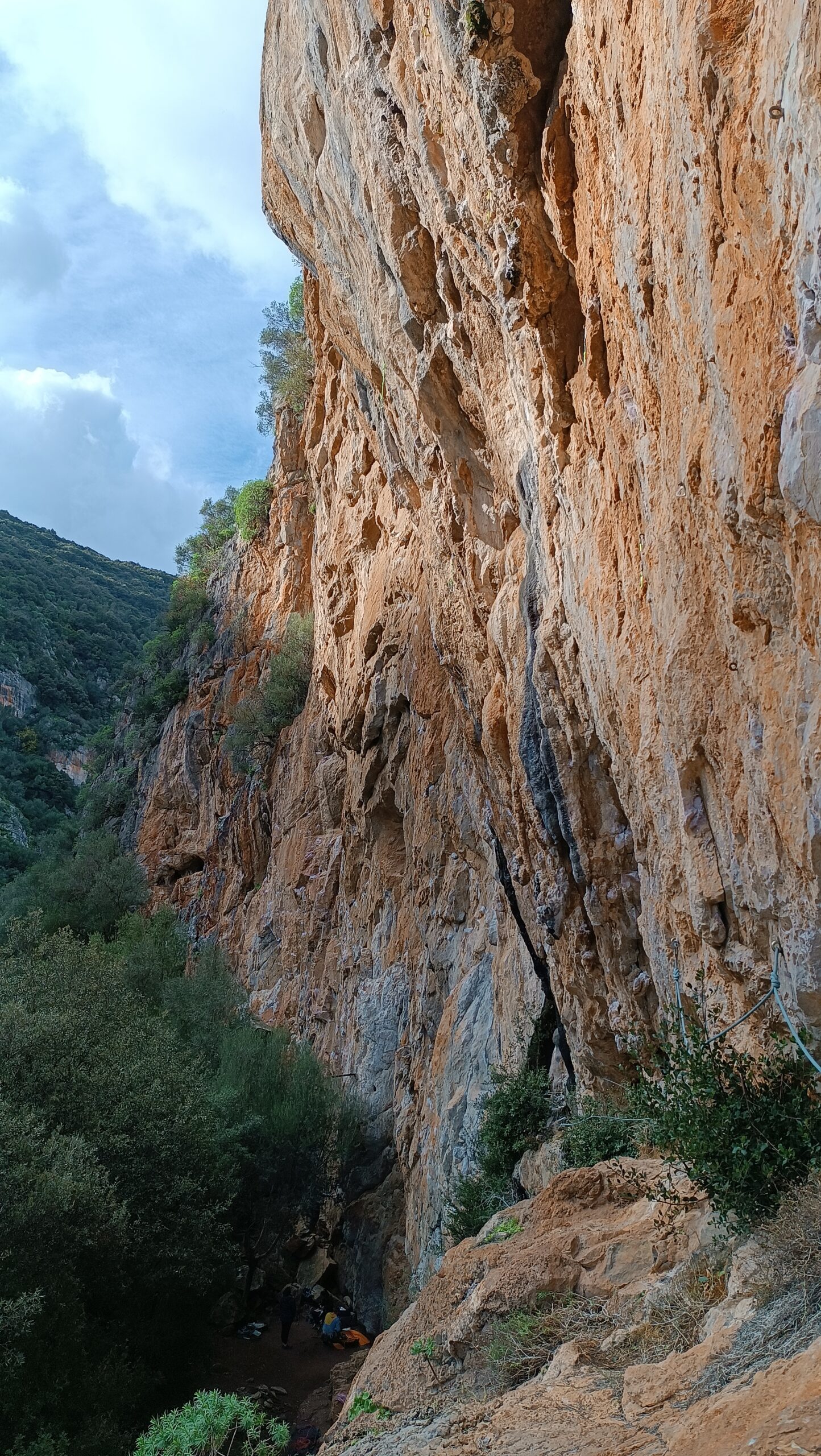 La falesia Ruota del Tempo è caratterizzata da tiri in prevalenza strapiombanti e di dita.