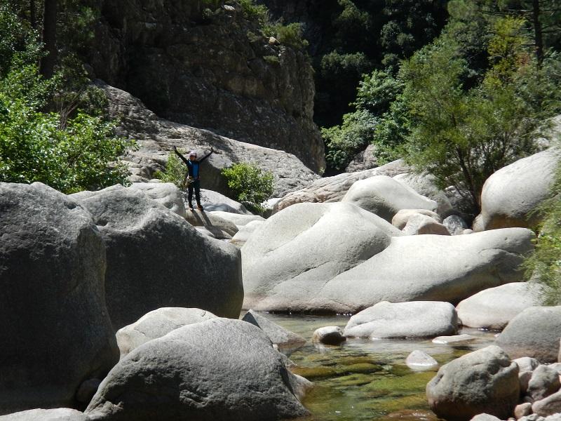 Al penultimo tornante salendo alla bocca di Larone dalla bavella, prendere un sentiero evidente a dx, scendere nel rio all'altezza del primo grande torrione tafonato, su traccia scoscesa.0h45