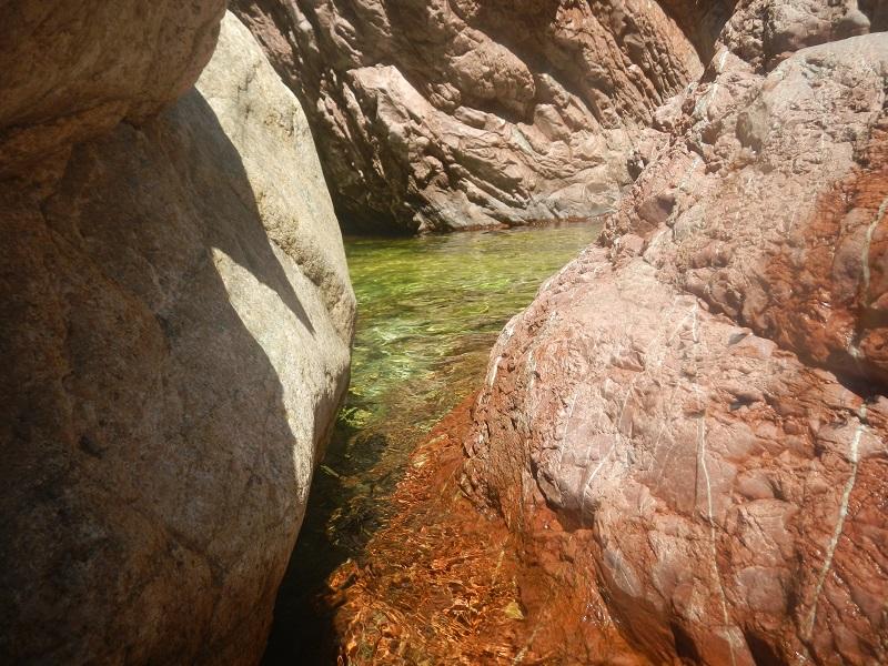 Un trionfo dei sensi dentro La Vacca, la straclassica dell’alta-rocca, acquatica e splendente coi suoi lunghi lamoni tuffabili e grossi pietroni bianchi stondati. Percorribile senza corda, max salto 13m ma volendo cercarsi grane si può alzare di molto il livello oltre i 20, in vasche profonde. Con Lucil in una gionata blù cobalto, puro divertimento in ambiente monumentale…la risalita fa sudare…