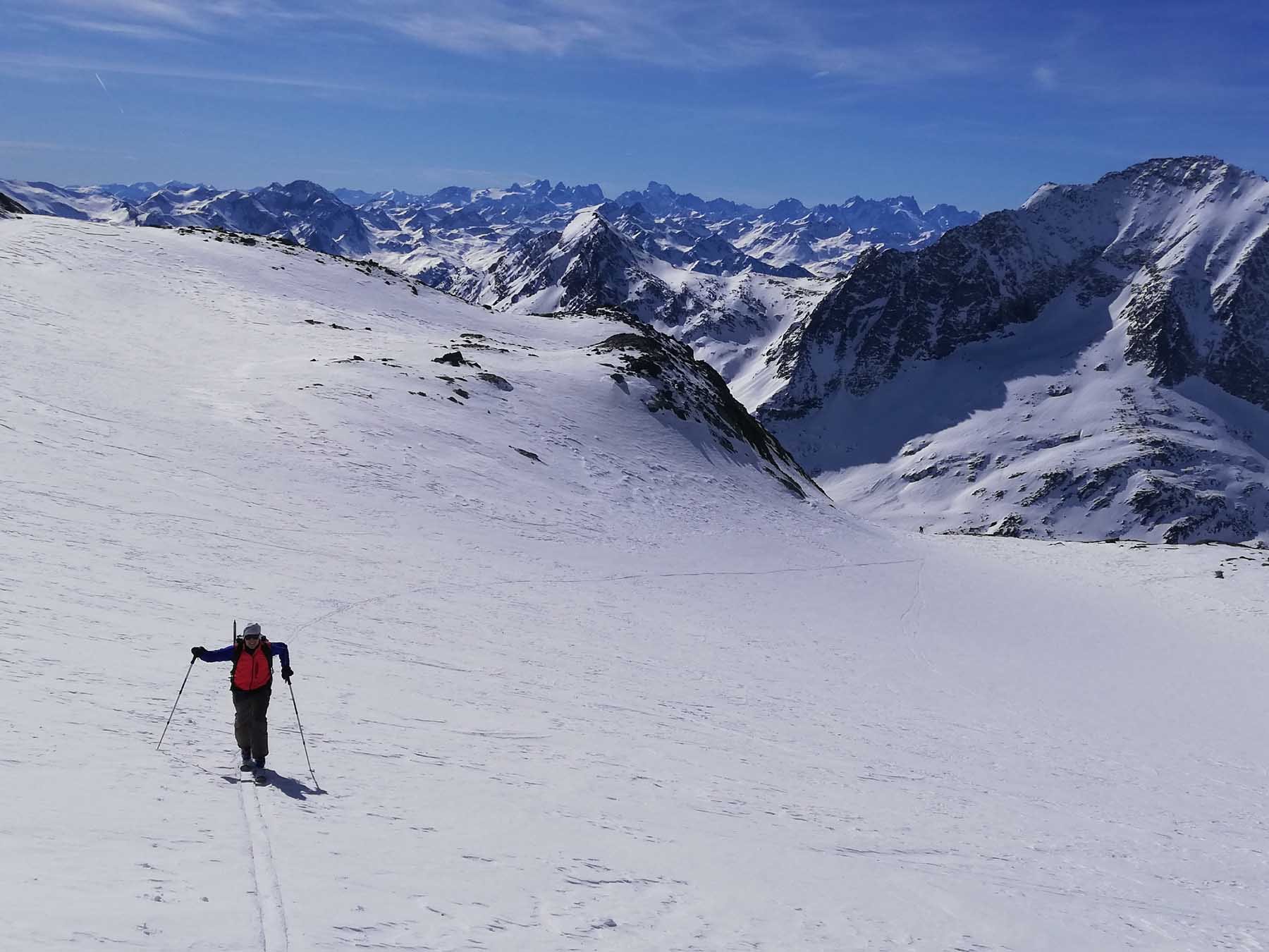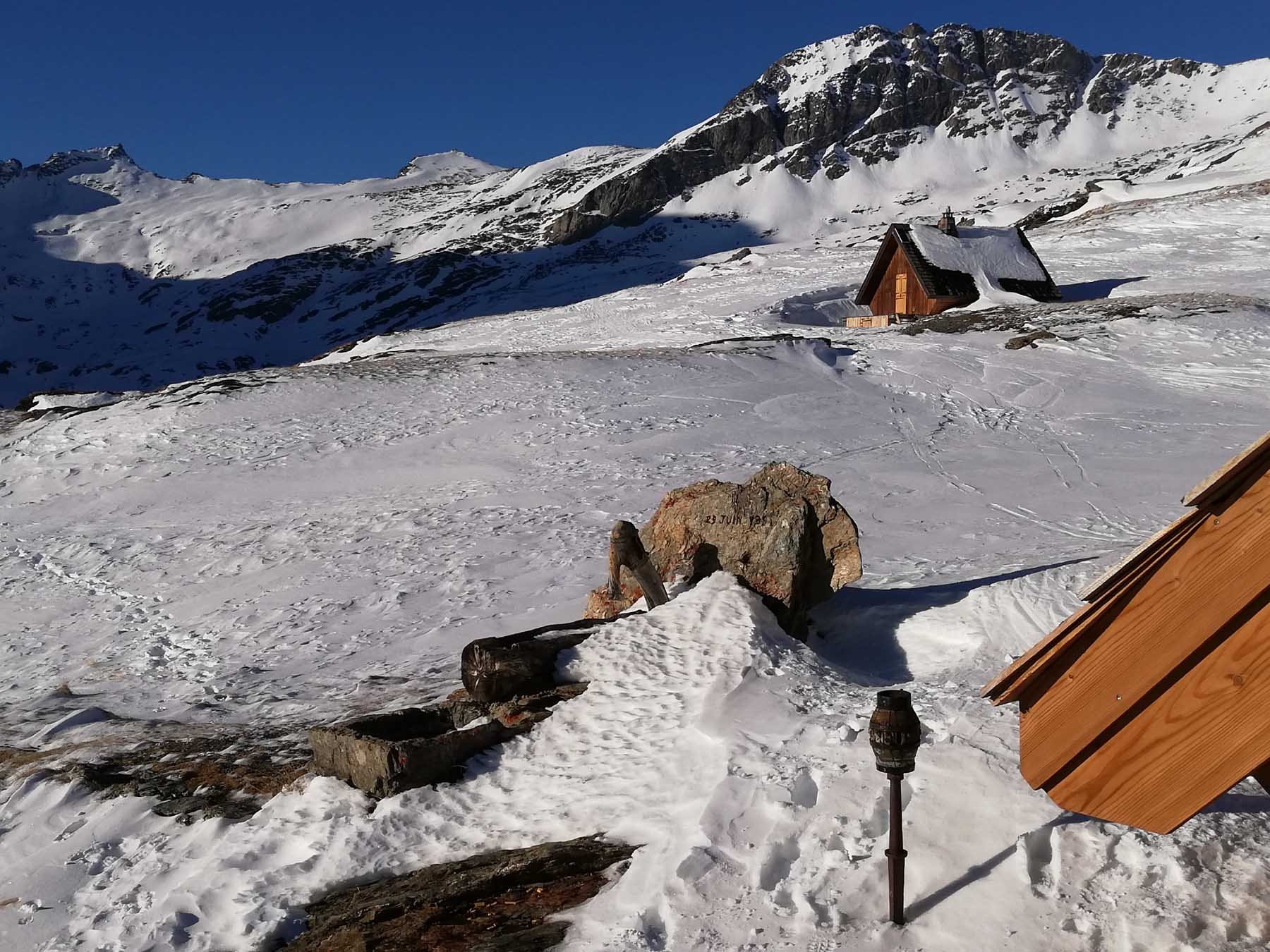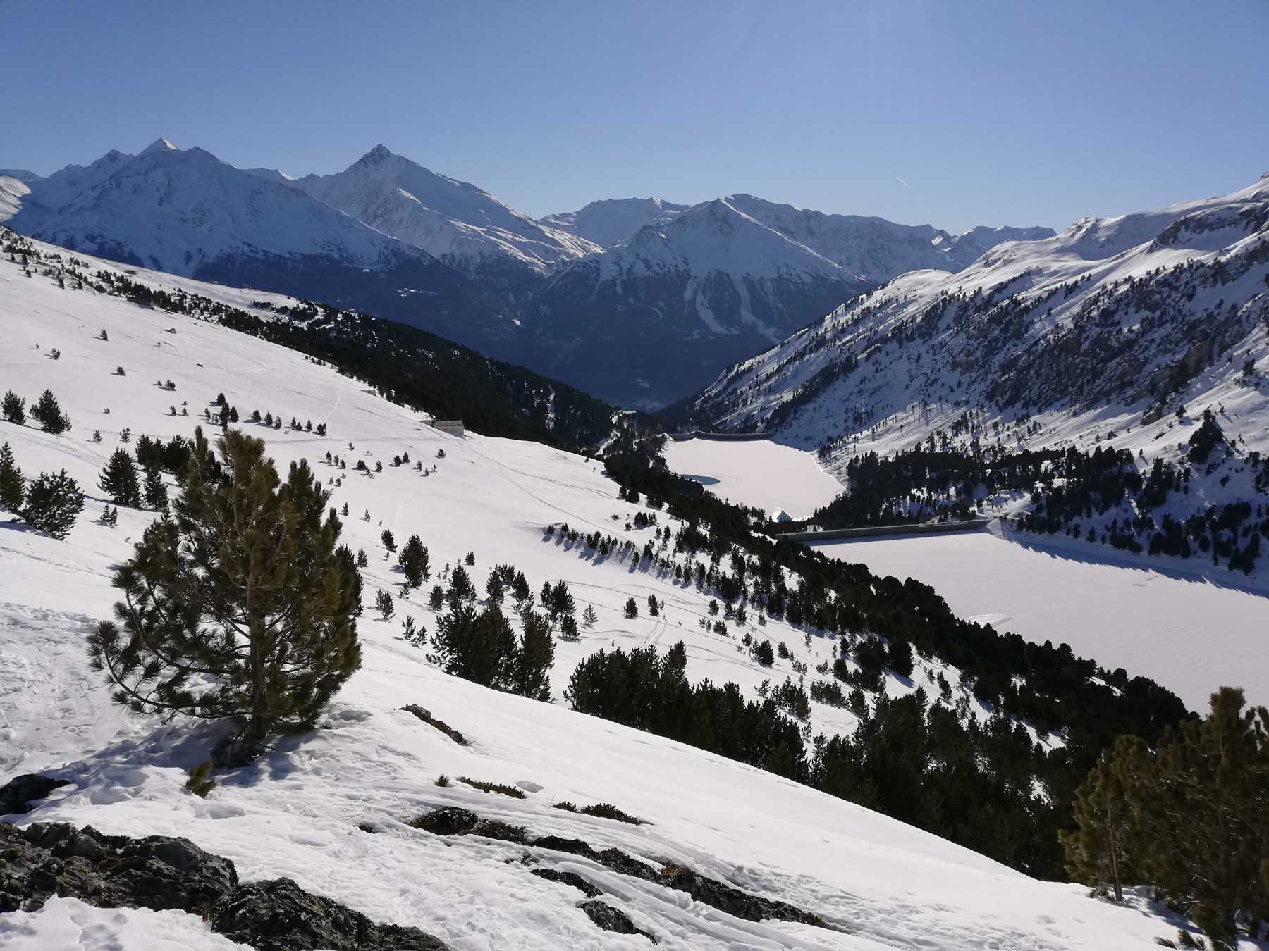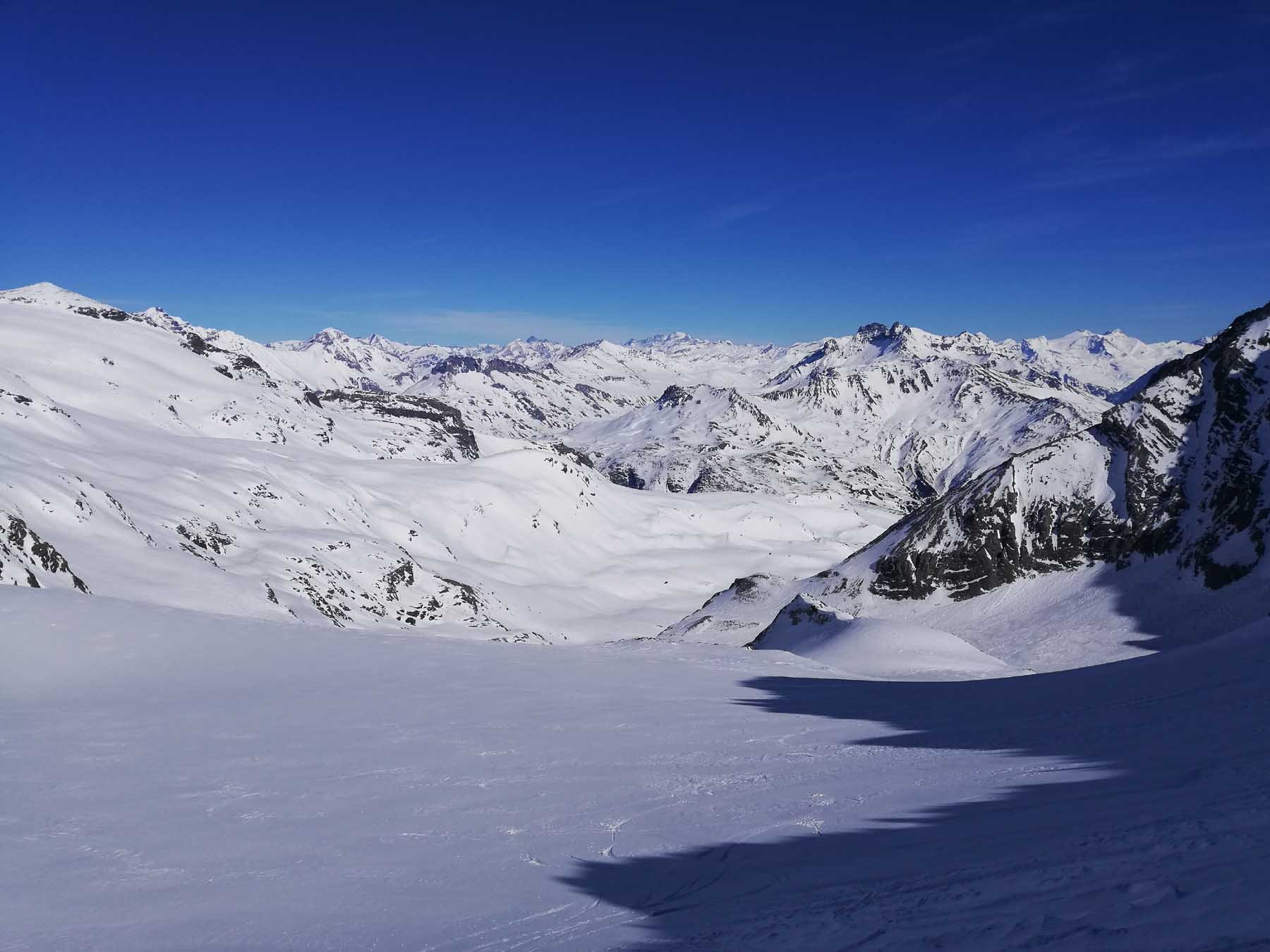 Al ritorno, per non dover spingere nei falsipiani, dalla comba al di sotto del Refuge de la Fournache conviene ripellare fino al dosso 2487 dal quale passando a Plan Sec e poi sulle piste o lateralmente ad esse, si scende comodamente ad Aussois.