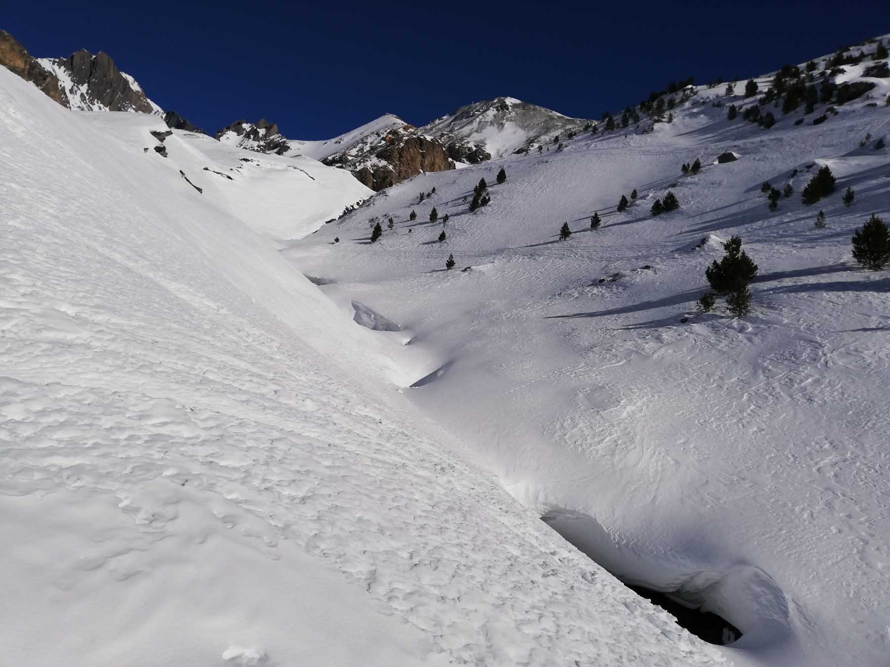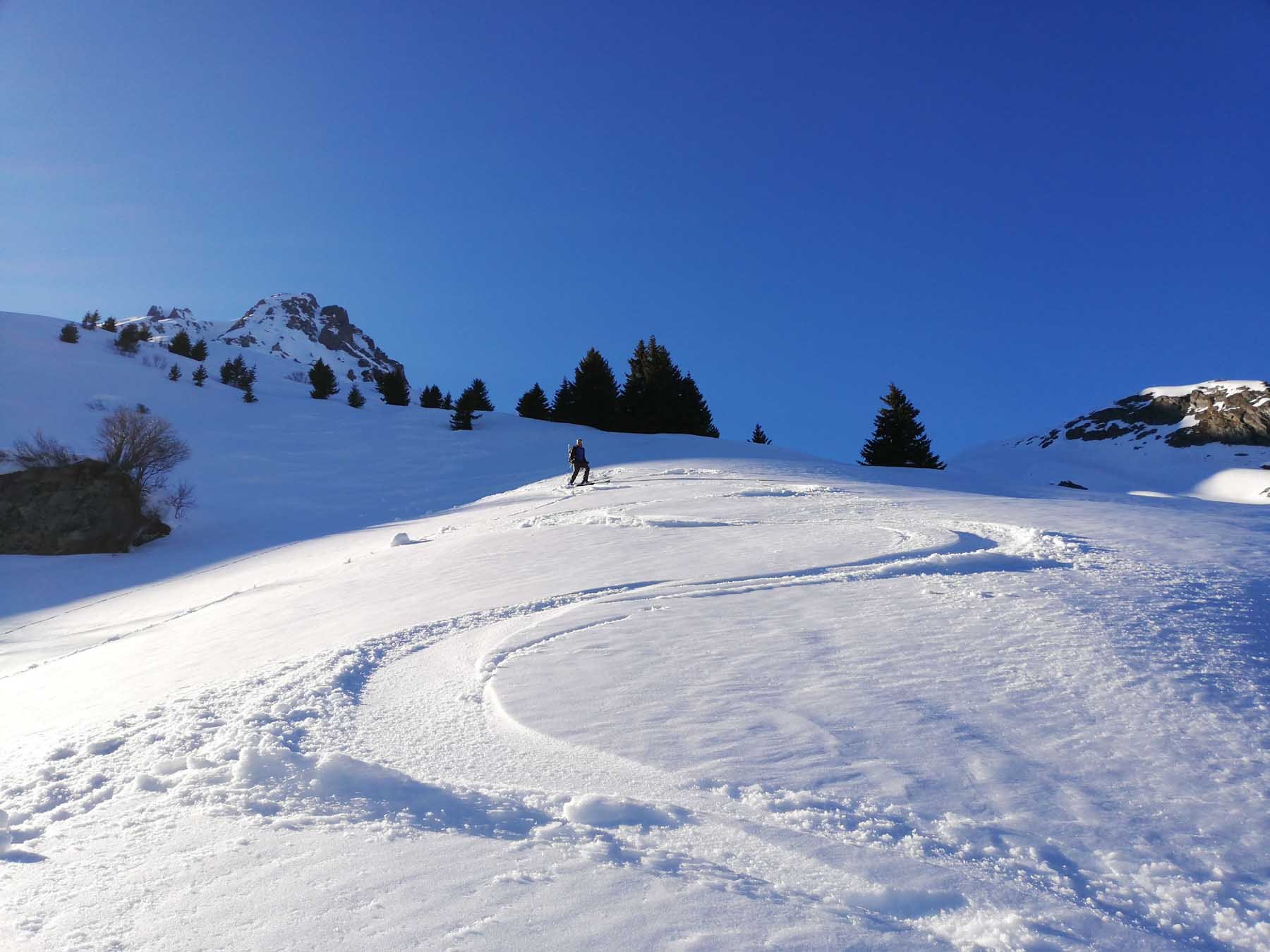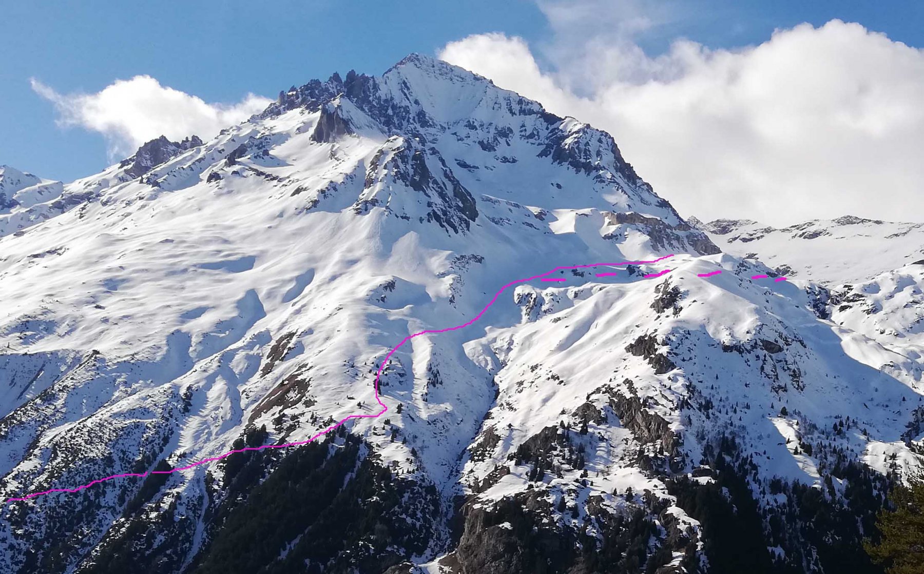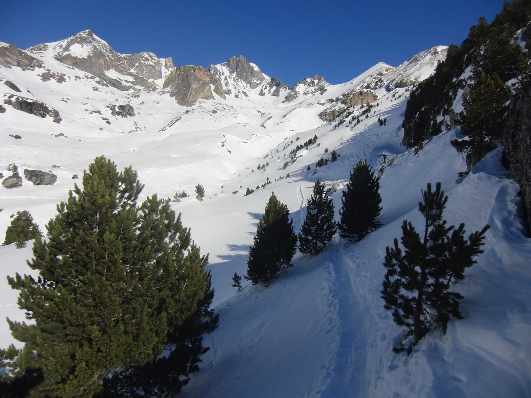 Al ritorno, per non dover spingere nei falsipiani, dalla comba al di sotto del Refuge de la Fournache conviene ripellare fino al dosso 2487 dal quale passando a Plan Sec e poi sulle piste o lateralmente ad esse, si scende comodamente ad Aussois.