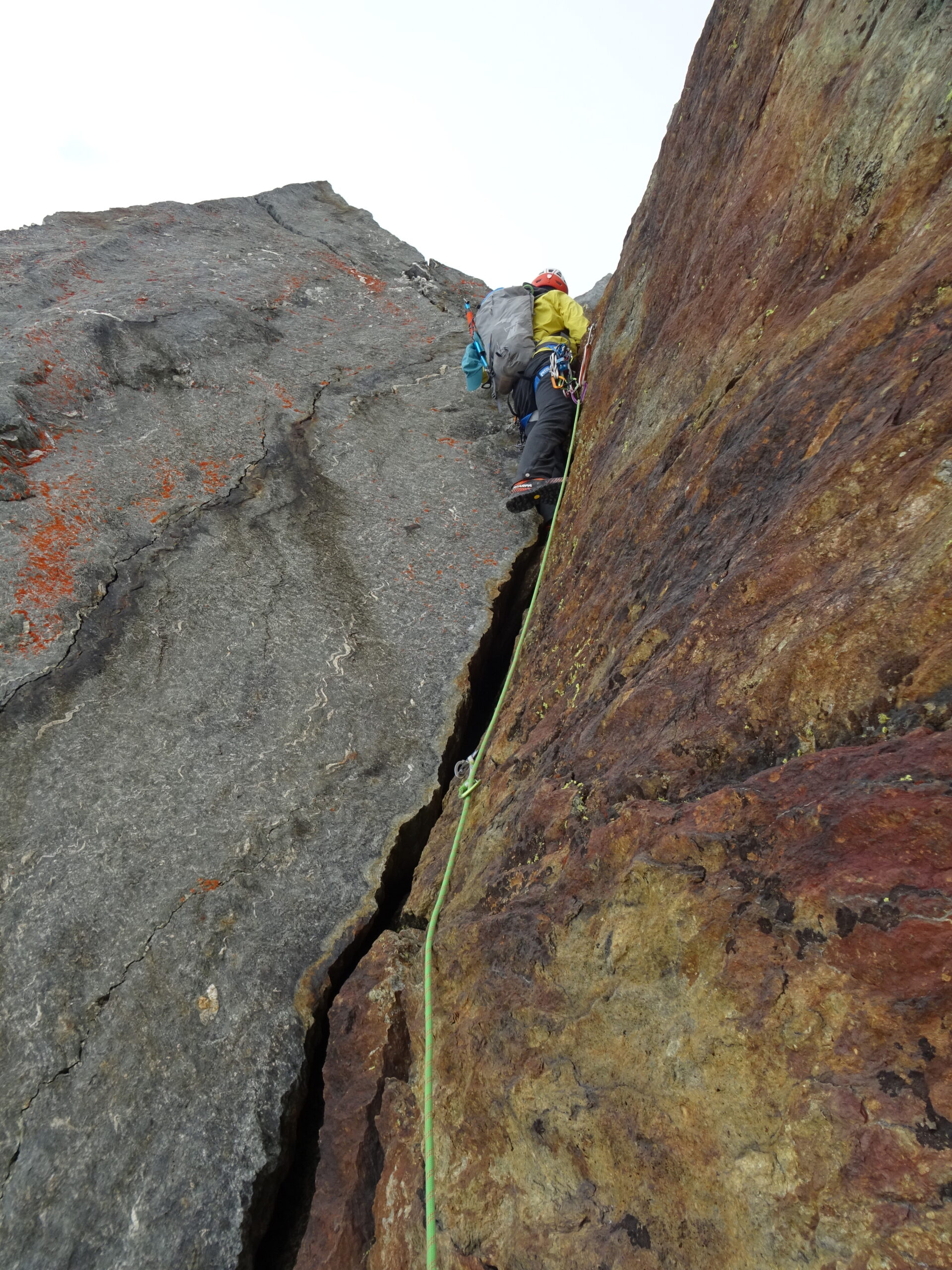 Materiale necessario: corda da minimo 45m, 6 rinvii, qualche cordino. Piccozza e ramponi per l'avvicinamento.