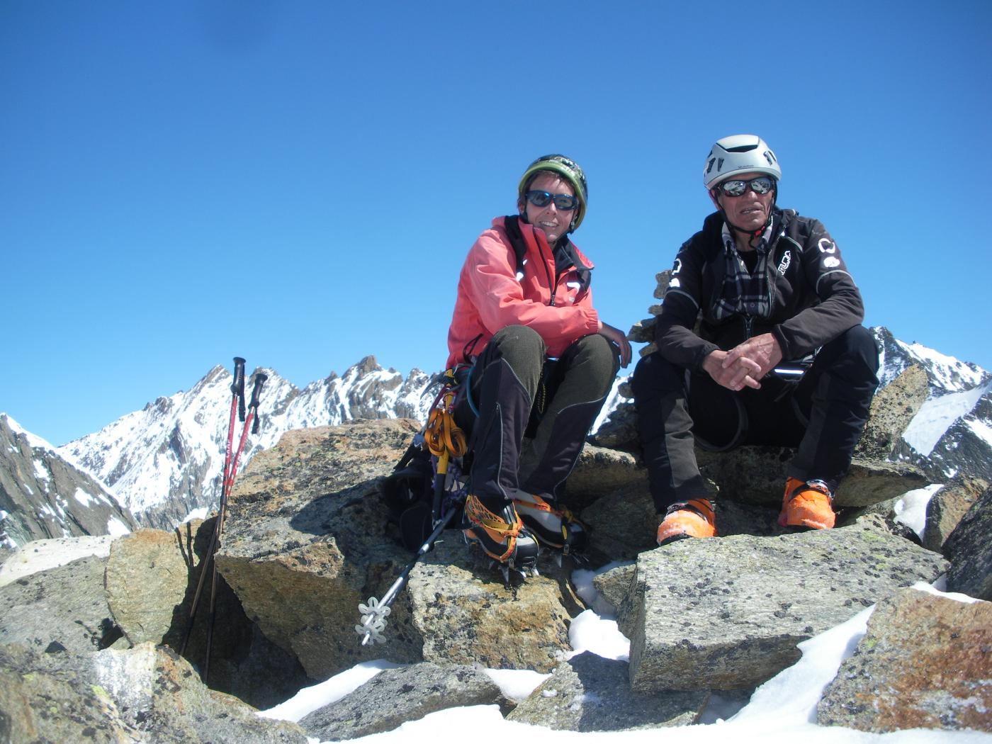 E’ la classica salita in comune con la neo-battezzata scialpinistica alla Ouille Tzeucca fino al Col d’Otemma. Poi anziche’ procedere come se si volesse andare a quest’ultima, dove noi ci siamo stati poco prima, prendere invece a salire la bella e invitante cresta sulla dx dal colle direttamente, se l’idea per chi sale dal basso fosse quella di soffermarsi alla sola salita di questa cima, praticamente sconosciuta ma intrigante poiche’ ha sapore di novita’. Quotata ma non nominata sulla mappa, ma che difficilmente poteva sfuggire alla nostra attenzione, e che con un minimo di sforzo aggiuntivo abbiamo salito (di gia’ che eravamo li) per la sola curiosita’ di come poteva apparire lo scenario di monti visto da un angolazione diversa ancora, a poca distanza dalla meta che avavamo raggiunto poco prima, e seguirne con l’immaginazione e la fantasia, tutto il cammino fatto con un semplice sguardo dall’alto. Gita che se si tardasse ad effettuarla in stagione avanzata verrebbe a perdere tutto il suo fascino tipico delle salite primaverili, dove lo sci costituisce un mezzo efficace e veloce per ricoprire lunghe distanze e sfruttare al meglio le risalite dei canali diversamente disagevoli in periodo secco.