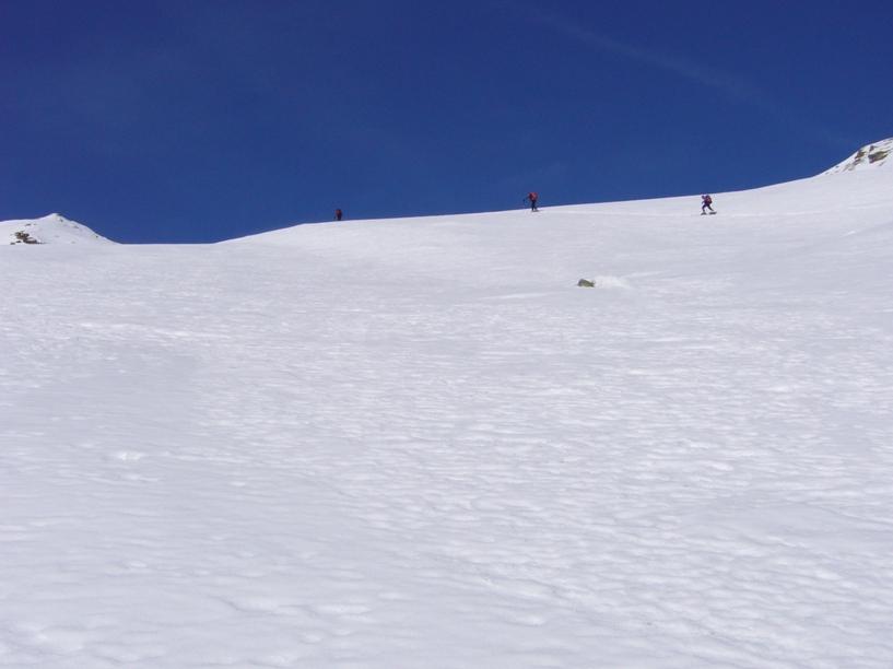 Buona sera a tutti. Gita un po’ spostamentosa e bosco lunghetto. Dopo di che, pendii aperti e piacevoli.La prima parte di discesa oggi presentava neve pesante, poi all’ombra farina ed infine crosta portante. Tutta comunque ben sciabile. Buone gite.