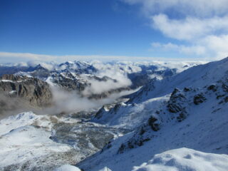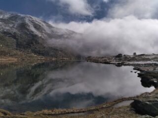 Mattinata piovosa in alta Val Susa seguita dalle previste aperture delle ore centrali. Qualche cm di neve oltre il lac Laramon fino ad una decina abbondante oltre i 2700. Il terreno è comunque regolare e la traccia di sentiero intuibile. Splendidi giochi di luce al diradamento delle nebbie, bel pomeriggio soleggiato.