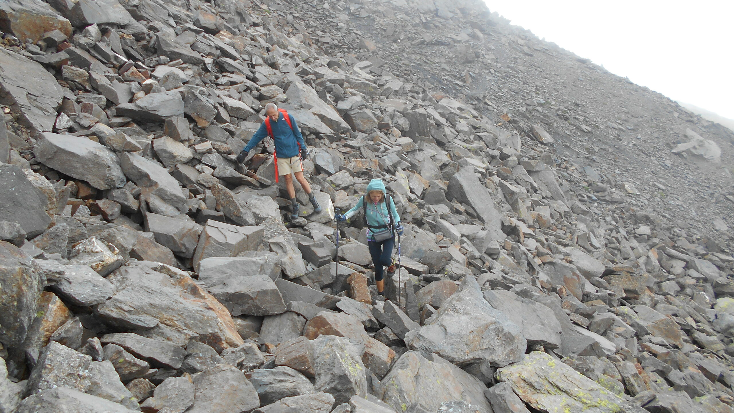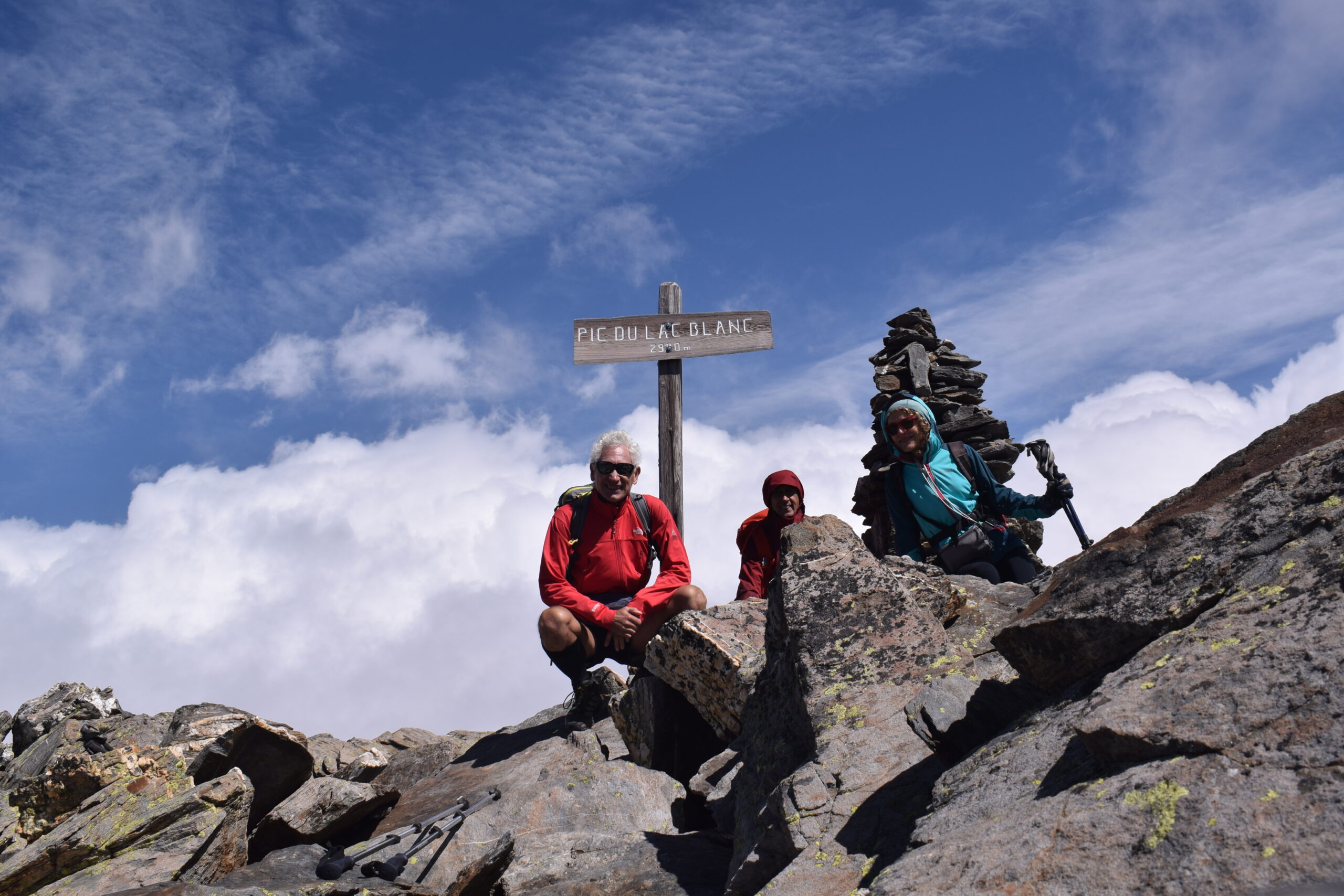 In salita per il Vallon abbiamo seguito la traccia riportata sulla carta di Locus Map (Northern Italy), ma in effetti non visibile sul terreno al momento del bivio dell’itinerario che invece prosegue per il Col du Vallon. Bisogna scendere di una ventina di metri, attraversare il piccolo rio e poi si intravede la traccia che sale, con un tratto molto ripido su morena, fino al Lac Blanc. Di lì vi sono un paio di tracce, noi abbiamo seguito quella che grosso modo sale direttamente fino a raggiungere il crestone che scenda dal Pas de Lac Blanc. Si sale bene, con lo spettacolare lago sotto i piedi!