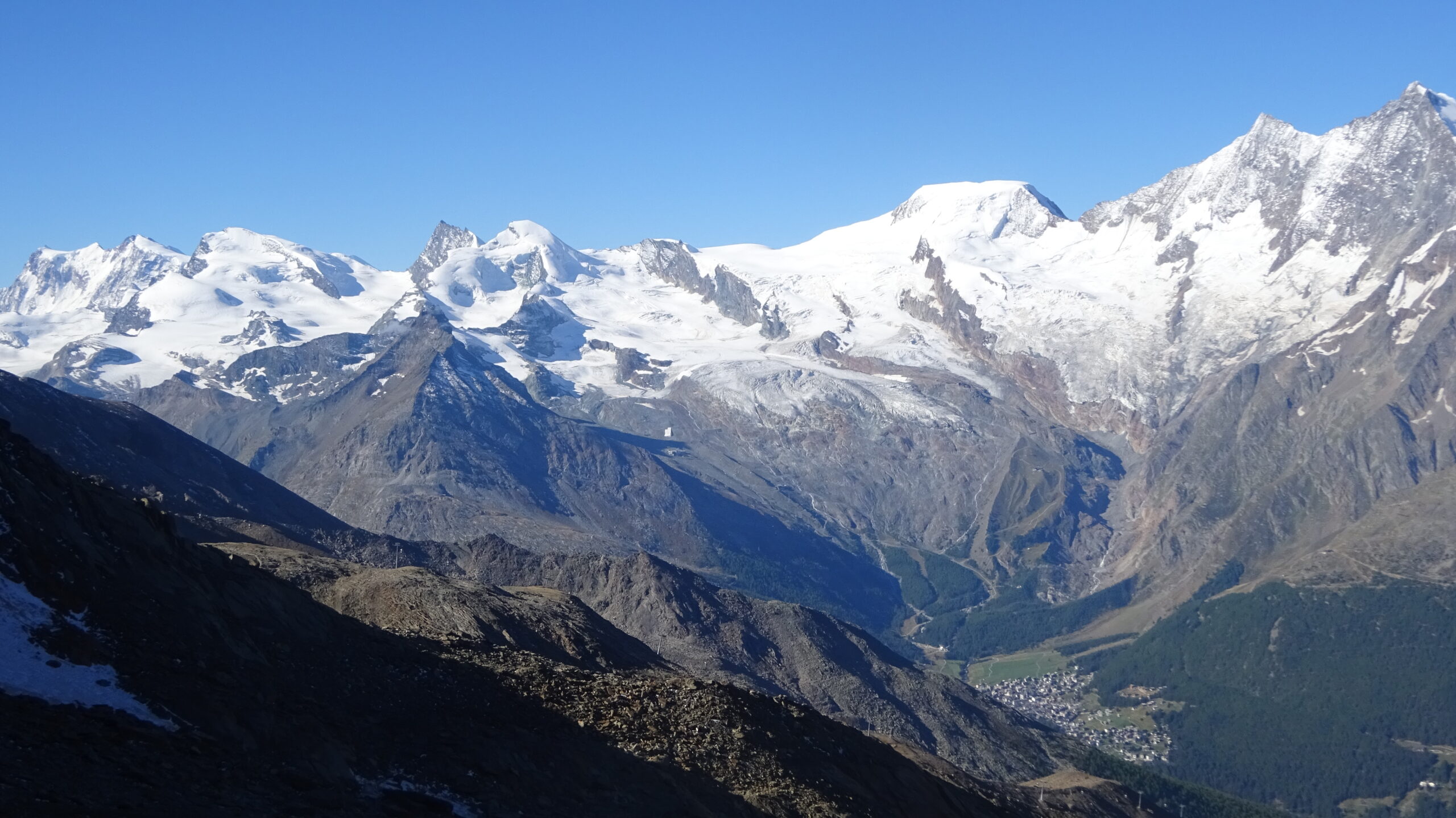 Breve sosta in cima nei pressi della croce, perchè il vento piuttosto freddo cominciava ad ammassare nuvole sulla dorsale Lagginhorn – Weissmies (ormai già coperto dalle nuvole), poi ripercorriamo l’itinerario a ritroso e ritorniamo ad Hoshass a prendere la cabinovia per scendere a Saas-Grund.