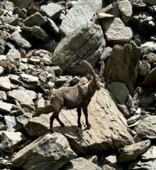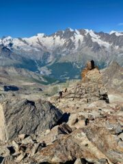 Da Hohsaas con gli impianti in giornata. Nelle condizioni in cui abbiamo trovato la salita siamo riusciti ad arrivare senza problemi in cima con scarpette da avvicinamento, una cosa davvero unica per un 4000 ! Il piccolo nevaio poco sotto la vetta si evita facilmente sulla destra. Scarponi e ramponi li avevamo prudenzialmente nello zaino e lì sono rimasti. Parecchie persone sull’itinerario, ma nessun problema di affollamento o sassi. Un bellissimo branco di stambecchi risalendo al colletto al ritorno.