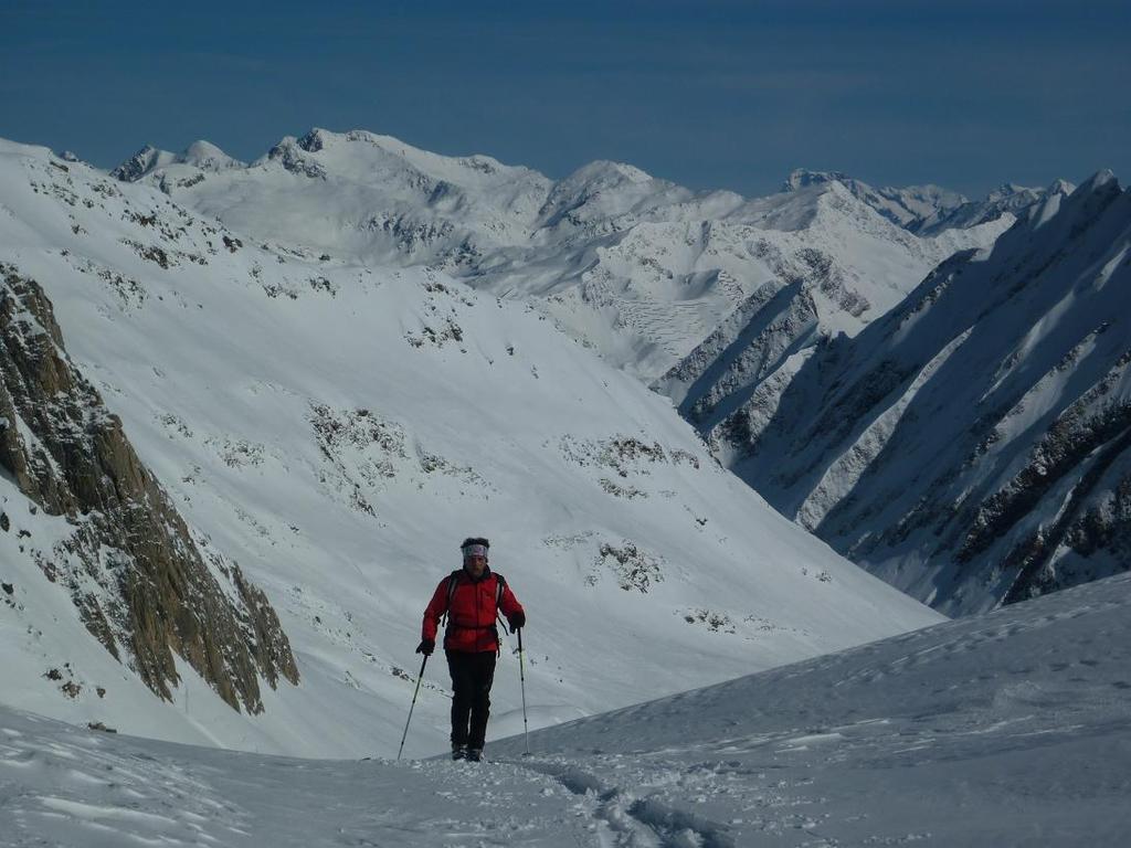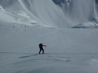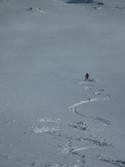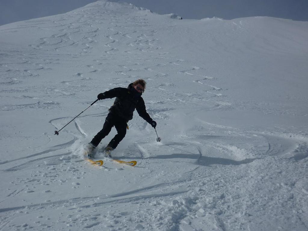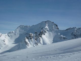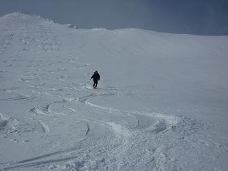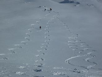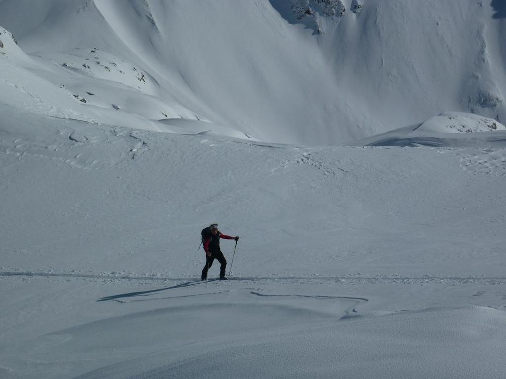 Oltre il passo della Cristallina situazione differente con pochissimi scaricamenti e manto nevoso più stabile.