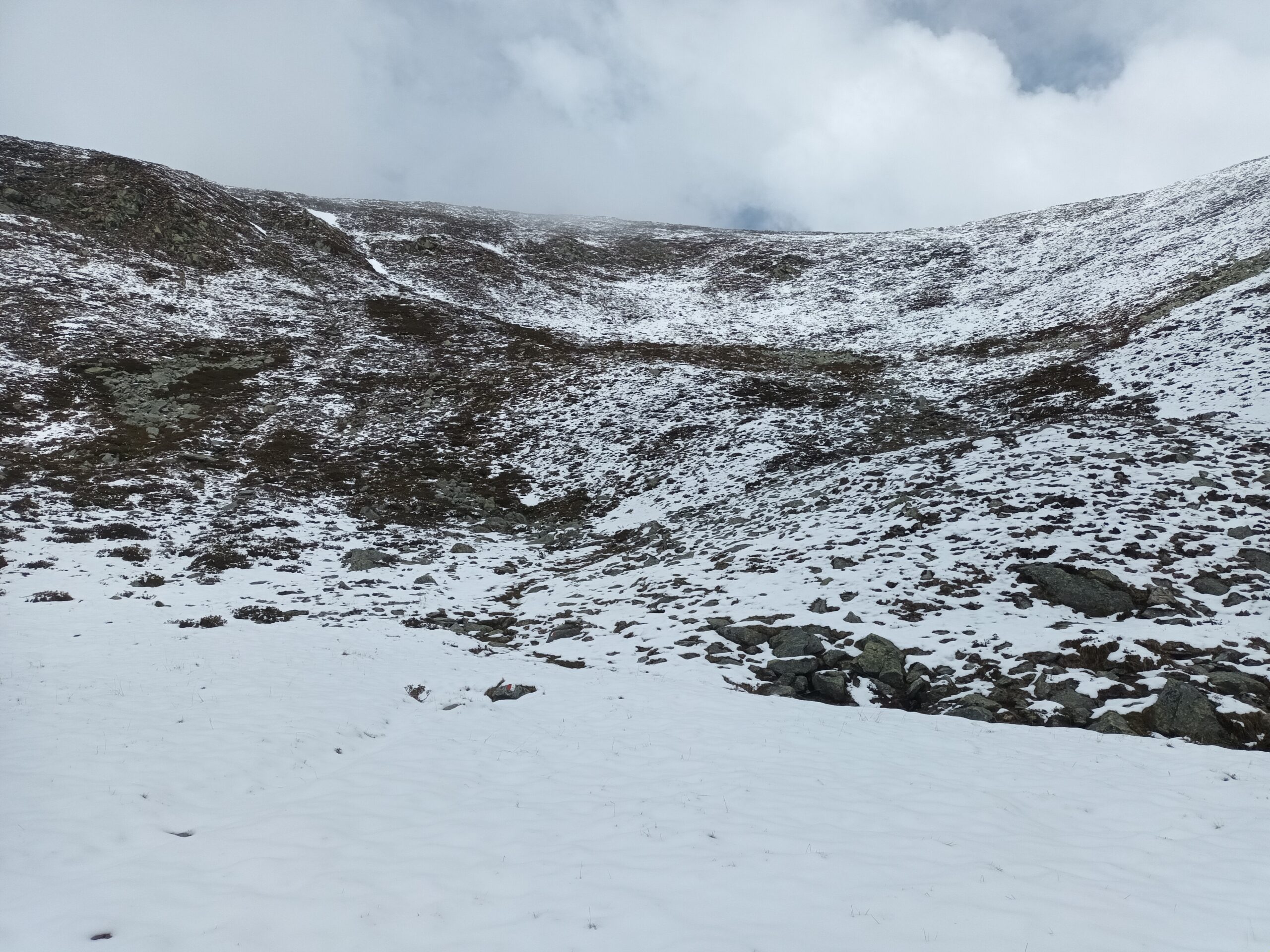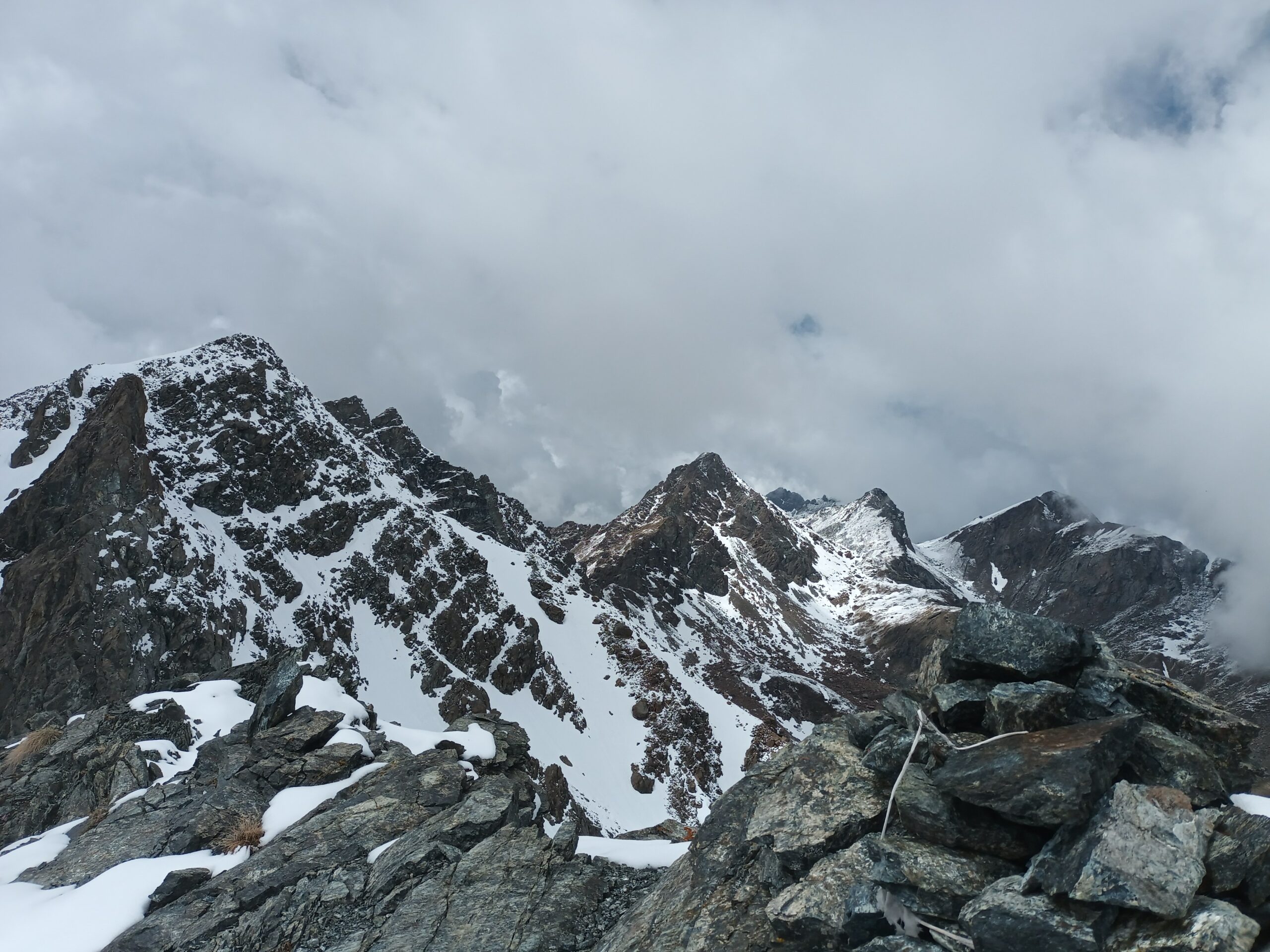 Arrivati al colletto (2260 m), seguire la traccia, poco evidente, ma sempre in salita e sulla linea di cresta (molto agibile) passando prima per la Punta Ciarmagranda, fino alla cima Punta del Lago Nord.