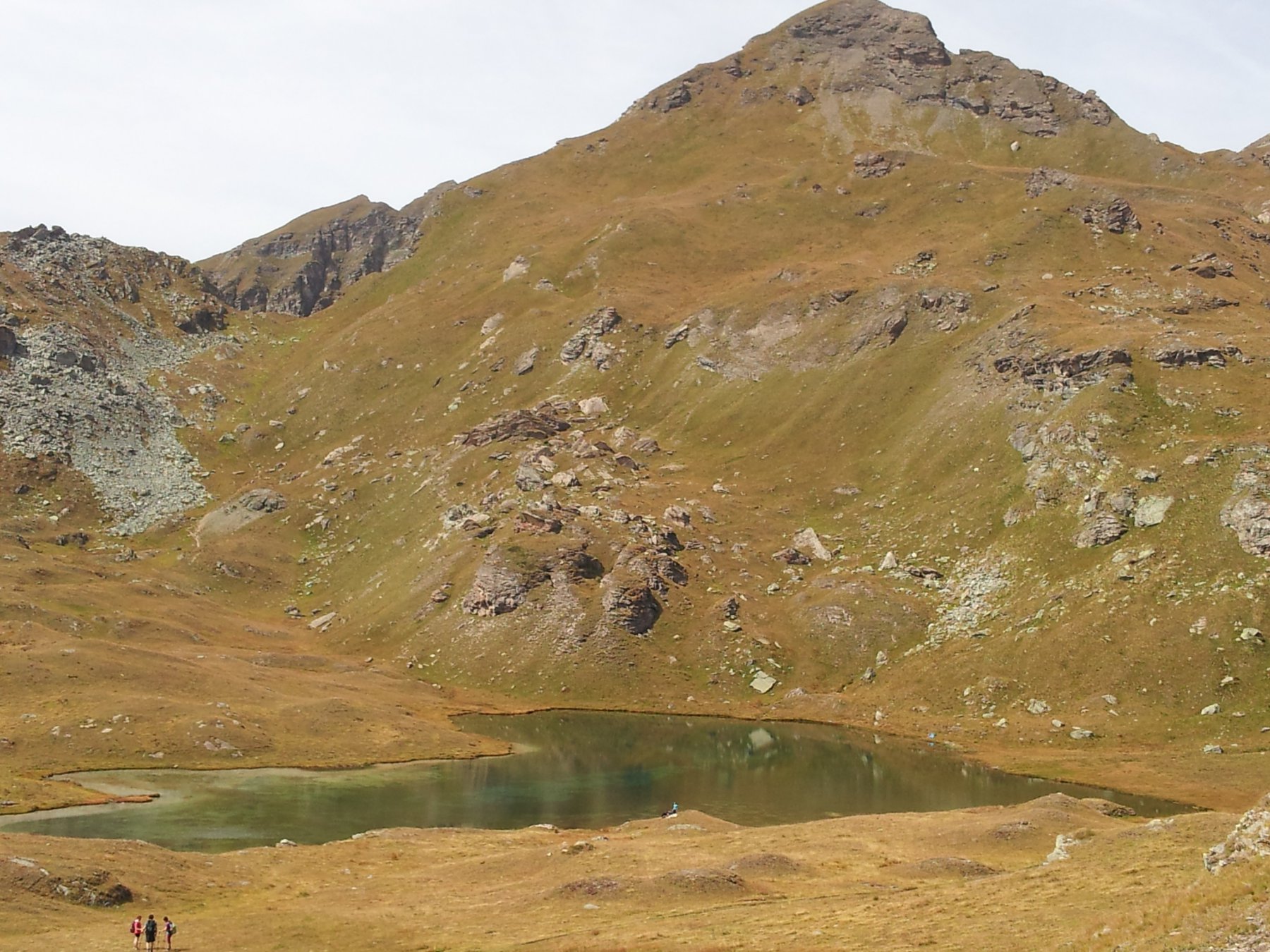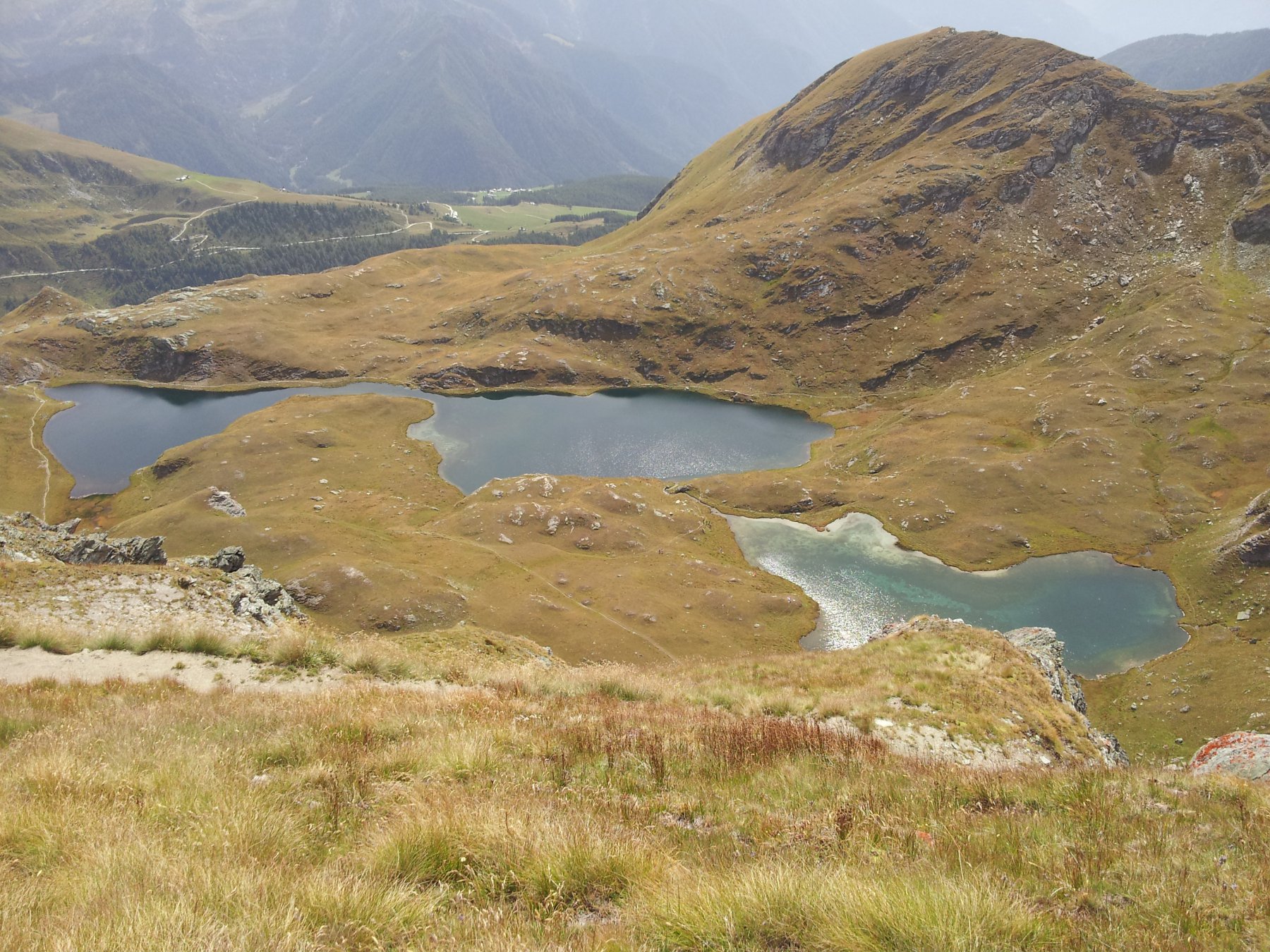 Dal colle si scende verso i laghi con percorso molto tecnico (S4) per poi continuare più facilmente su sentiero molto battuto (S1, passi S2).