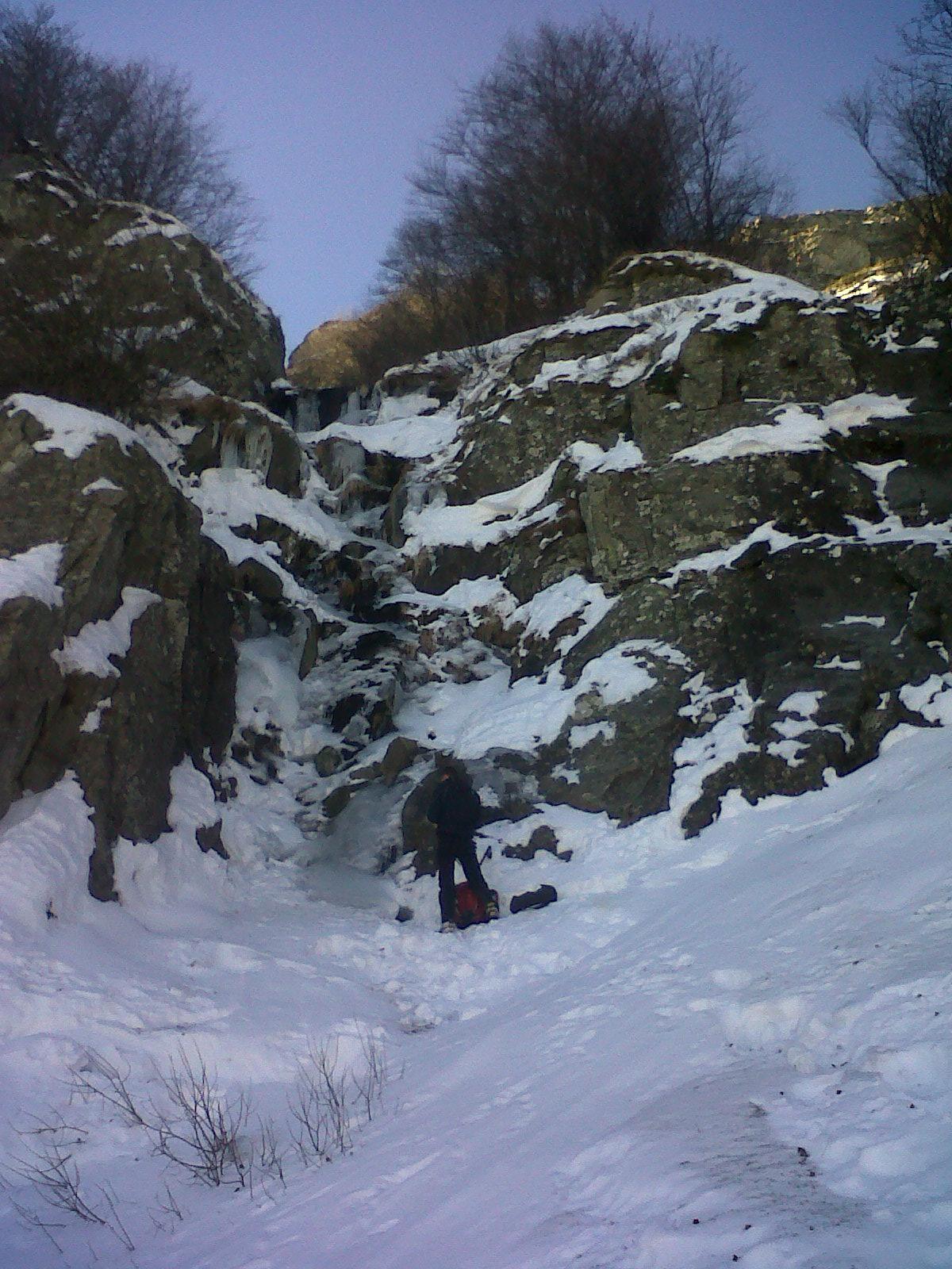 Relazione: Alcuni passi su placche e ghiaccio sottile, immettono nello stretto colatoio che vi condurrà fino al bosco sommatale.