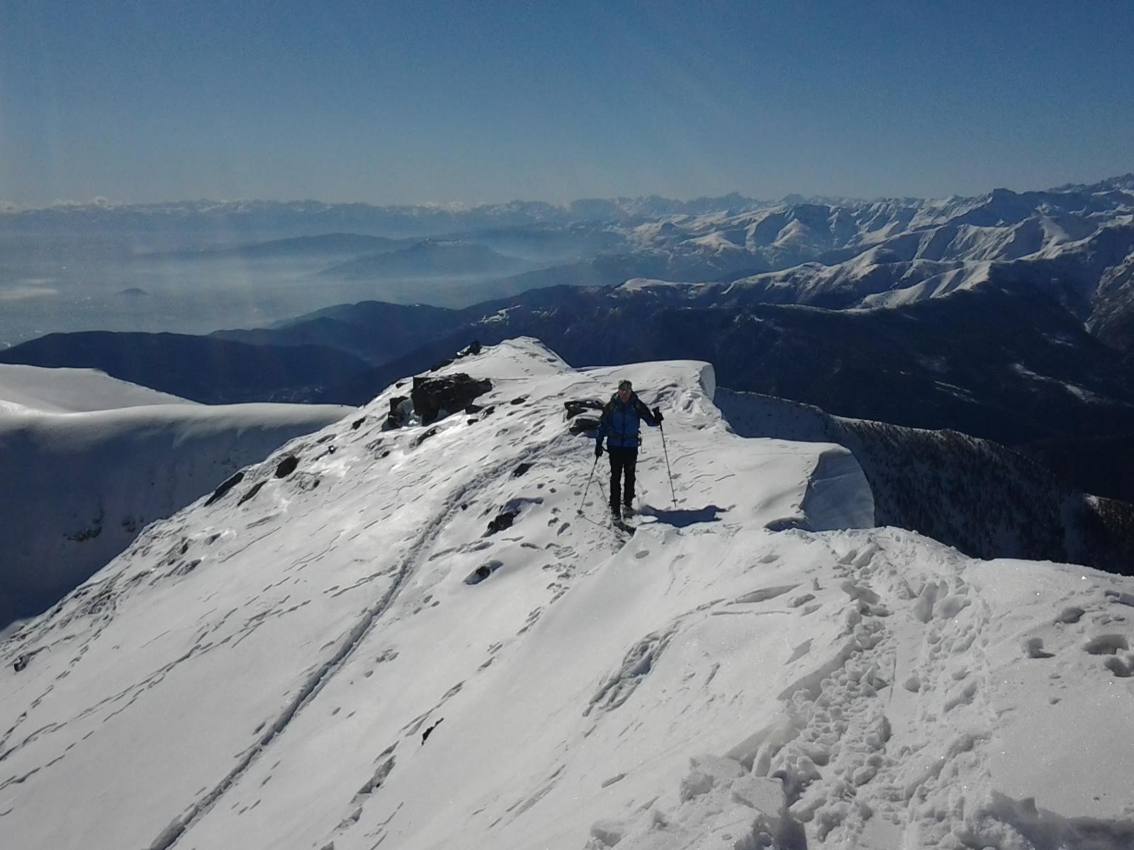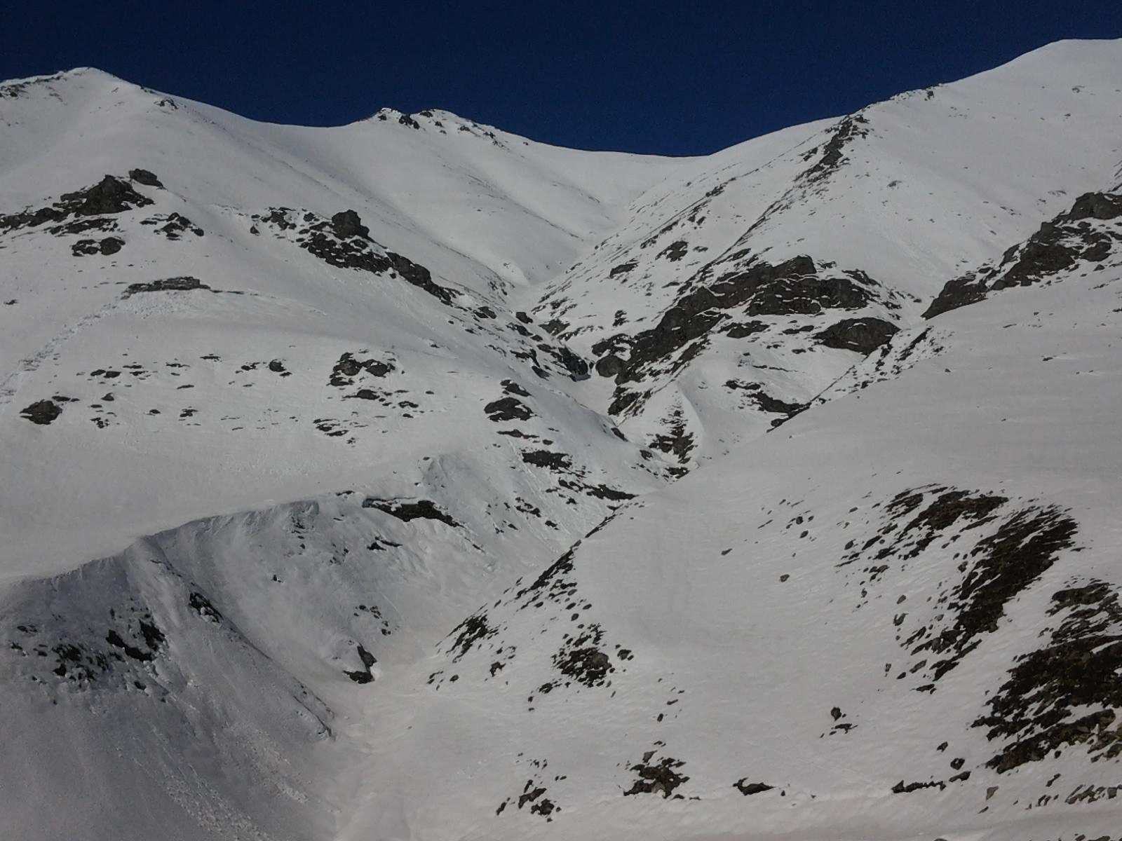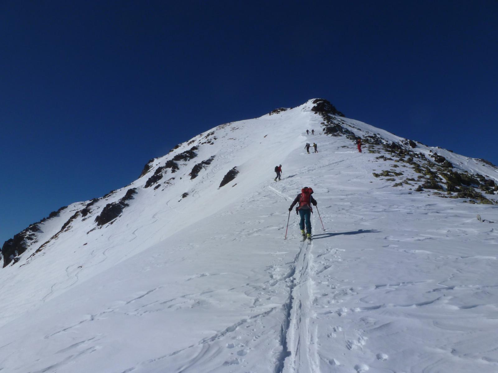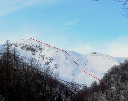 Si entra a Dx nel bosco seguendo le tracce del sentiero estivo per il Rifugio della Balma. Giunti al rifugio si continua a salire costeggiando il Lago Sottano. Non lasciandosi tentare dai ripidi pendii posti alla SX (salendo) ci si dirige lungo dossi verso una valletta che porta verso la Cresta Tirol. Risalito questo pendio più ripido si prosegue per la cresta che porta verso la cima.