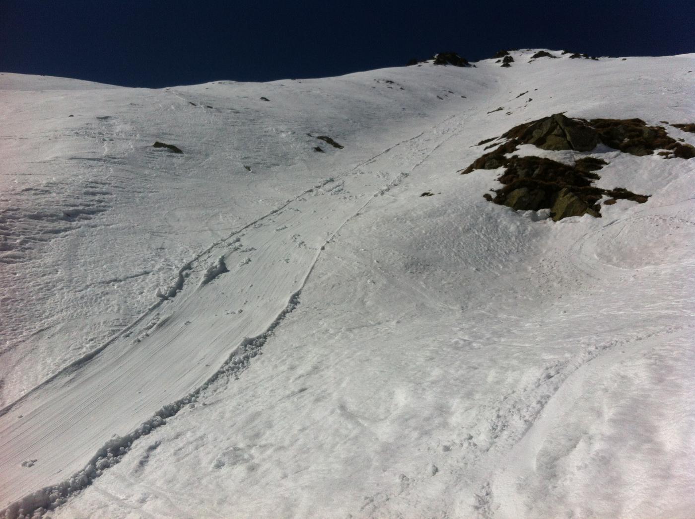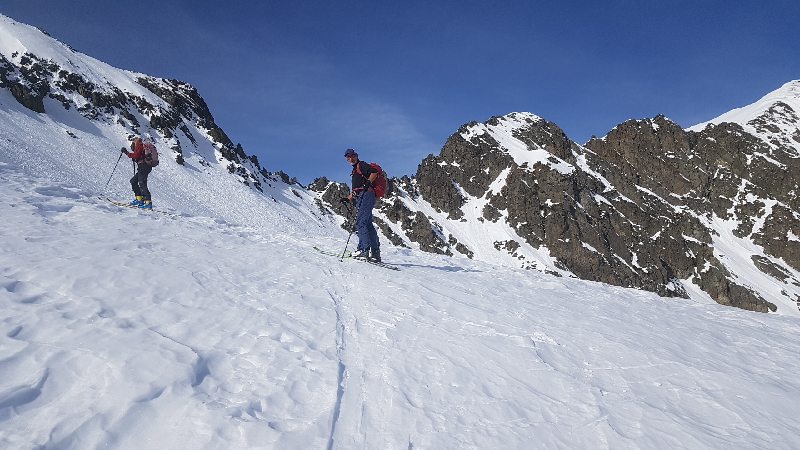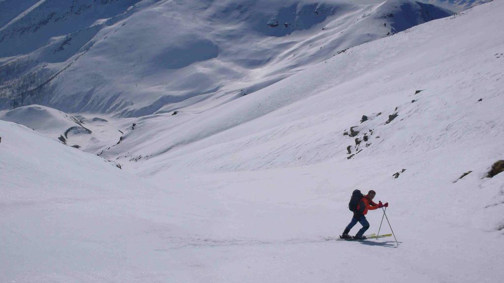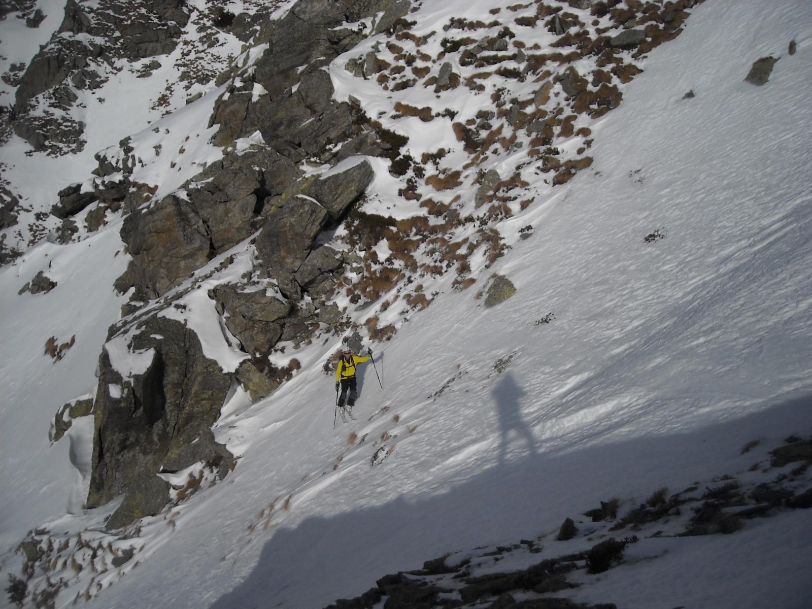 La discesa si effettua scendendo i ripidi pendii (Sud) che portano nel Vallone del C. della Rossa. La discesa prosegue lungo il Vallone omonimo.