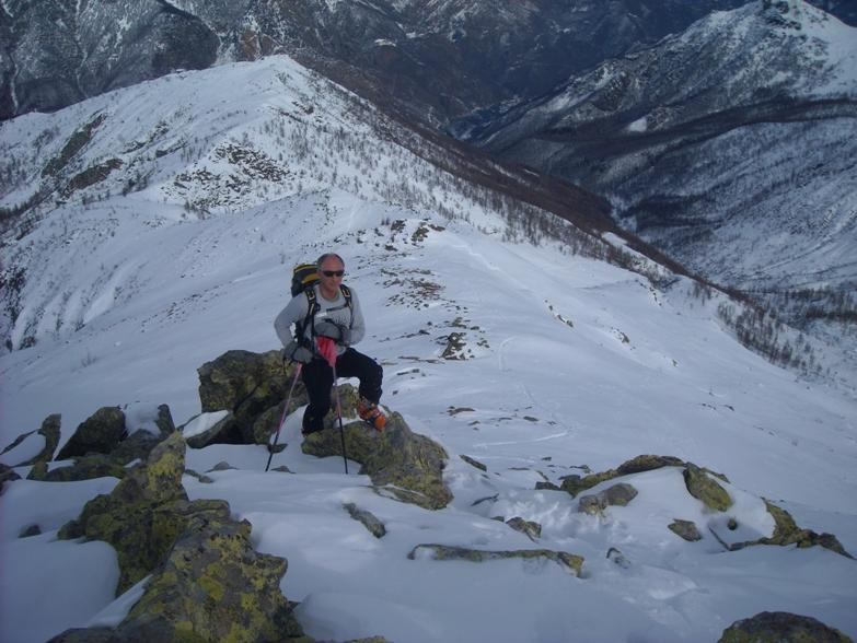 Qualche pietra affiorante nella parte alta. Quasi impraticabile la crestina finale per la neve incosistente che copre i buchi tra le roccette. Nel complesso la poca neve nella parte superiore del percorso rende sicuro l’itinerario. L’esposizione mantiene discrete condizioni anche in basso, fino all’arrivo della seggiovia, poi è conveniente seguire la pista (strada)