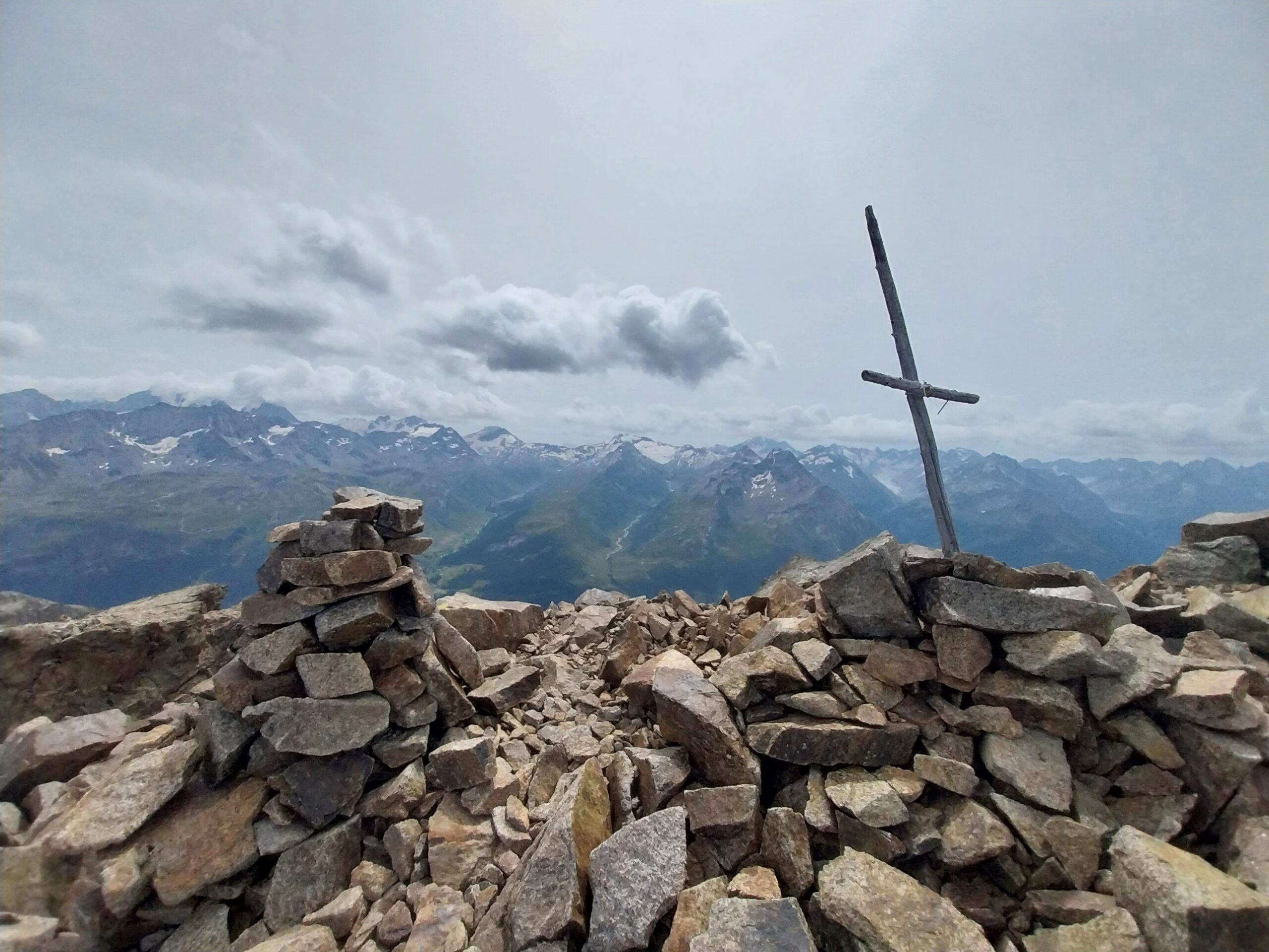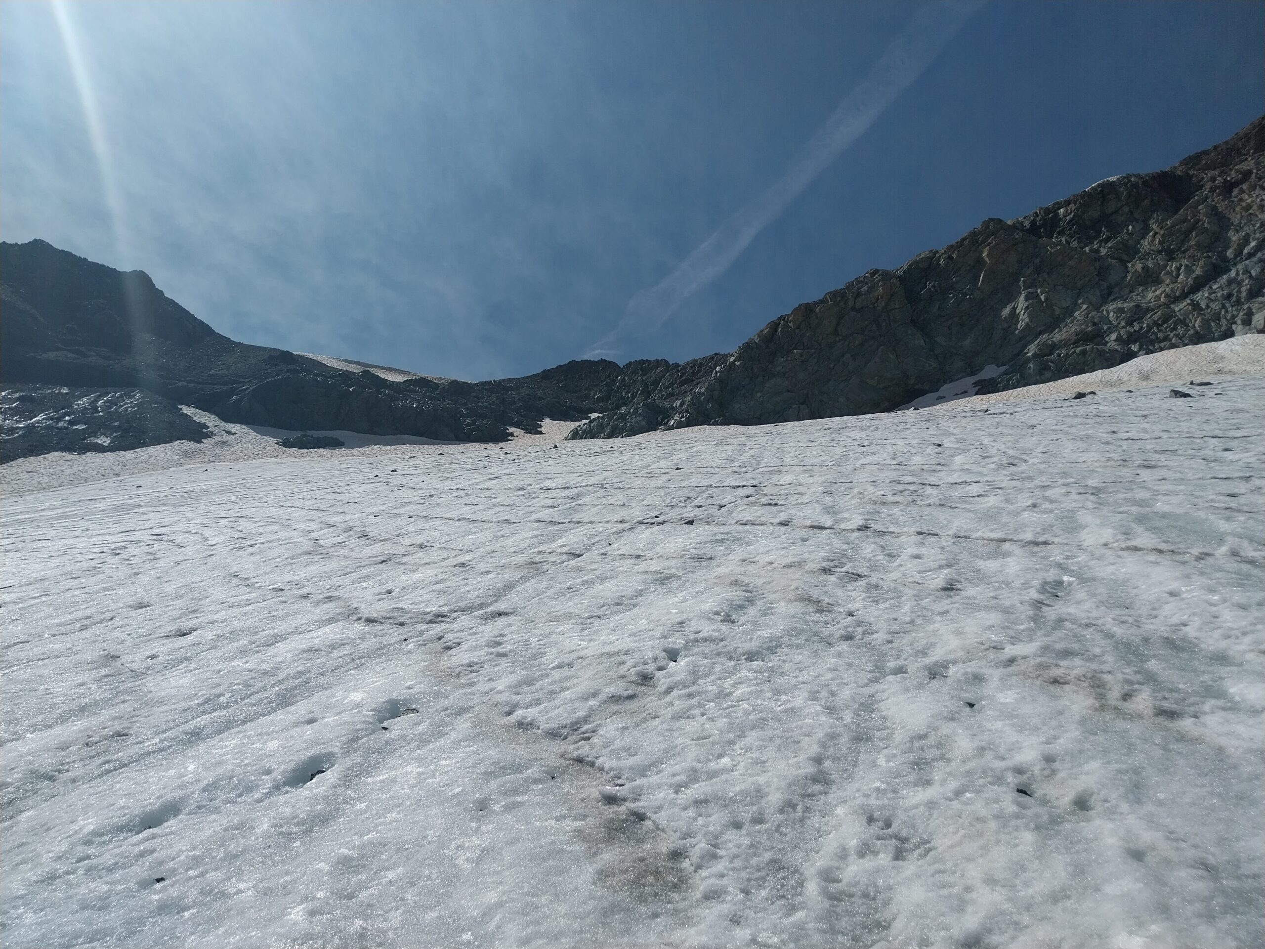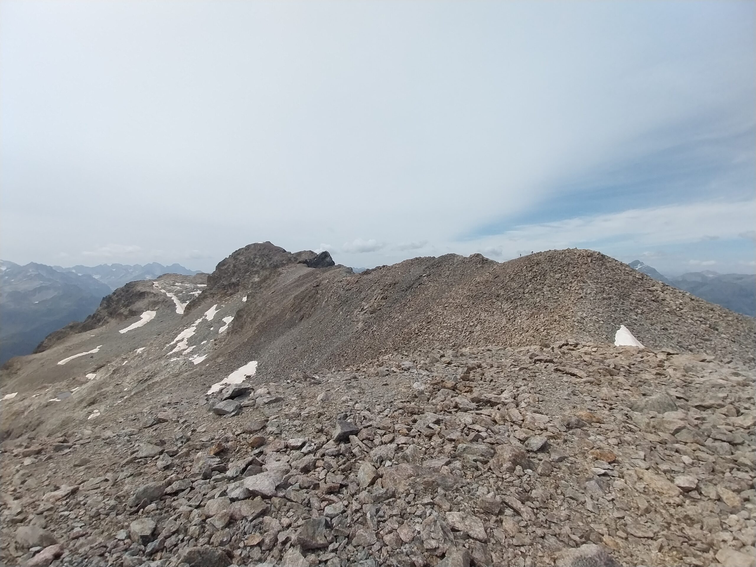 Costeggiare il lago sul suo lato sinistro (Est) senza percorso obbligato fino a portarsi, risalendo qualche ghiaione instabile, alla base del piccolo ghiacciaio. Si risale tenendo la sinistra (non ci sono crepacci quindi tendenzialmente non è essenziale legarsi) fino a un imbuto di ghiaia che permette di uscire sulla cresta in vari punti, la cima scialpinistica è quella di destra. Da qui è evidente la parte finale, un largo crestone da affrontare sul filo o leggermente a sinistra (lato Engadina) fino alla cima principale.