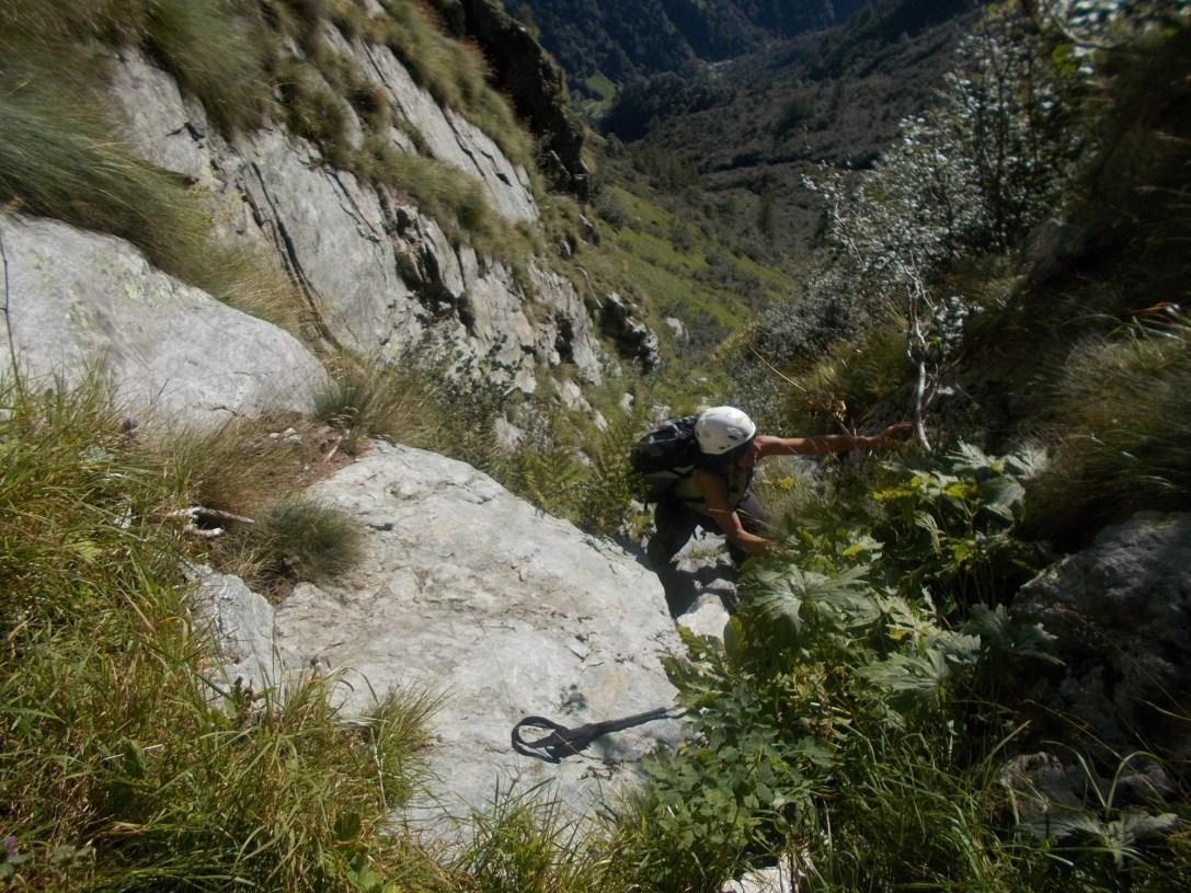 Si può sfruttare anche il più stretto e ripido canale destro, meno invaso dalla vegetazione, che richiede però qualche passo d’arrampicata su placche inclinate(facile).