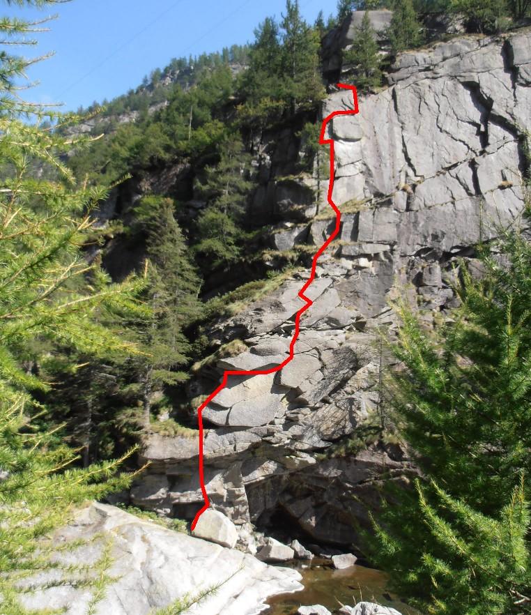 Subito dopo duel entrare nel ruscello e salire sino sopra un grosso blocco di qui uscire ed andare su una cengia a sx che in breve porta nel ruscello nuovamente.
