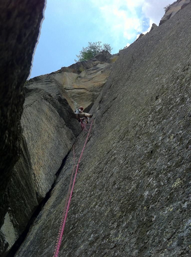 Materiale : una serie di friend sino al 3 bd + metolius dallo 00 , nut due corde da 60 (giuste) 10 rinvii