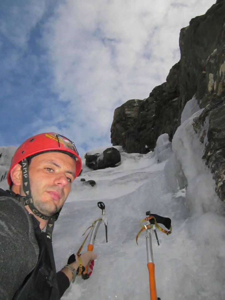 Bellissima!!! La prima metà ha veramente poco ghiaccio e la scalata risulta assai aleatoria e delicata, nella seconda parte invecde il ghiaccio abbonda e si potrebbero addirittura fare soste su chiodi da ghiaccio.