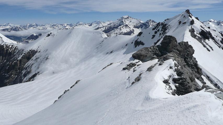 E’ poi possibile continuare verso ovest e raggiungere il vicino Signal du Lamet e quindi la piatta sommità del Signal du Lac, dal quale si può divallare per ripidi pendii verso SO in direzione del lago del Moncenisio oppure tornare al canale del seracco riattraversando il ghiacciaio verso oriente.