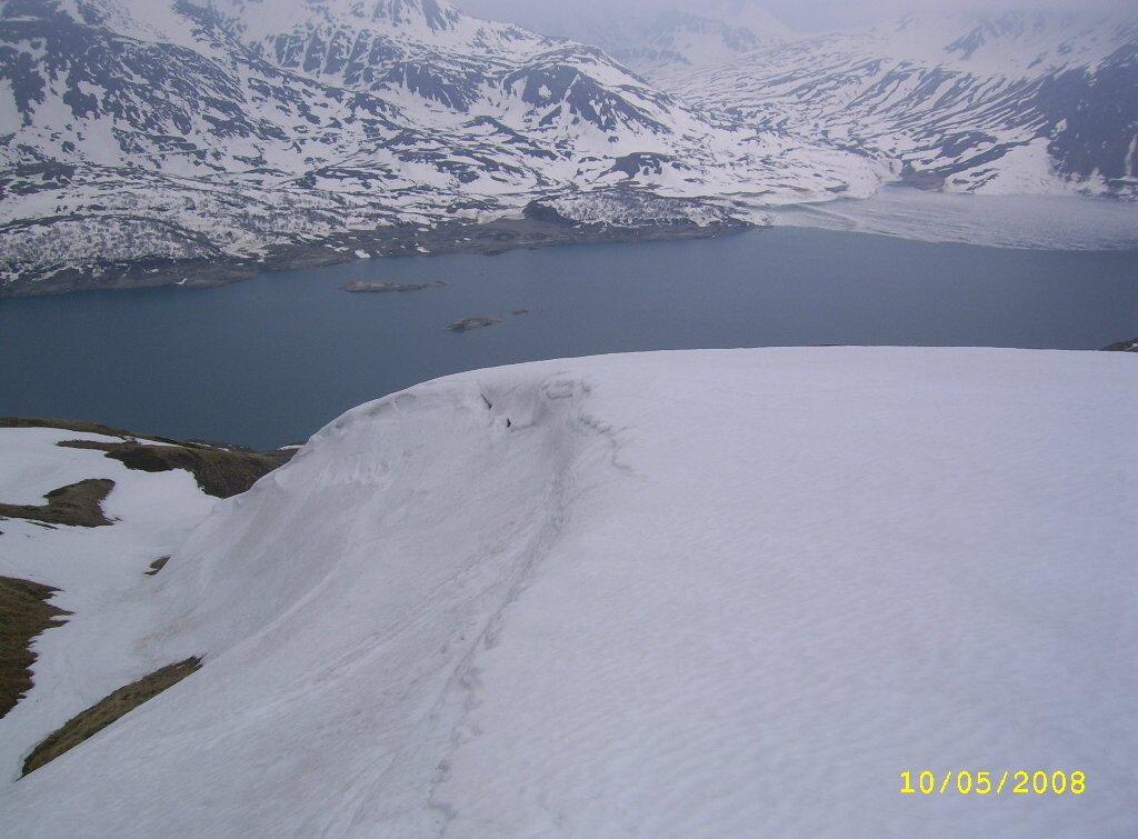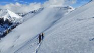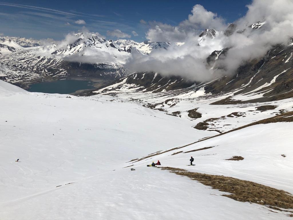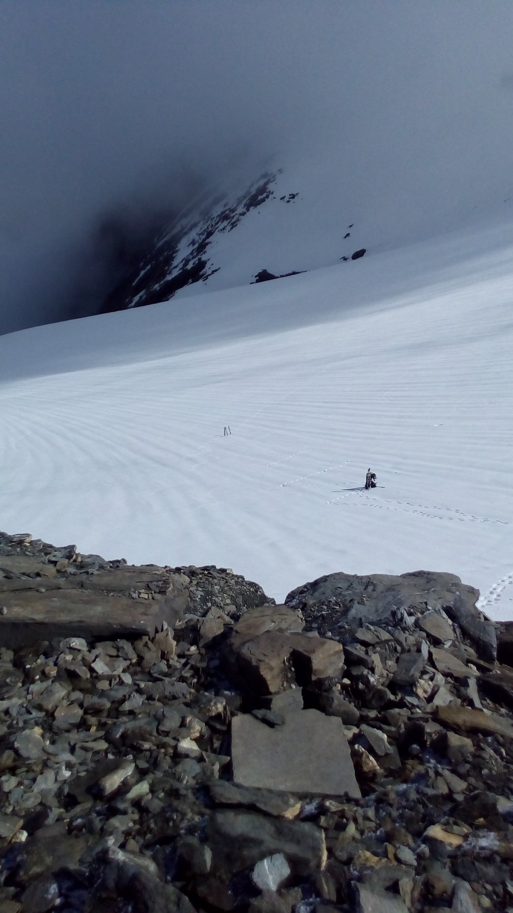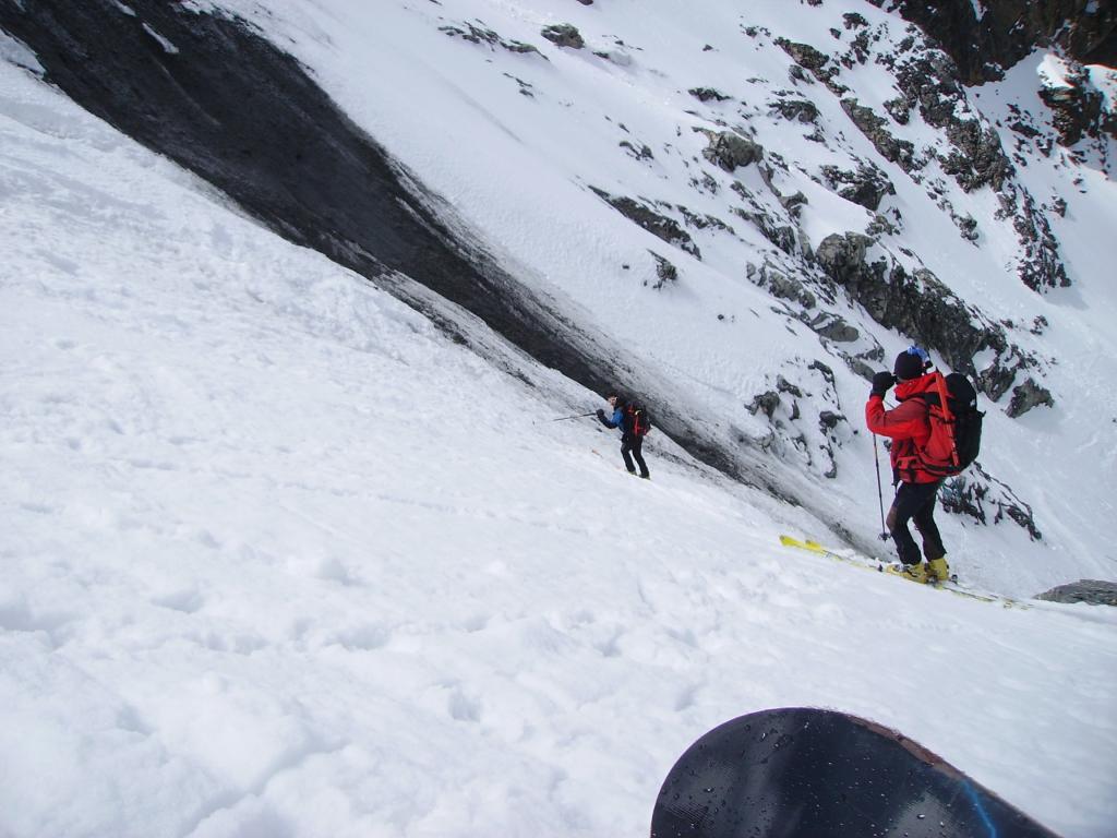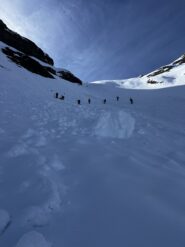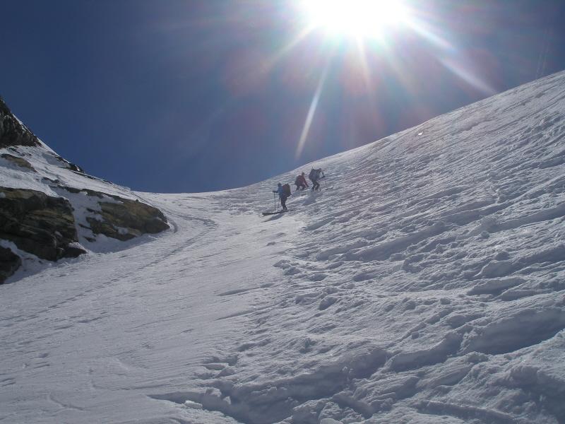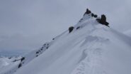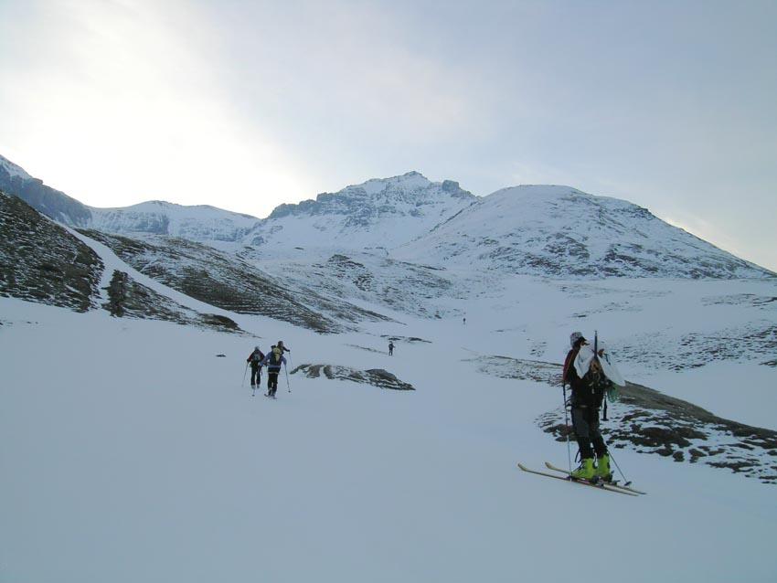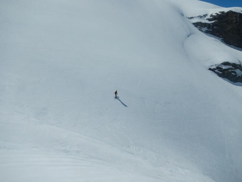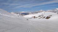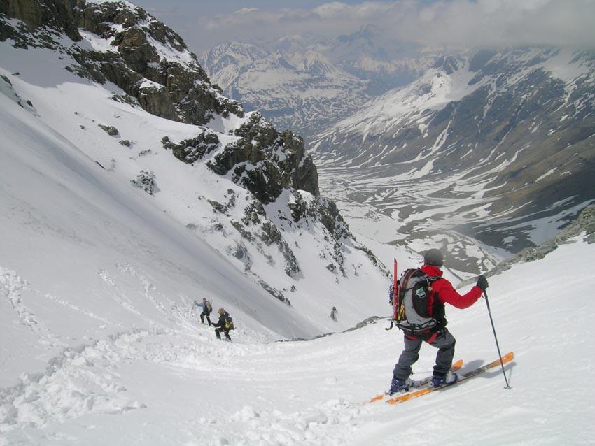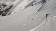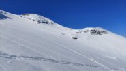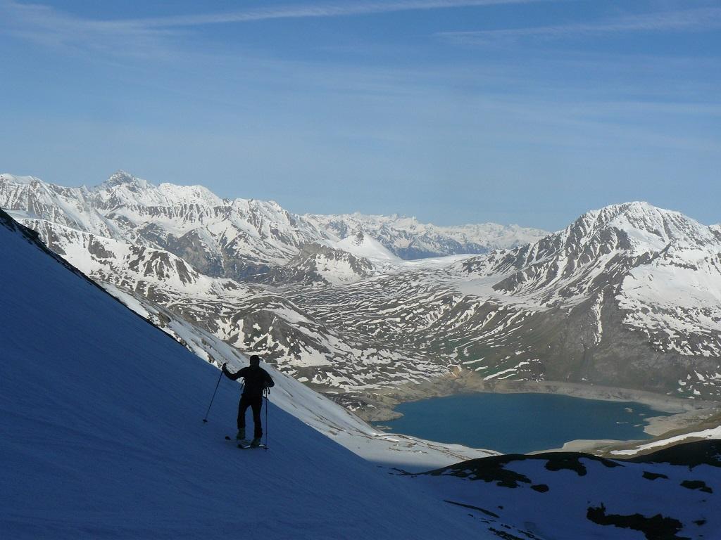Per arrivare alla cima della Pointe du Lamet conviene raggiungere il colletto alla sua sinistra, e in breve sulla cresta si raggiungono le roccette del piccolo torrione sommitale. Per arrivare invece al Signal du Lamet, dal pendio glaciale finale, si traversa verso destra in direzione di una conca, risalendo l’ultimo pendio di neve mista a sfasciumi.