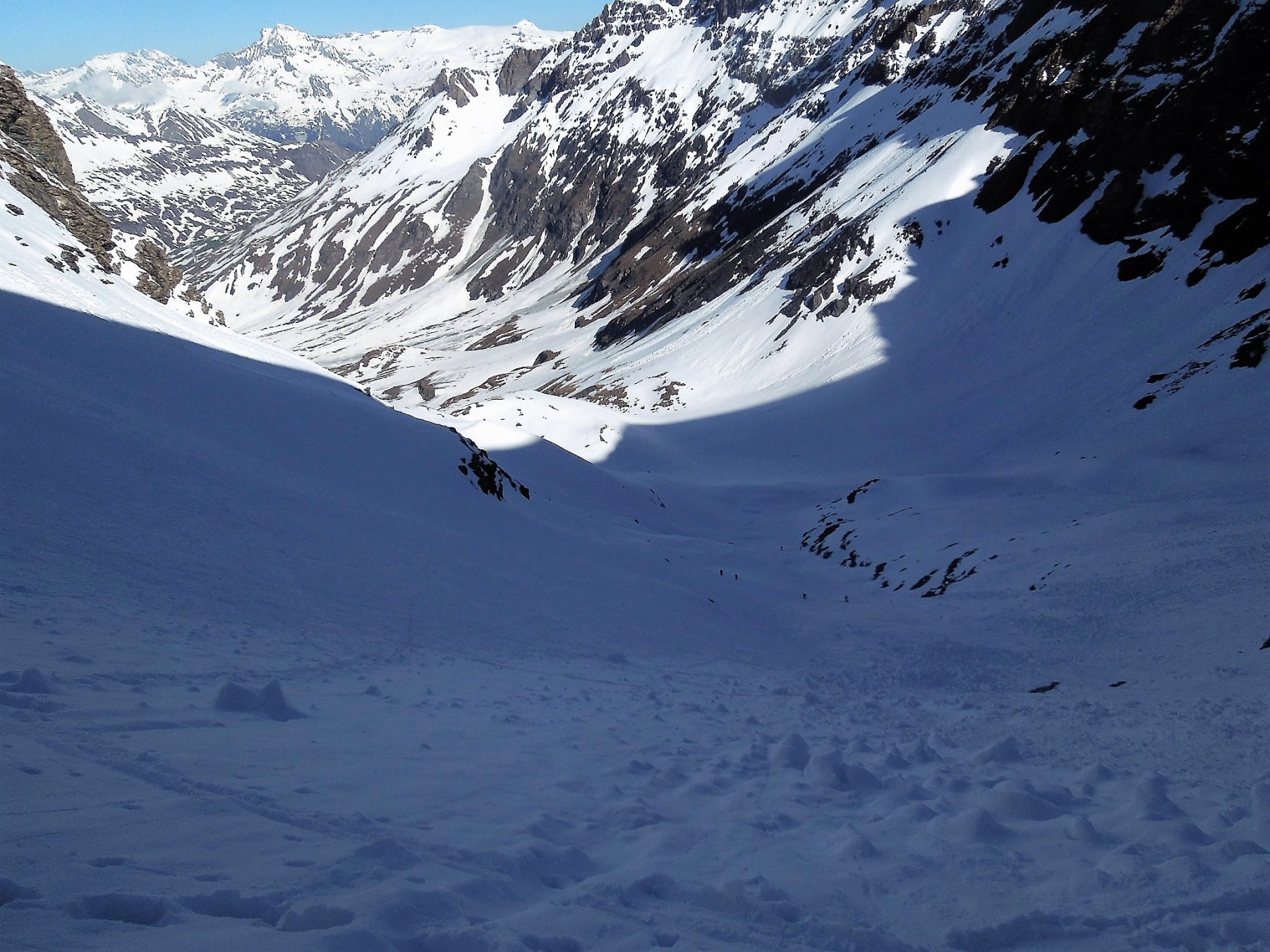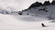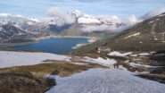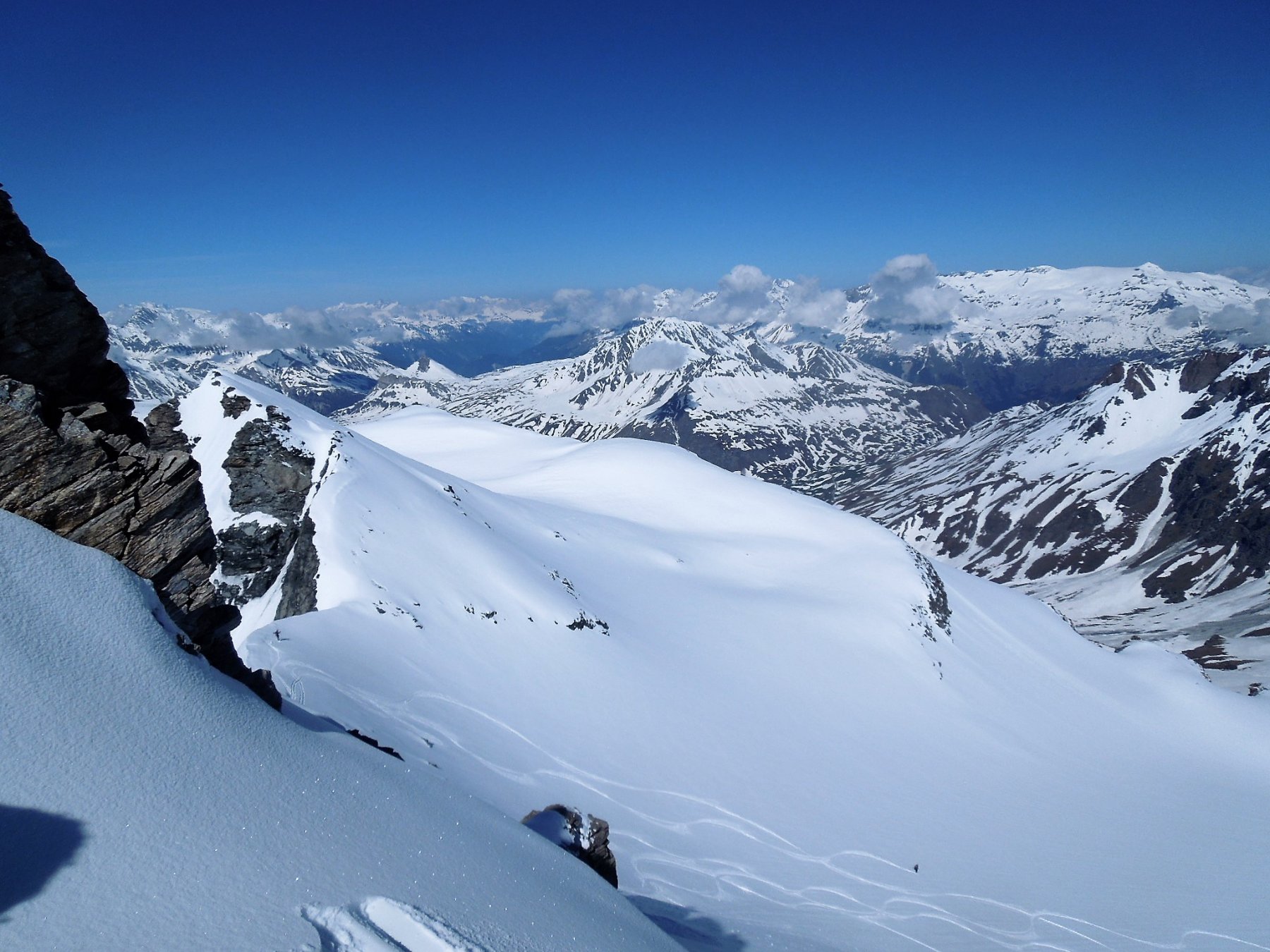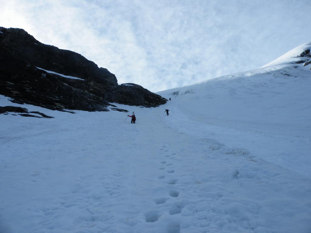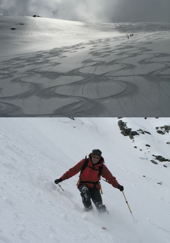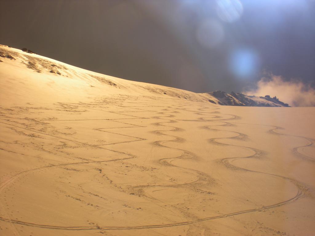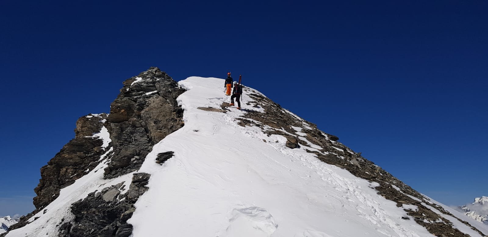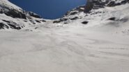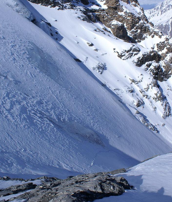 Per arrivare alla cima della Pointe du Lamet conviene raggiungere il colletto alla sua sinistra, e in breve sulla cresta si raggiungono le roccette del piccolo torrione sommitale. Per arrivare invece al Signal du Lamet, dal pendio glaciale finale, si traversa verso destra in direzione di una conca, risalendo l’ultimo pendio di neve mista a sfasciumi.