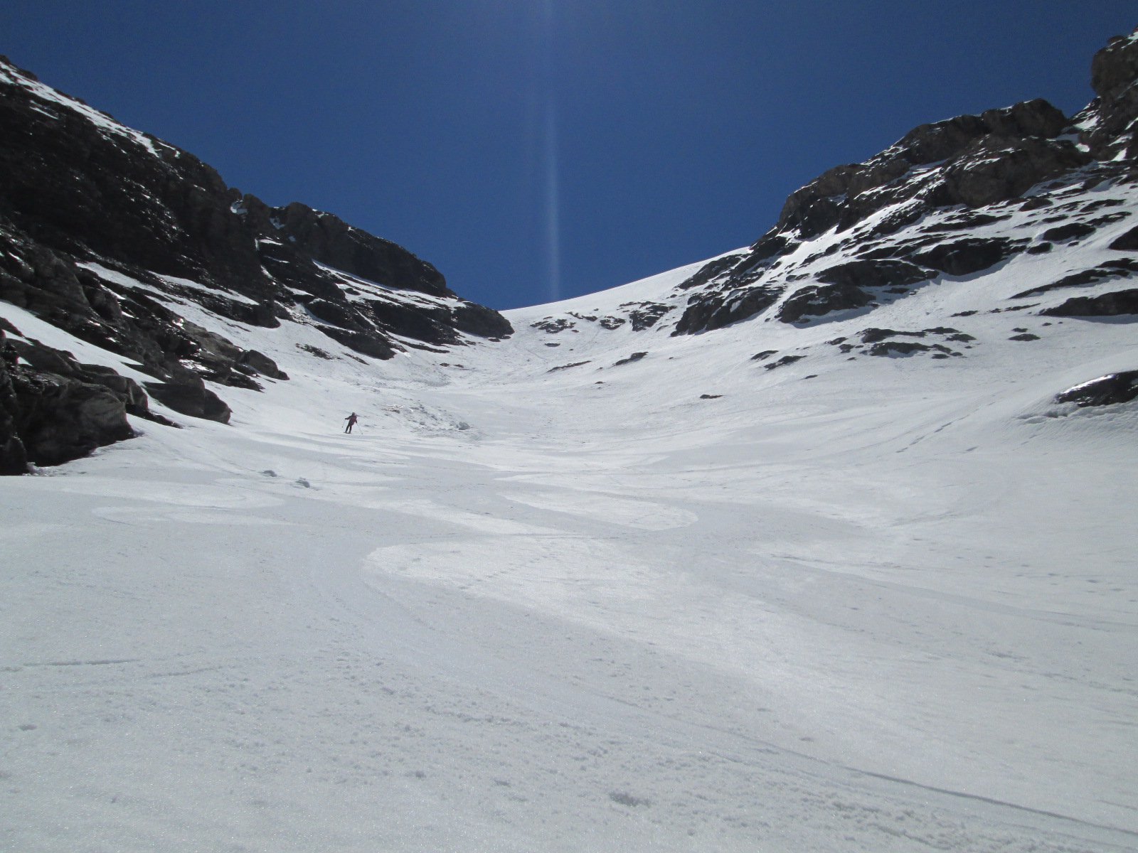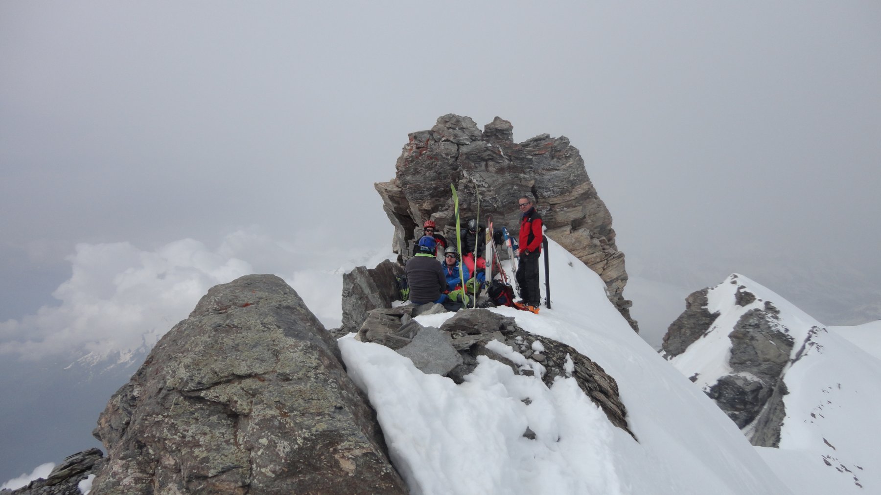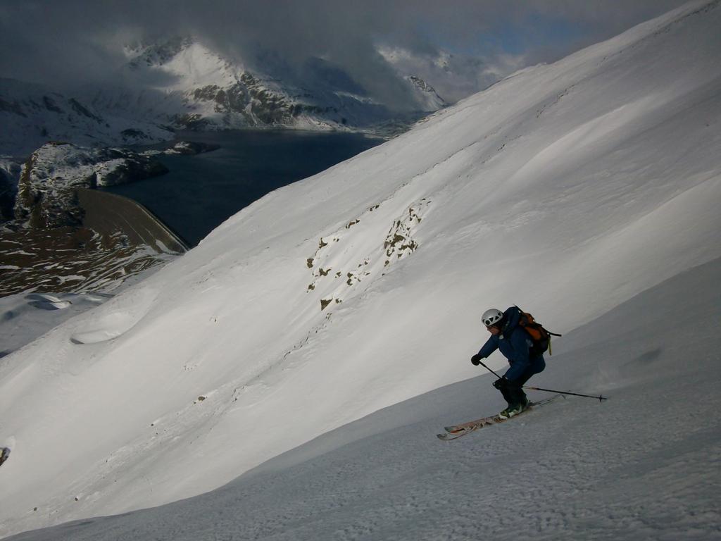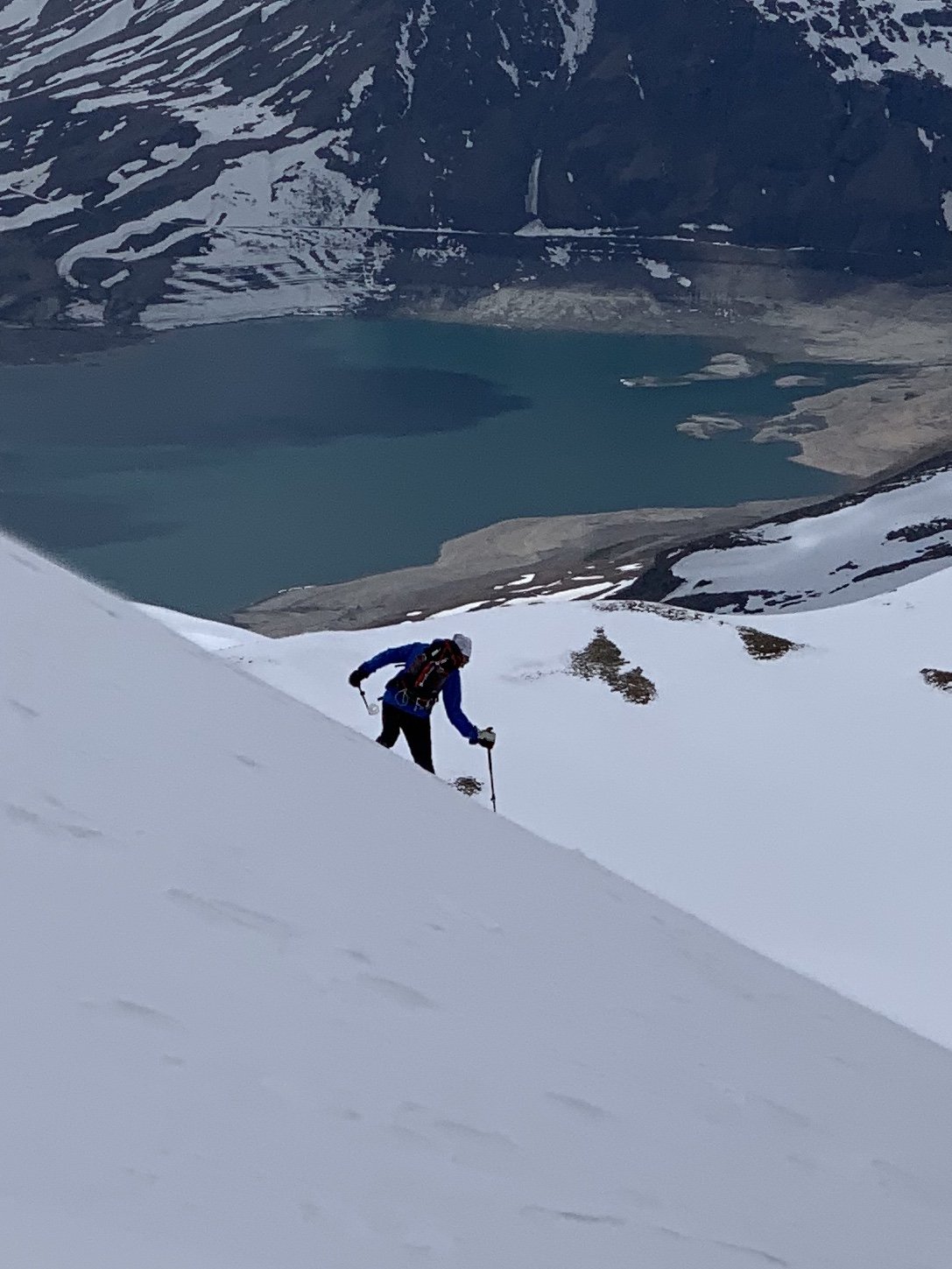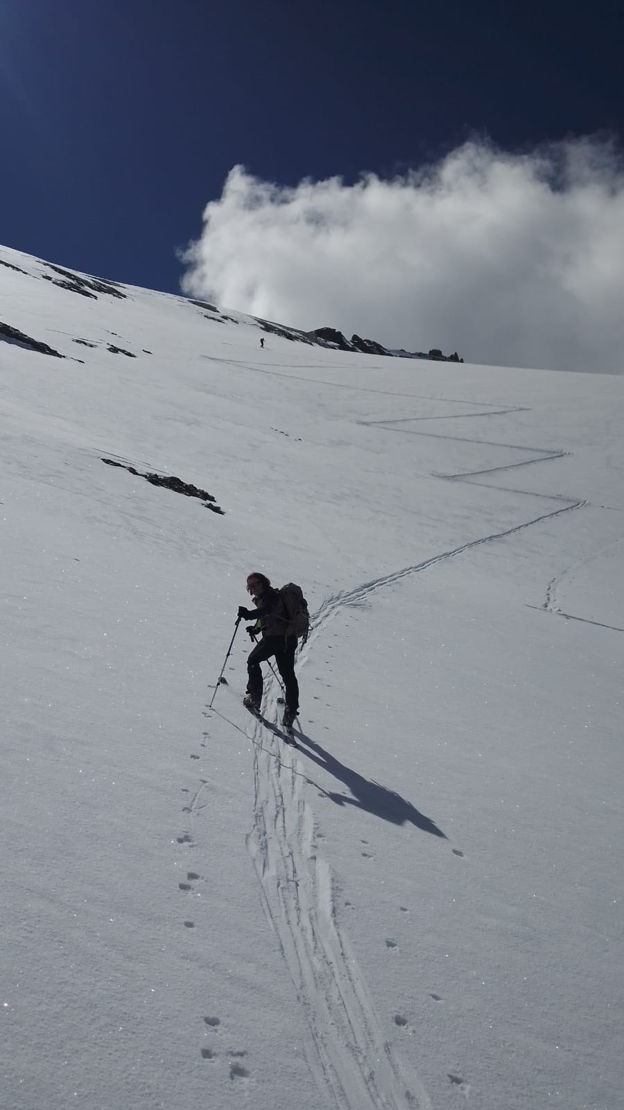 Per arrivare alla cima della Pointe du Lamet conviene raggiungere il colletto alla sua sinistra, e in breve sulla cresta si raggiungono le roccette del piccolo torrione sommitale. Per arrivare invece al Signal du Lamet, dal pendio glaciale finale, si traversa verso destra in direzione di una conca, risalendo l’ultimo pendio di neve mista a sfasciumi.
