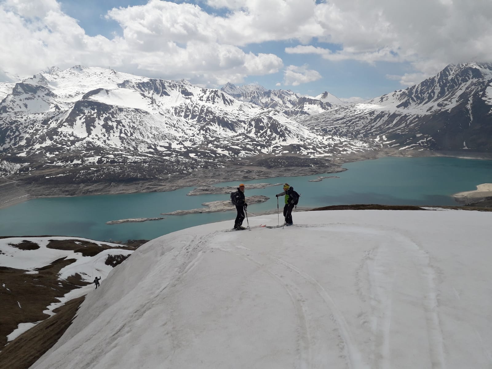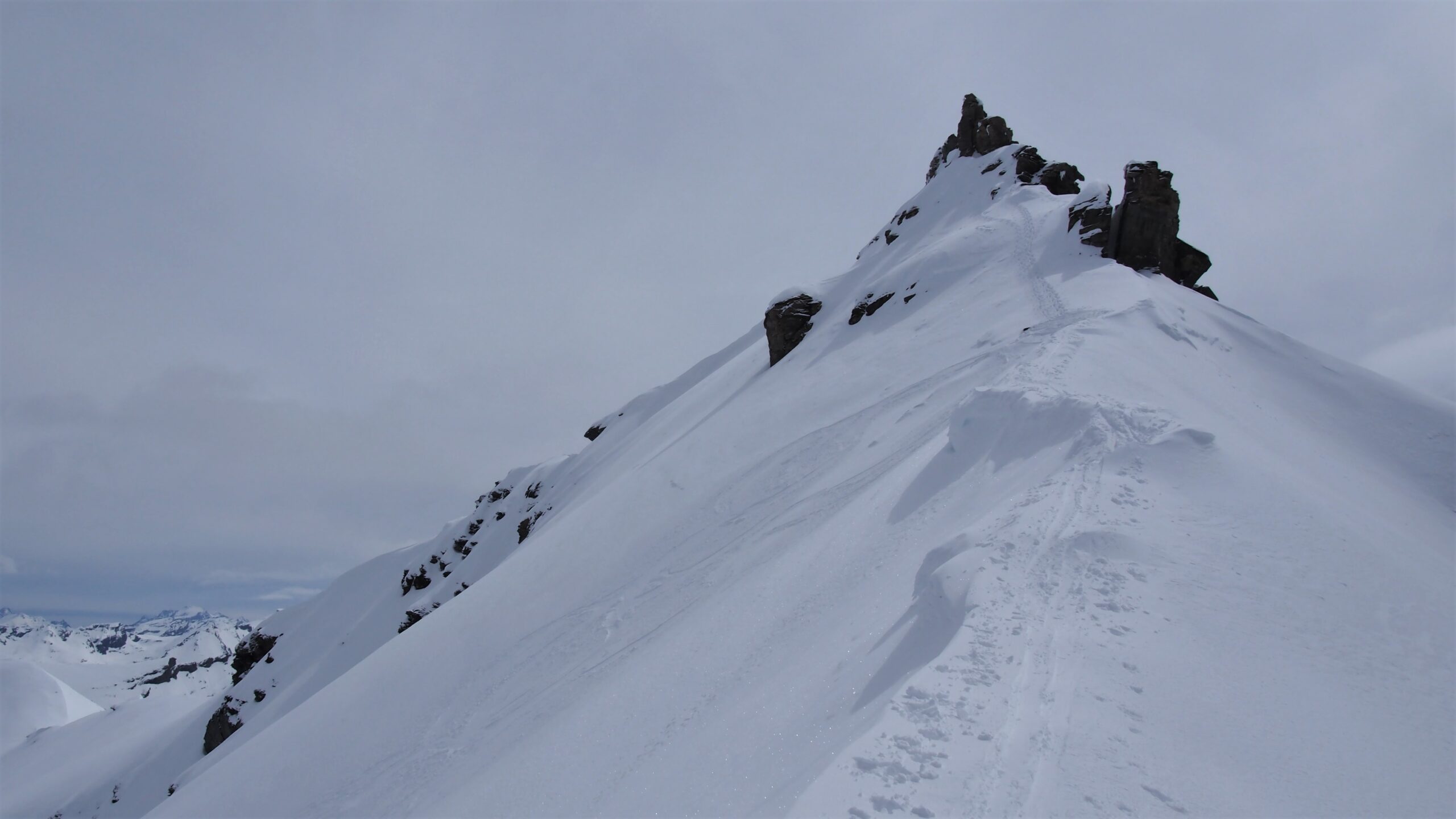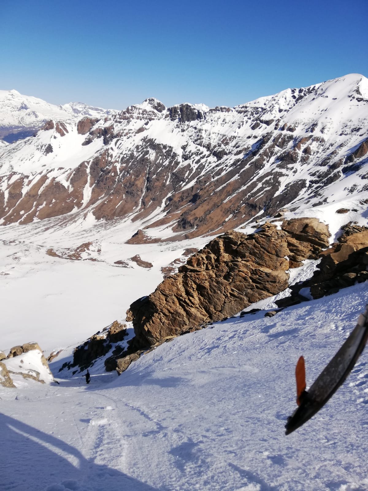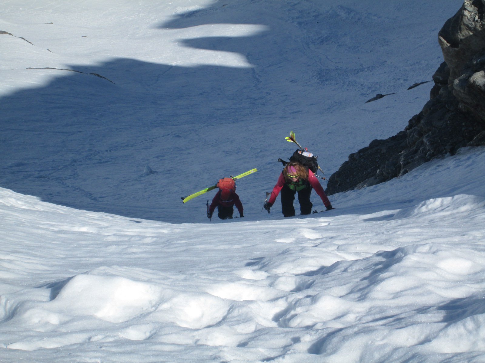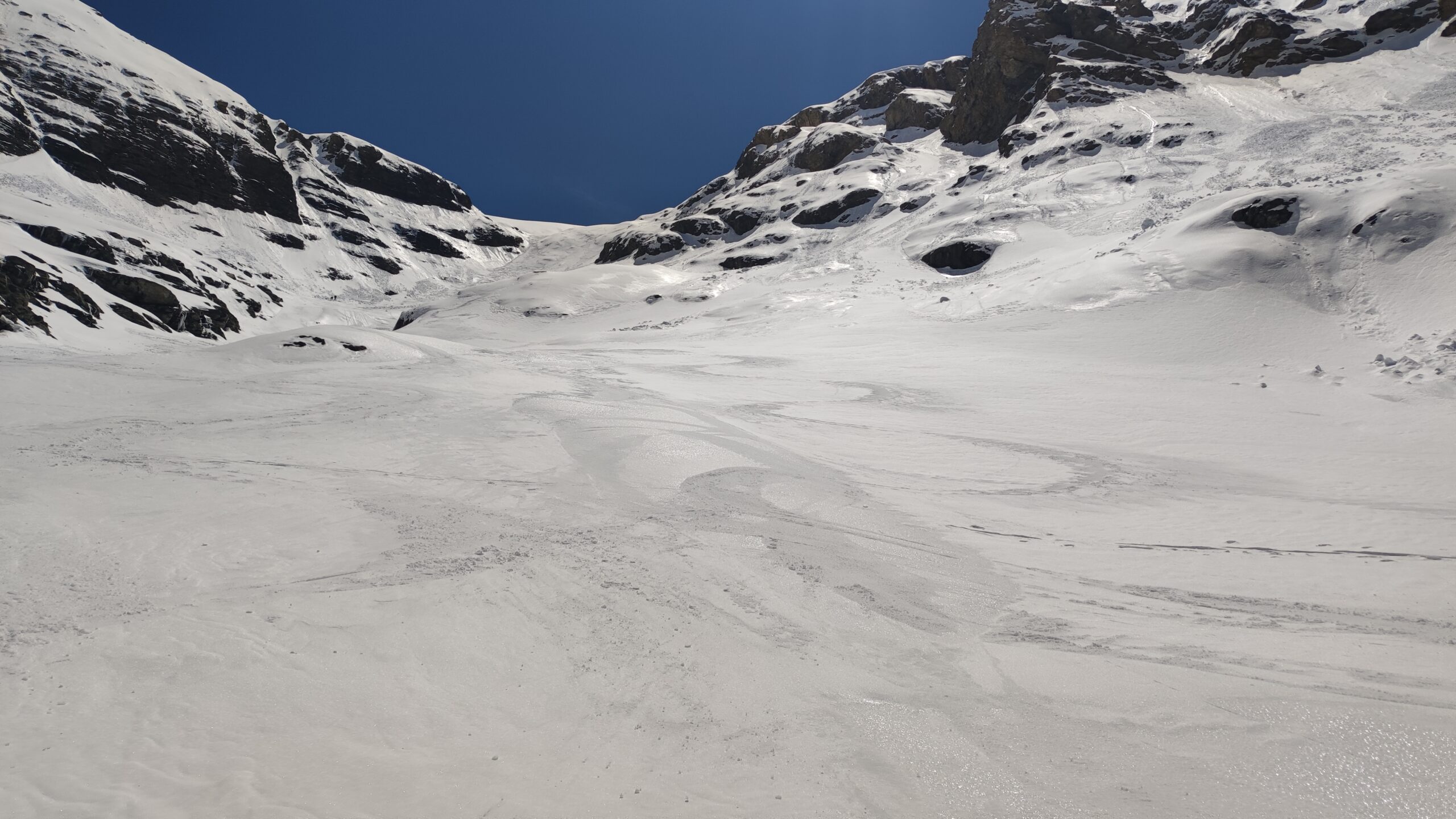 Per arrivare alla cima della Pointe du Lamet conviene raggiungere il colletto alla sua sinistra, e in breve sulla cresta si raggiungono le roccette del piccolo torrione sommitale. Per arrivare invece al Signal du Lamet, dal pendio glaciale finale, si traversa verso destra in direzione di una conca, risalendo l’ultimo pendio di neve mista a sfasciumi.