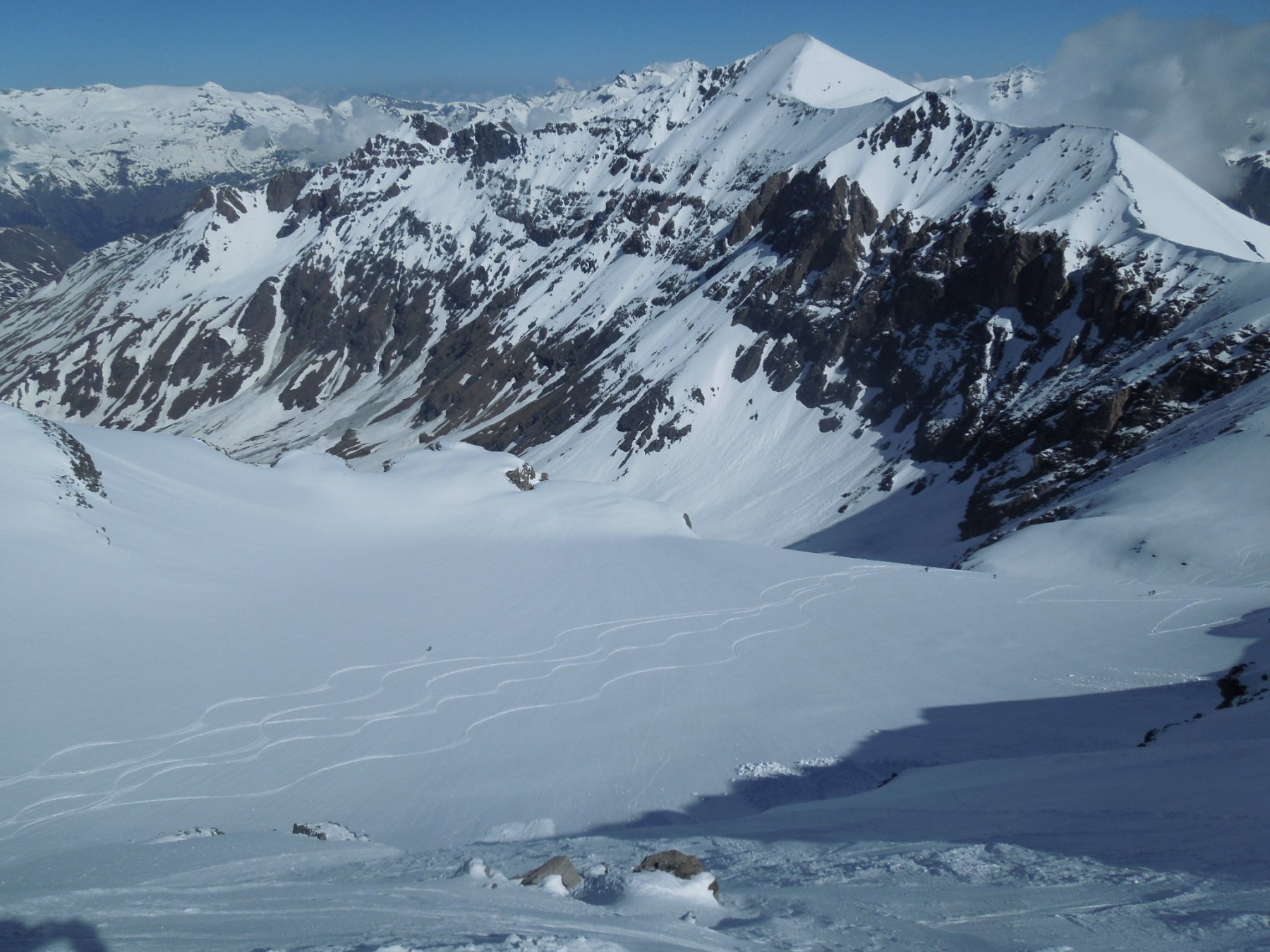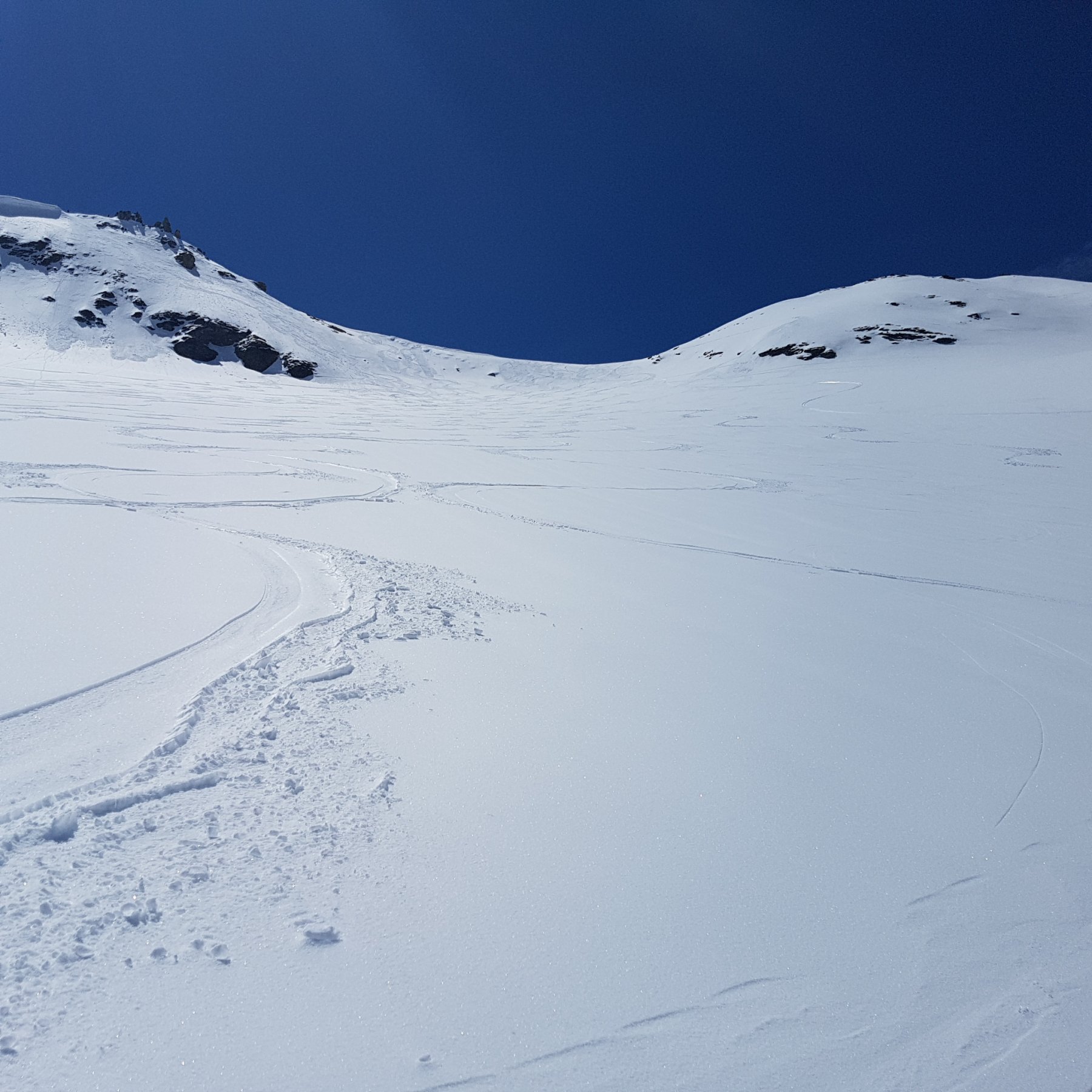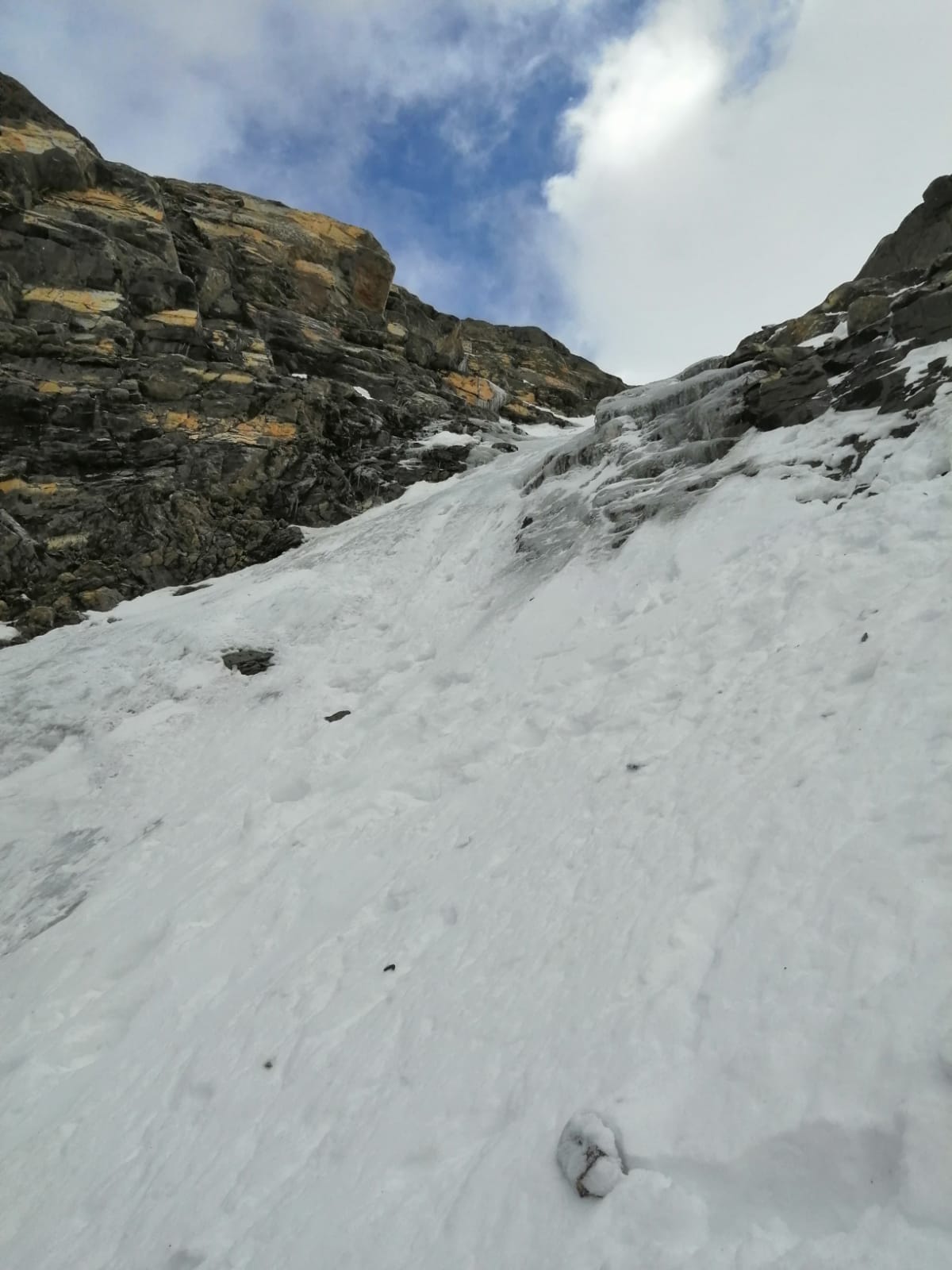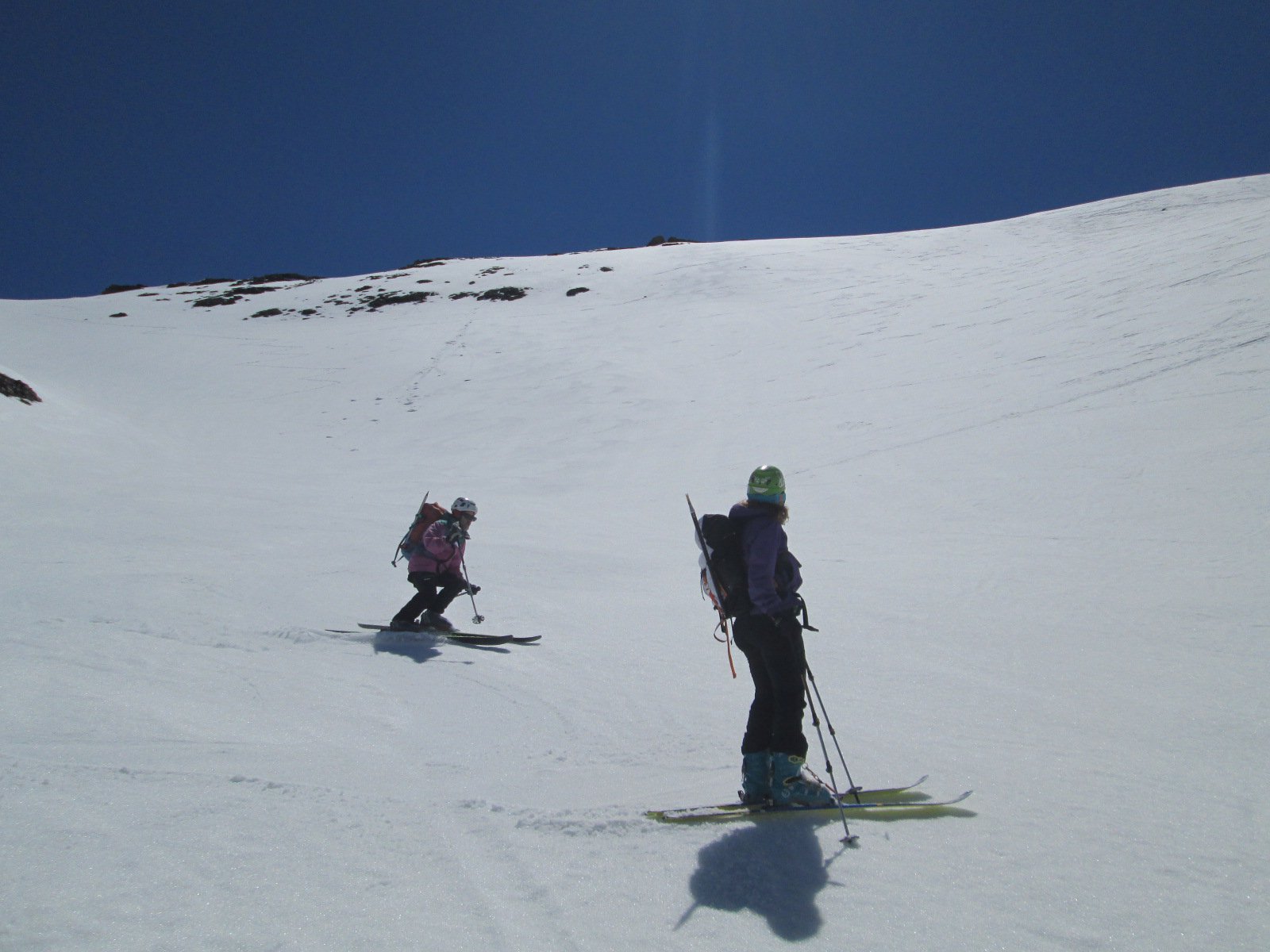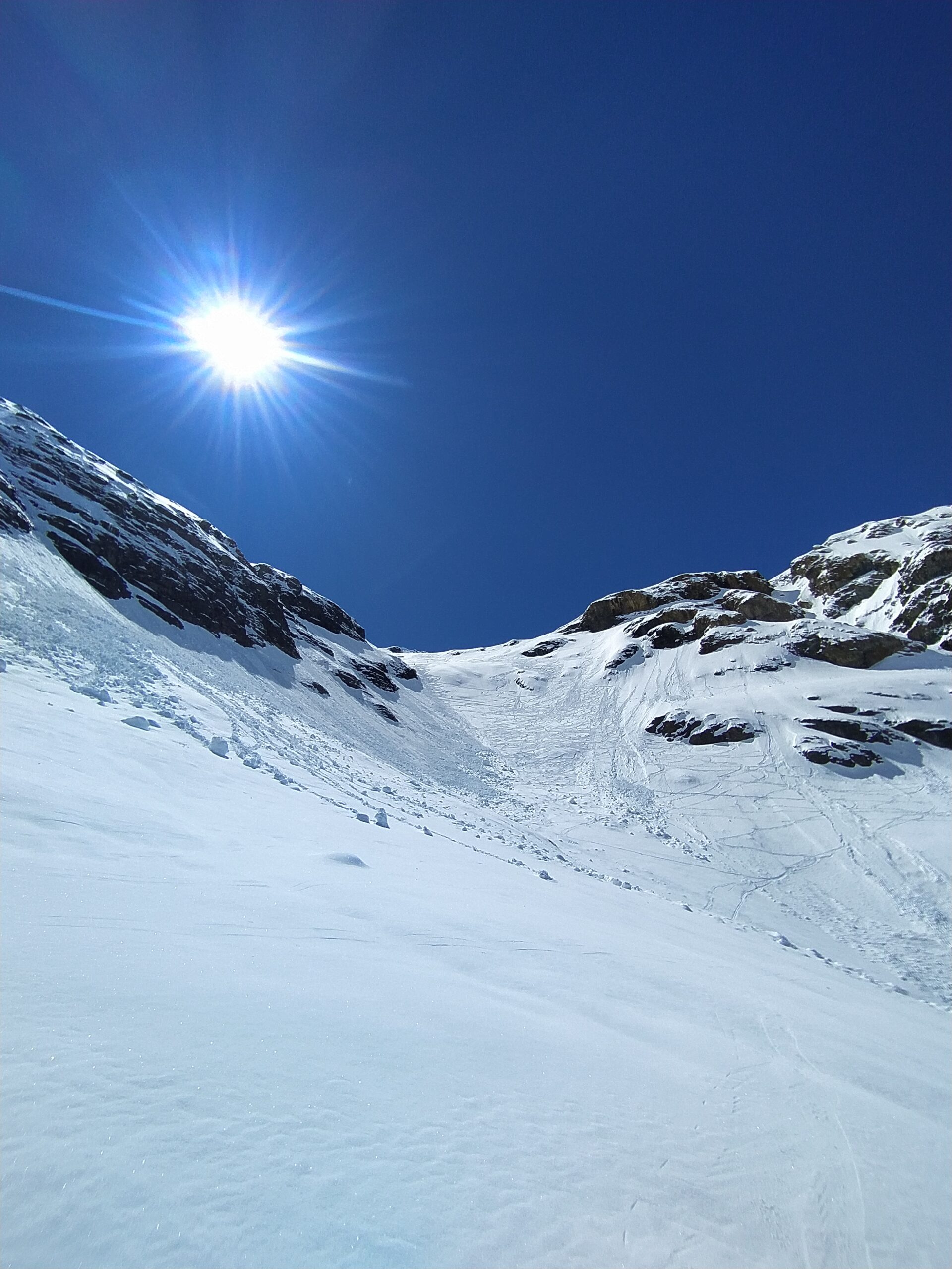 Per arrivare alla cima della Pointe du Lamet conviene raggiungere il colletto alla sua sinistra, e in breve sulla cresta si raggiungono le roccette del piccolo torrione sommitale. Per arrivare invece al Signal du Lamet, dal pendio glaciale finale, si traversa verso destra in direzione di una conca, risalendo l’ultimo pendio di neve mista a sfasciumi.