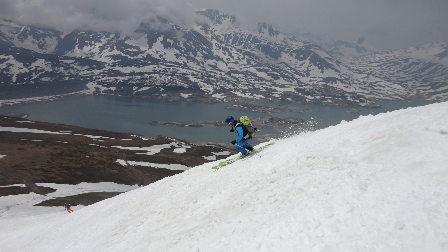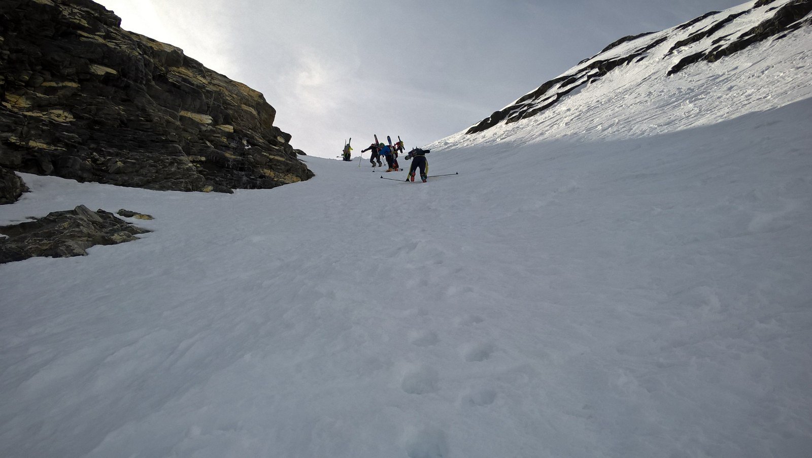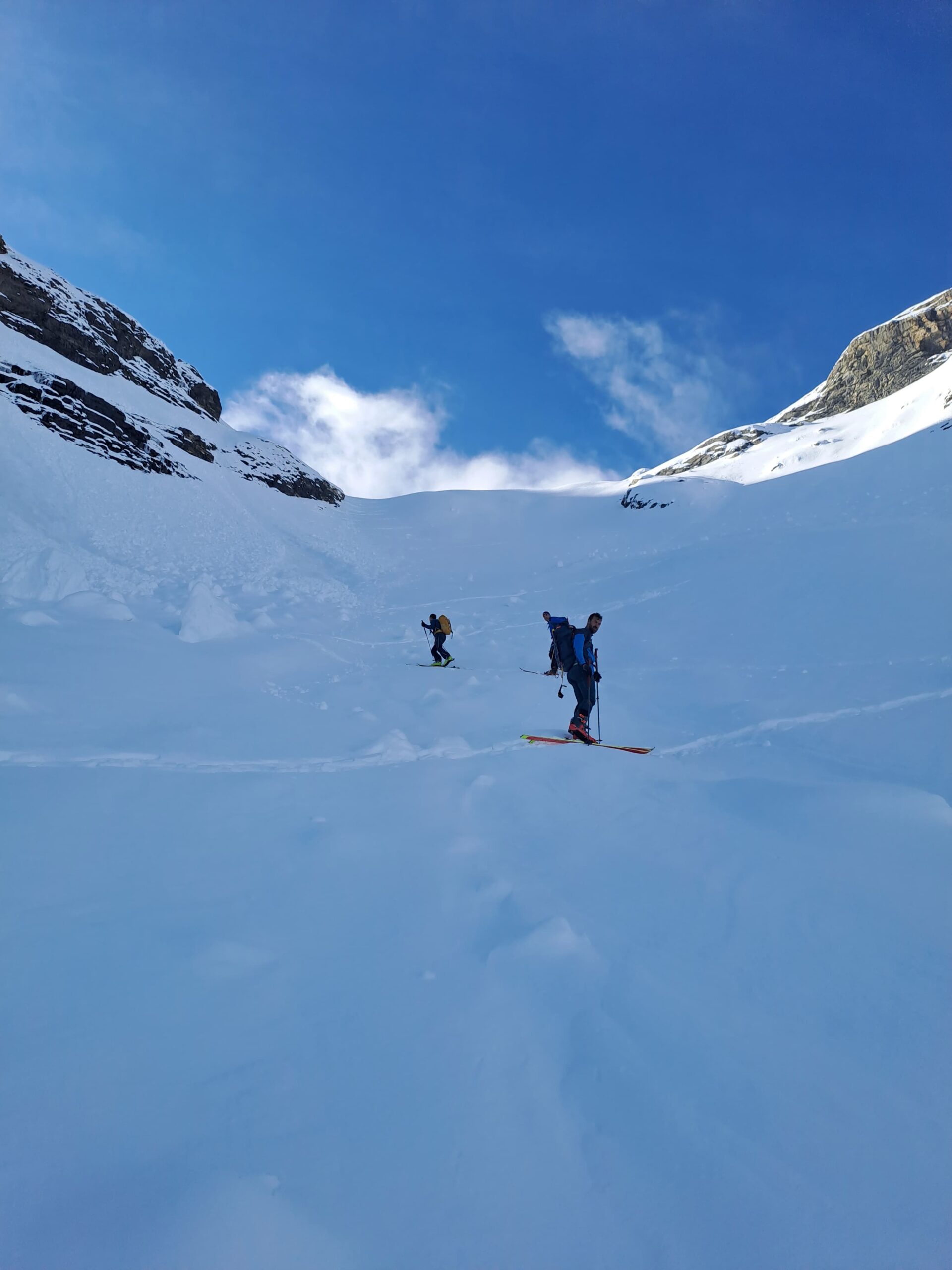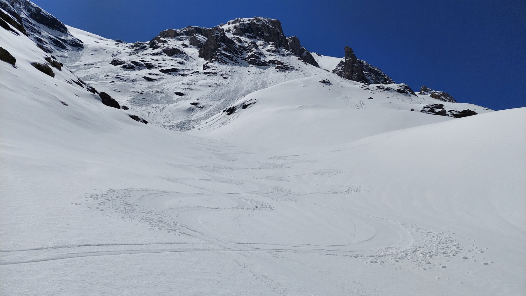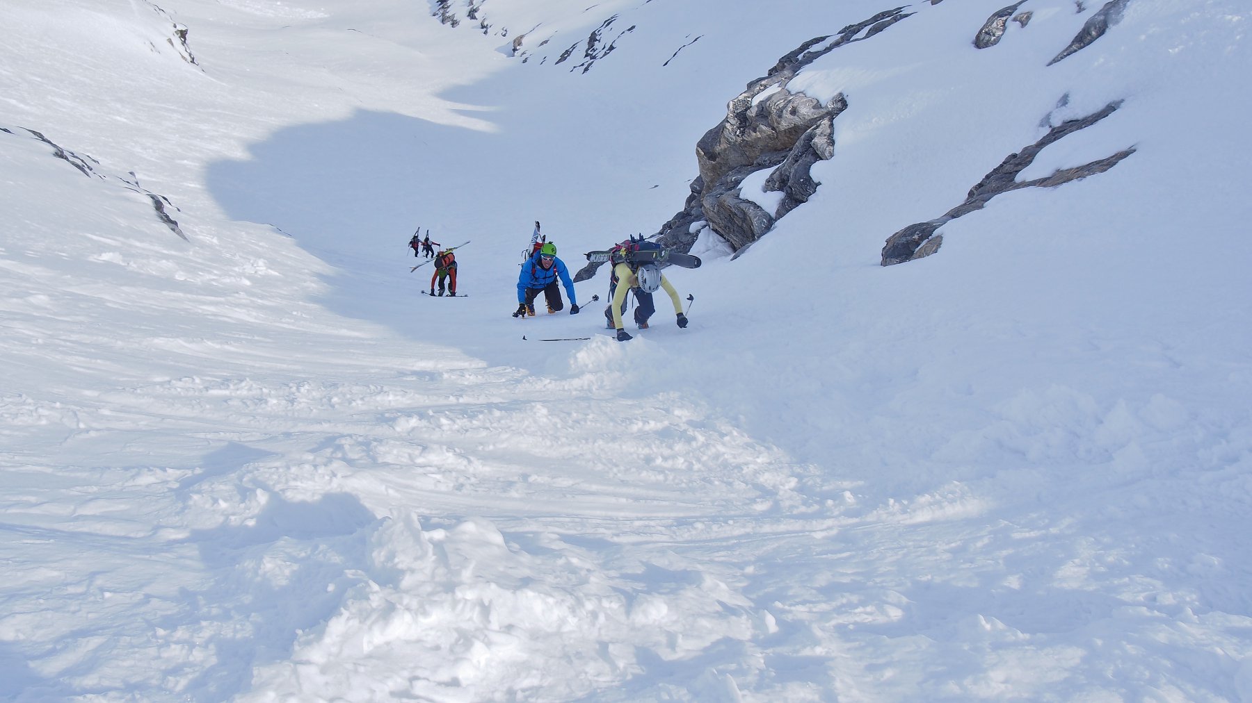 Per arrivare alla cima della Pointe du Lamet conviene raggiungere il colletto alla sua sinistra, e in breve sulla cresta si raggiungono le roccette del piccolo torrione sommitale. Per arrivare invece al Signal du Lamet, dal pendio glaciale finale, si traversa verso destra in direzione di una conca, risalendo l’ultimo pendio di neve mista a sfasciumi.
