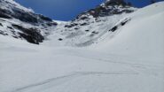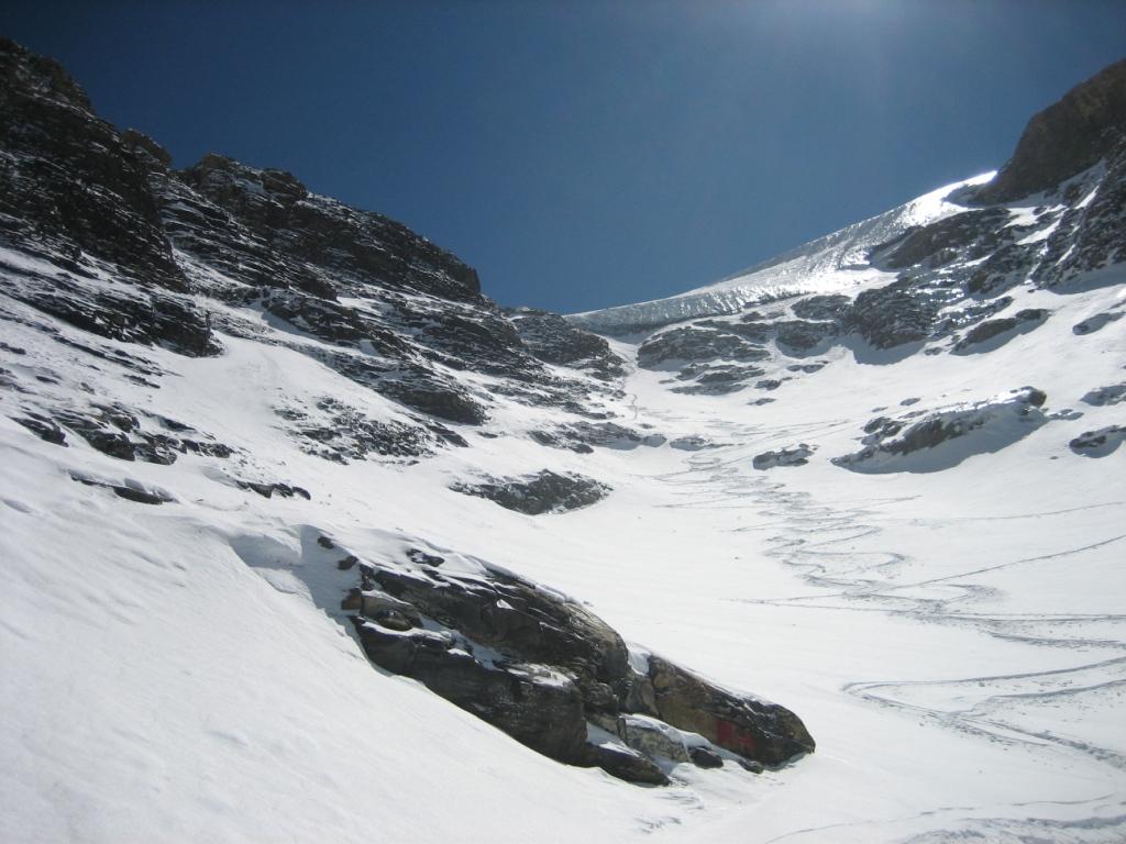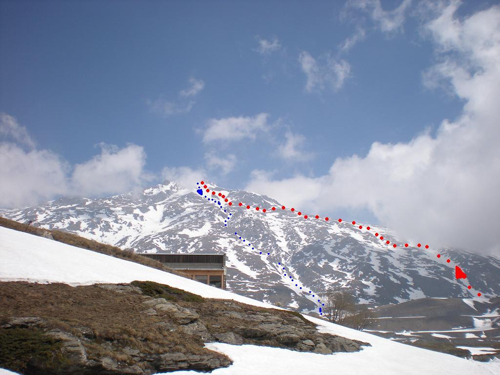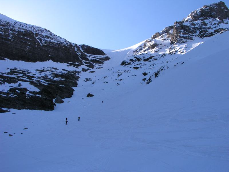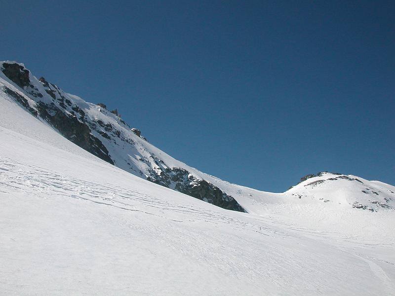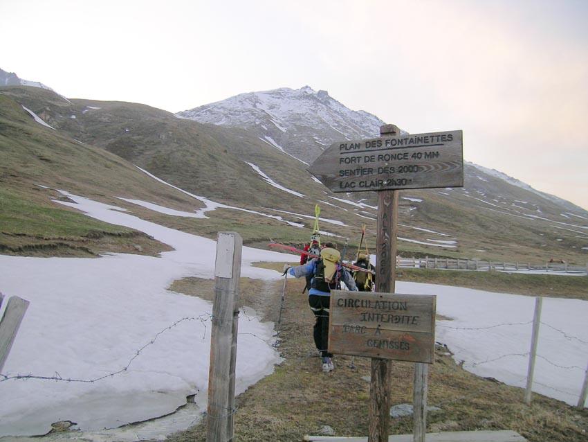 Da Plan des Fontainettes risalire i pendii in direzione del forte Roncia, attaversare il successivo falso piano (delle Cavalle) sino a raggiungere il laghetto Clair, proseguire sulla sinistra del lago e risalire il canale nord del seracco, superatolo si giunge su pendii più tranquilli sotto la vetta.