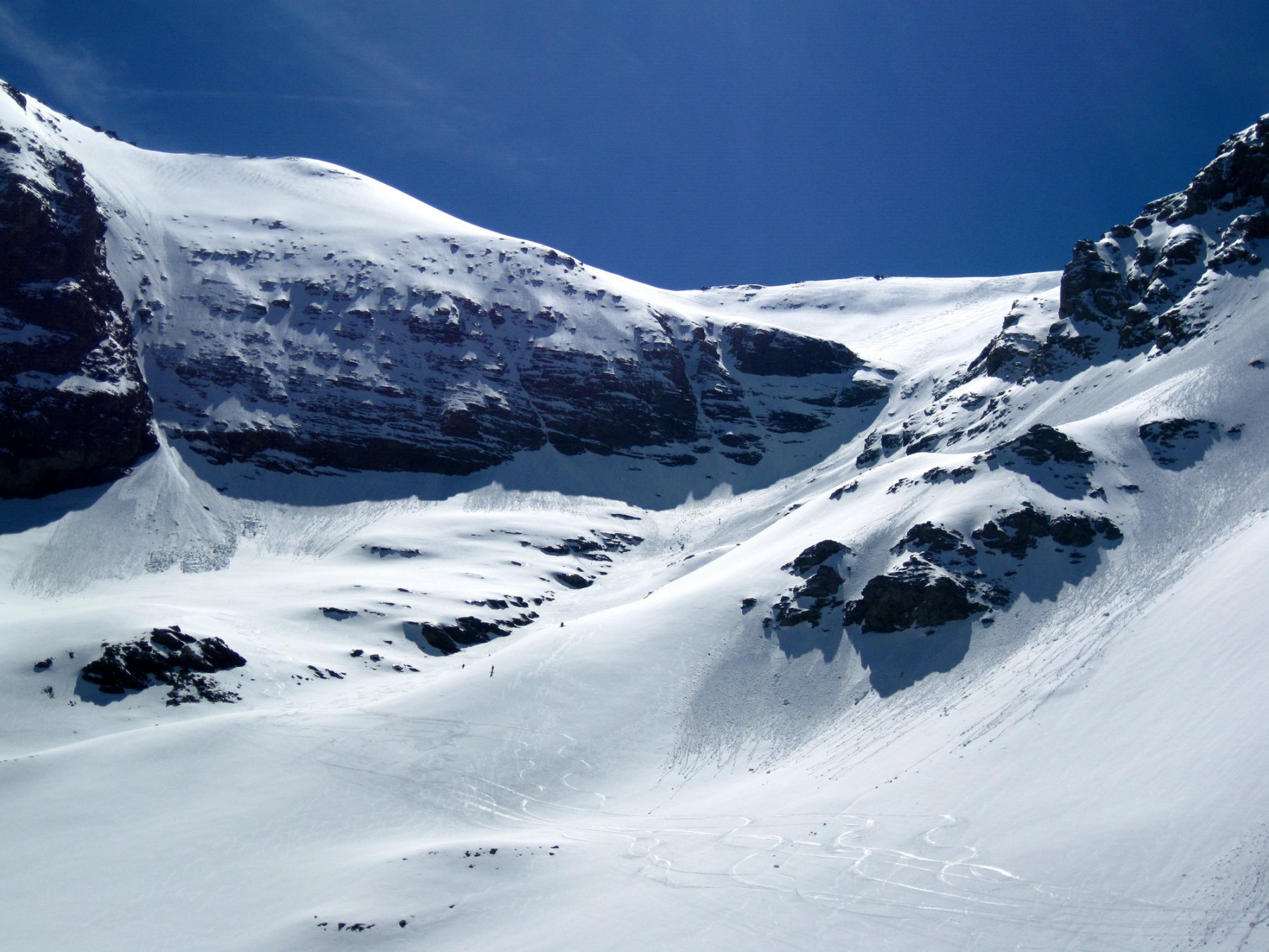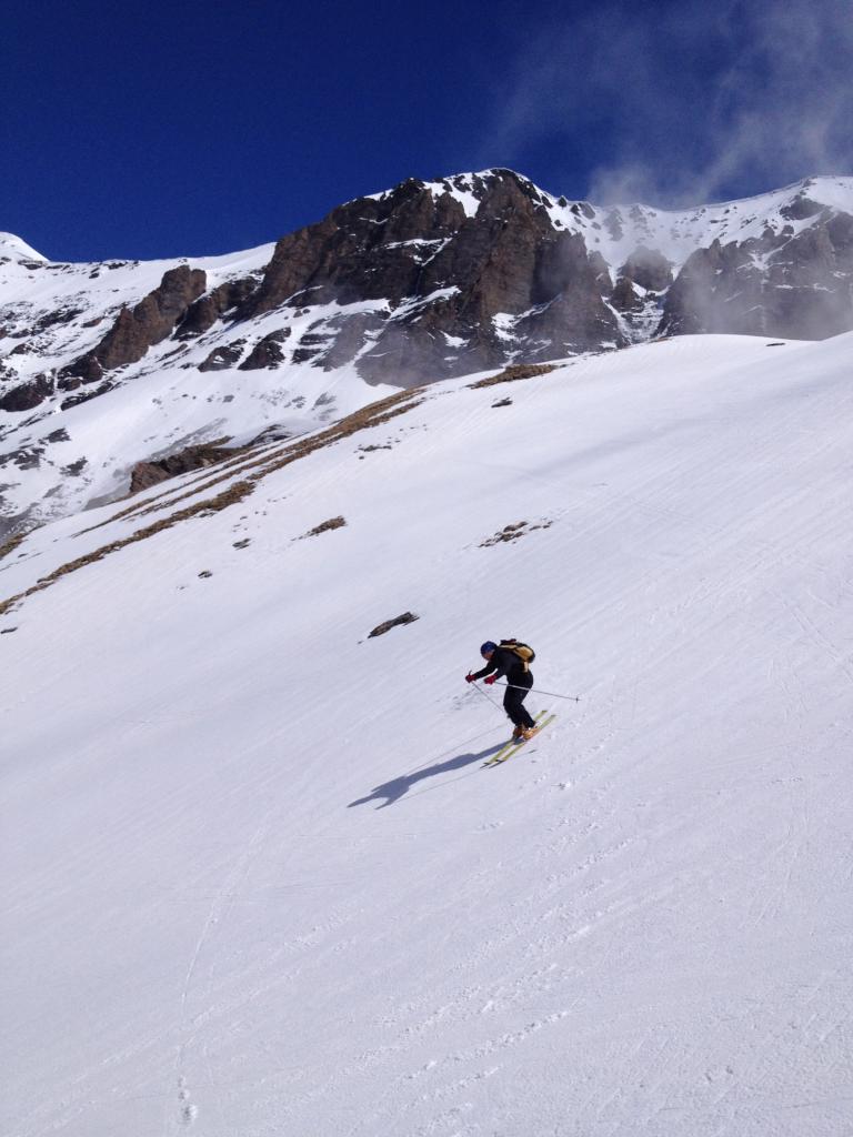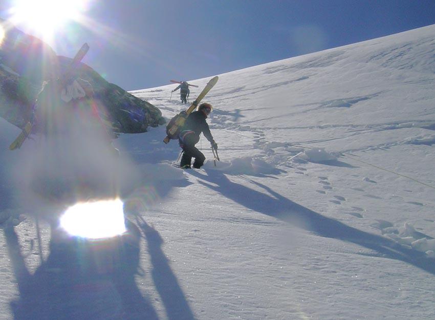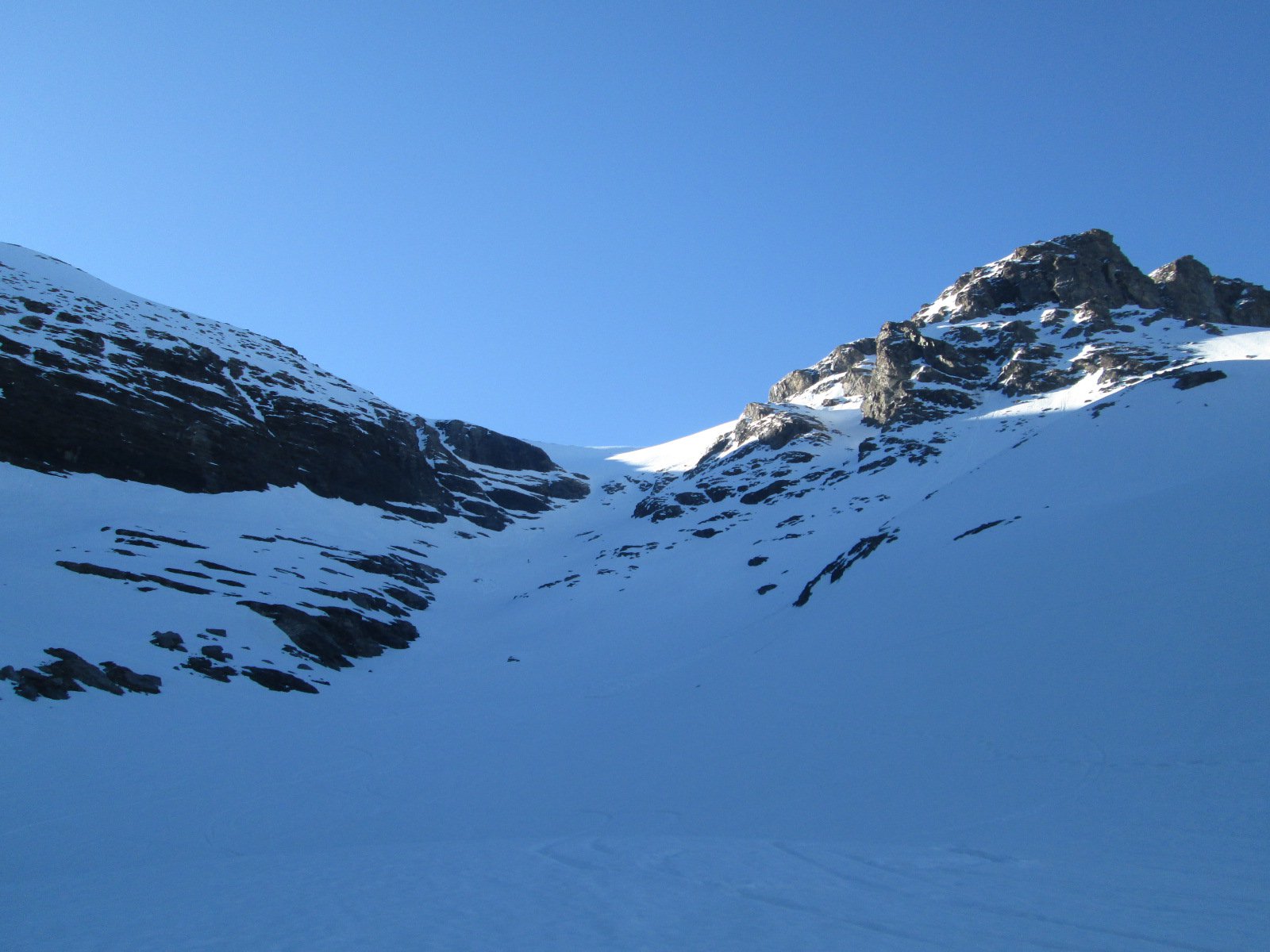 Da Plan des Fontainettes risalire i pendii in direzione del forte Roncia, attaversare il successivo falso piano (delle Cavalle) sino a raggiungere il laghetto Clair, proseguire sulla sinistra del lago e risalire il canale nord del seracco, superatolo si giunge su pendii più tranquilli sotto la vetta.