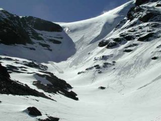 Riscesi dal ghiacciaio del Lamet, questa volta neve molto facile, discesa fatta d’un fiato. Peccato sia così corta…