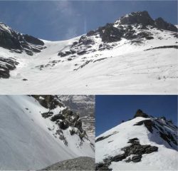 Gran bella gita in solitaria, ma tra tanti simpatici scialpinisti. Il seracco si risale sulla sinistra con picca e ramponi senza grosse difficoltà. Dalla vetta in panorama è molto ampio e veramente spettacolare. Discesa verso le 11:30 su neve ancora molto dura (unico neo della gita). In queste condizioni, il seracco in discesa oppone qualche resistenza ma con dovuta cautela, un pò di derapata e la giusta dose di panico si scende. Infine per lingue a un centinaio di metri dalla macchina.