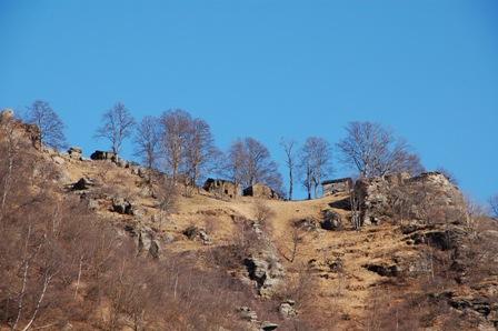 Attraversatolo la mulattiera sale lungo il torrente per poi raggiungere con una decisa svolta a sinistra la borgata Chiot (m. 1224). Non passare in mezzo alle case, ma seguire il sentiero che costeggia verso destra un bel muro di recinzione in pietra fino a sbucare nella strada sterrata che sale ad Anchioccia.