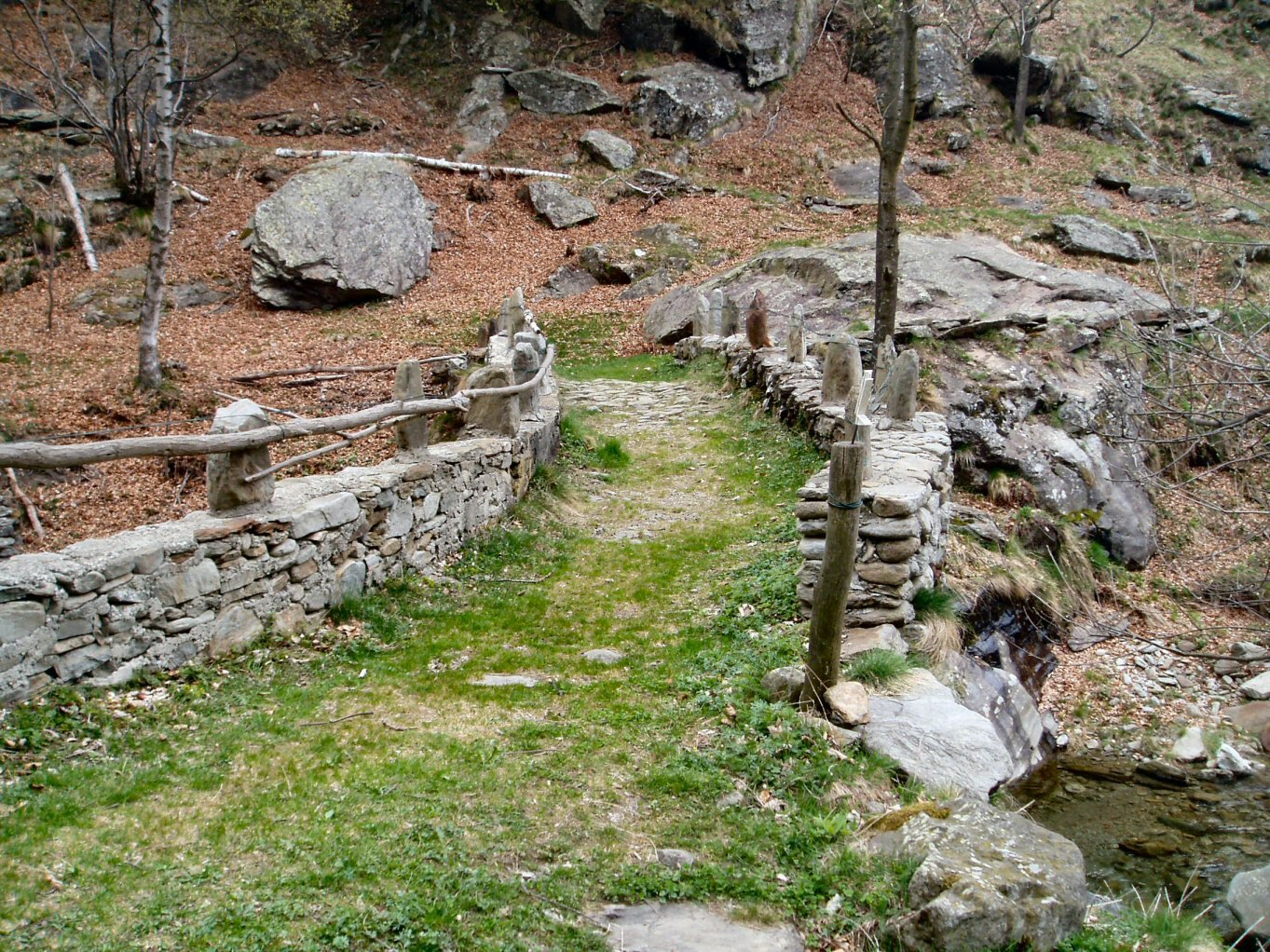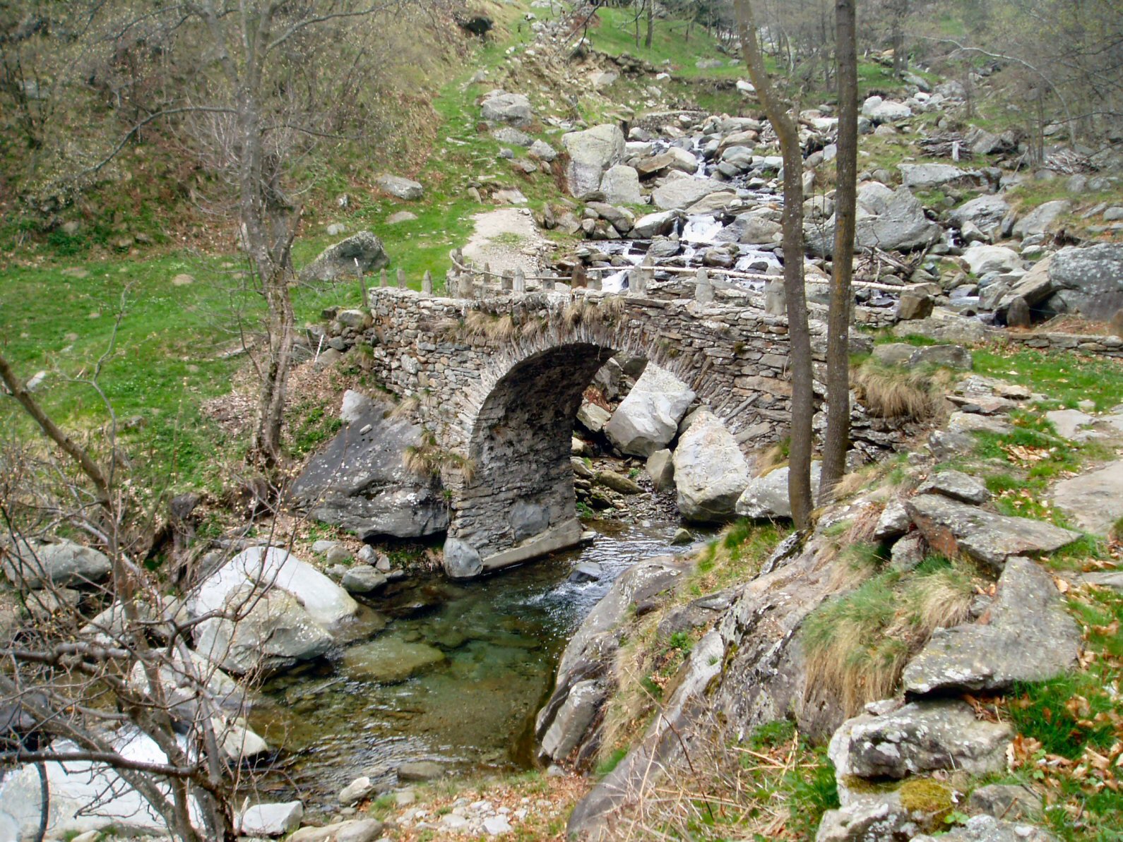 Proseguire oltre la borgata (bellissimi scalini in pietra su muro a secco) per poi arrivare con una leggera discesa al caratteristico ponte in pietra dell’Armach.