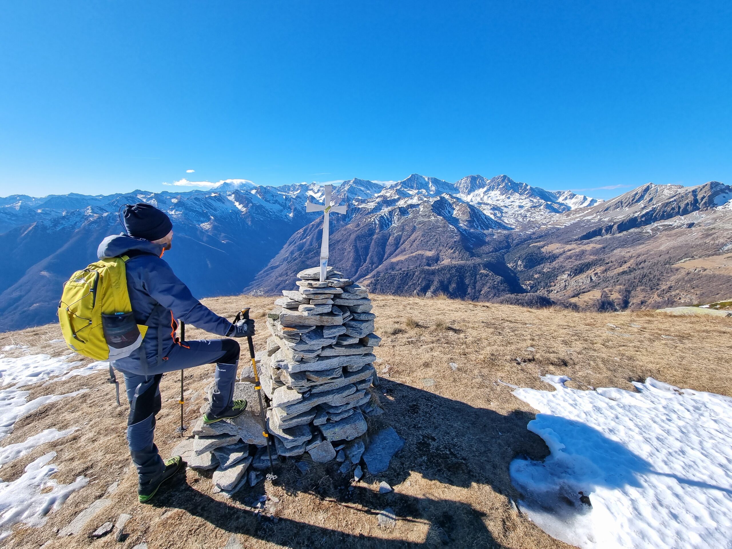 Breve ma intensa, andata di 6 km con dislivello positivo di 1400 m quindi con una bella pendenza, dal parcheggio alla cima in 2 ore e 30 min. senza calcolare la piccola pausa tè a metà traccia, ottima escursione, vista paradisiaca, tracciato ben segnato e pulito, anche nel punto in cui si può tagliare (noi fatto solo in discesa, se no ti perdi la grande croce) che è sprovvisto di bandierine segnaletiche ma c’è la presenza di “omini” fatti con i sassi che ti indicano il cammino! Poca neve, solo sulla cima, ma facilmente percorribile!