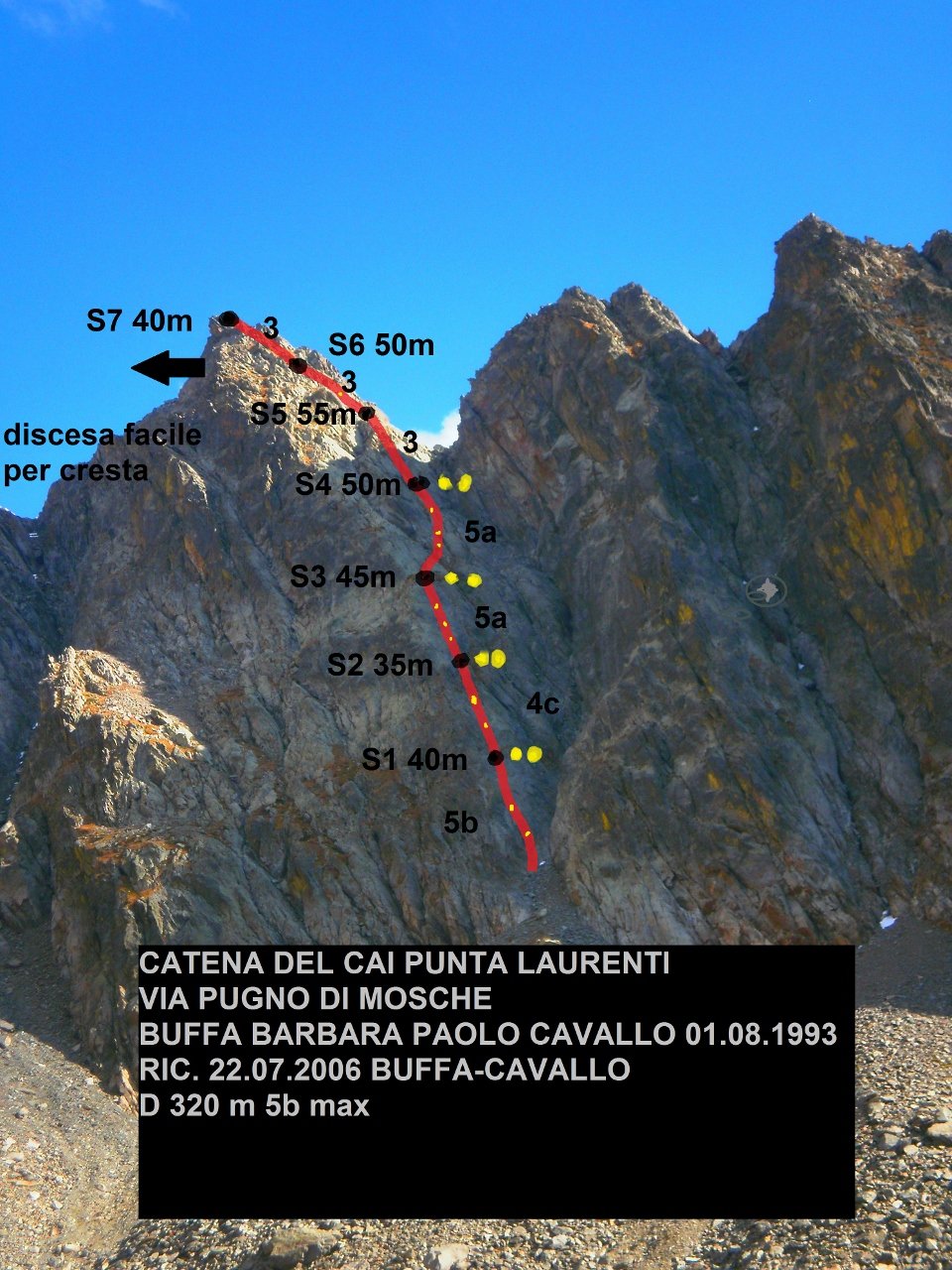 Barbara Buffa e Paolo Cavallo nel 1993. La via è stata rivista nella chiodatura il 22.07.2006 da Paolo Cavallo.