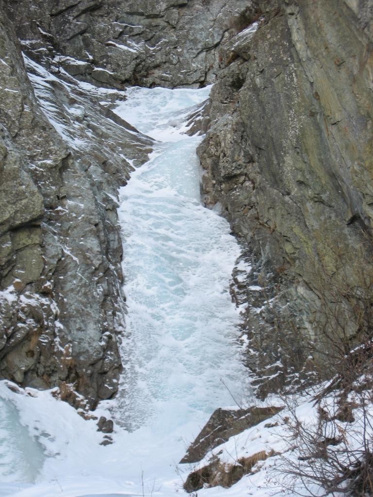 - L5: stretta goulotte protetta da una pozza profonda, WI 3. Qualora la pozza non fosse gelata si sale sulla dx con alcuni passi di misto (M3) fin a quando si riesce ad attraversare a sx e si riprende la goulotte, che termina con un ultimo salto che può presentare altri passi di misto (M3). 45m