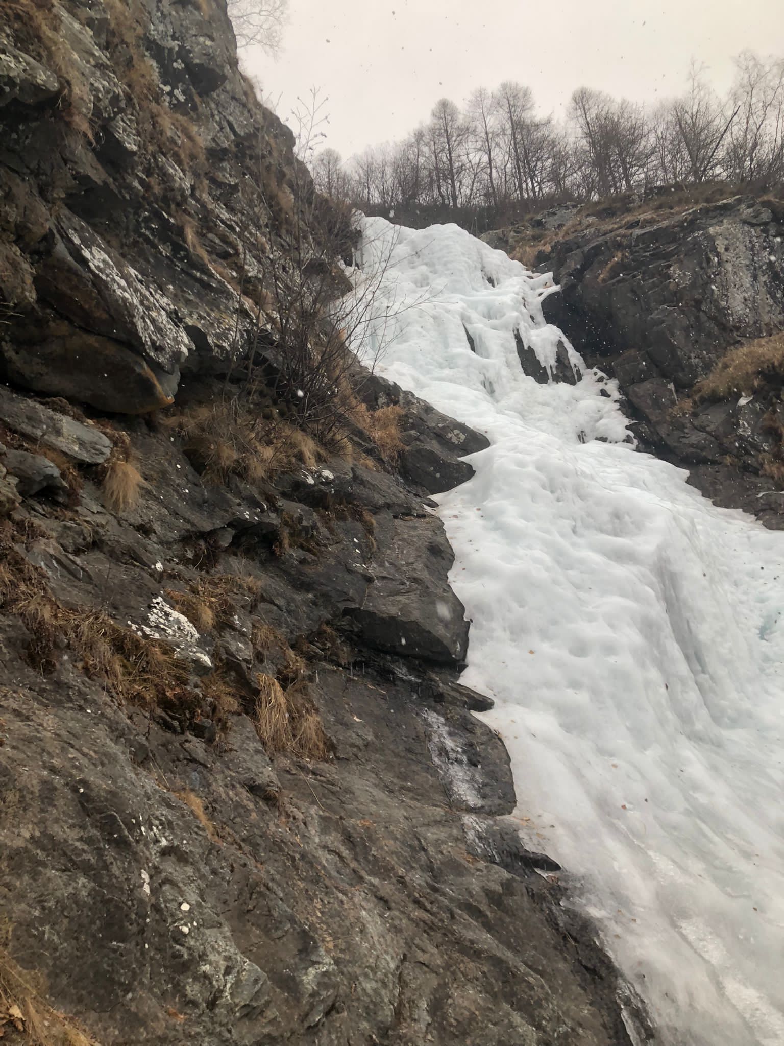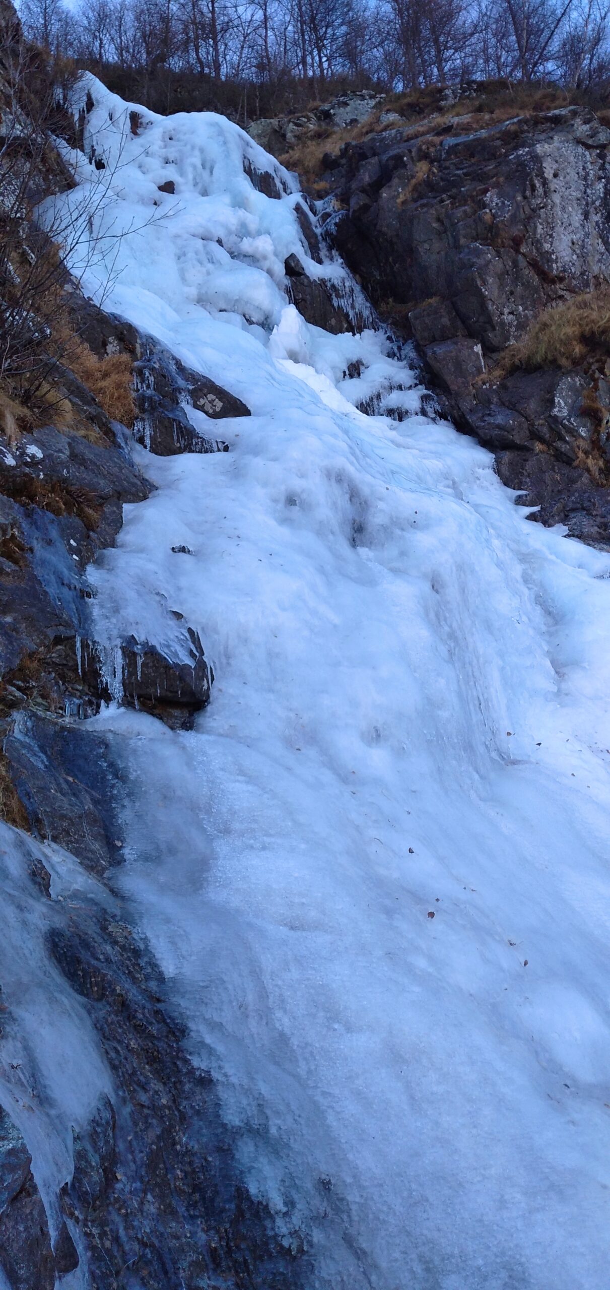 - L4: breve colata a 70°, qualche muretto a 75°. 20m, WI 2+