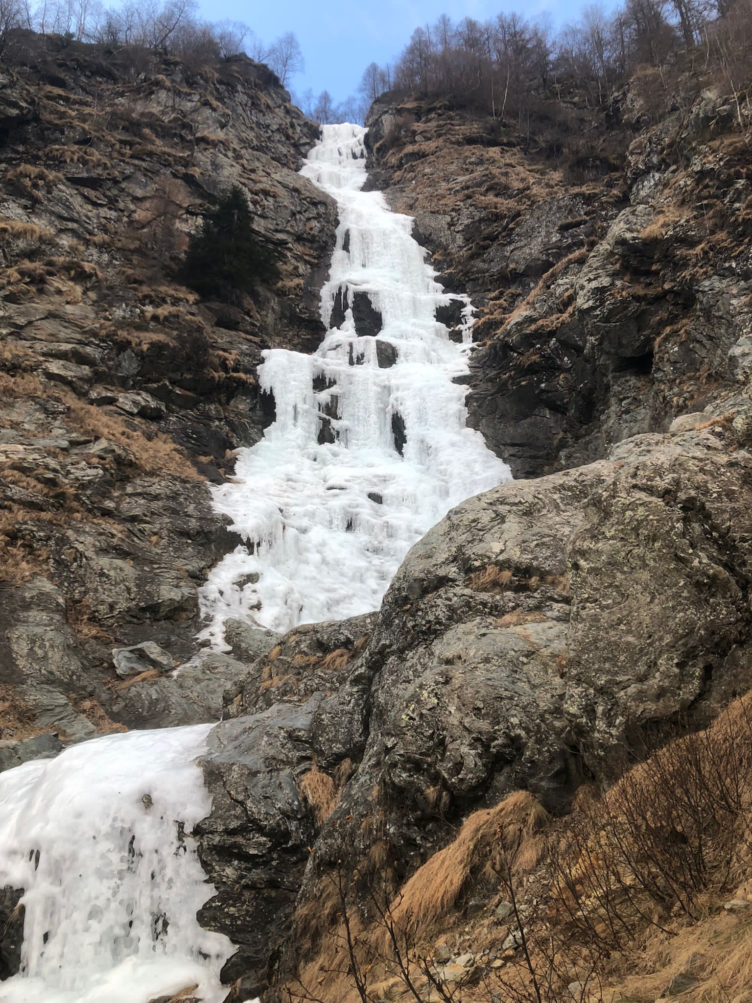 Da divieto raggiungere la centrale idroelettrica uscire a sinistra e puntare facilmente al canalone dove si genera la cascata. 1 ora e 10 minuti.
