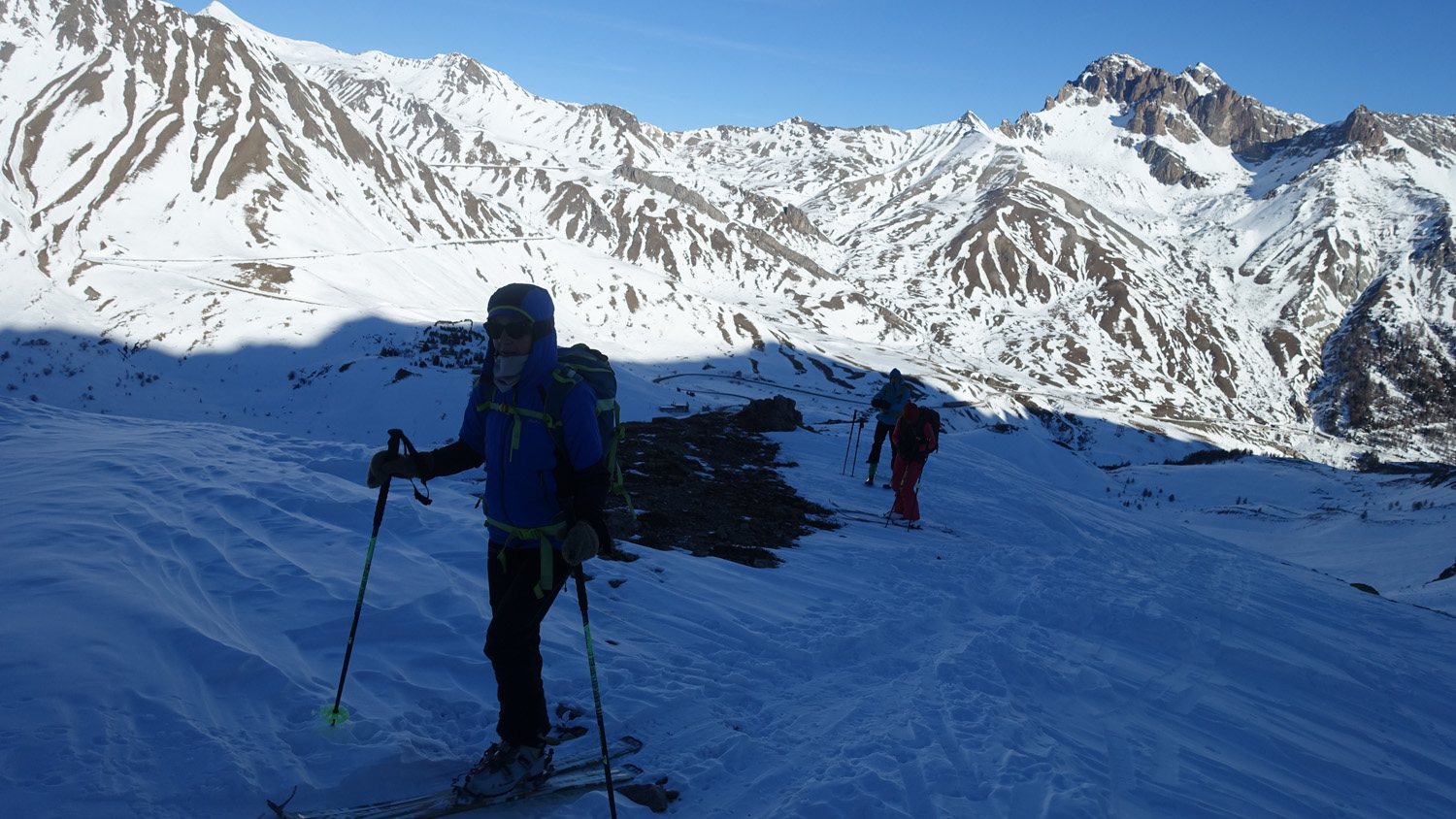 Salita tracciata su neve più dura in basso, ma appena entrati nei valloni riparati, insperata polvere. Ultimi 50m non da sottovalutare. Spettacolo sulla Meje e sulle gite della conca del Lautaret. Discesa attenta i primi 150m, poi ampi spazi di polvere (cercandoli). Giornata spaziale