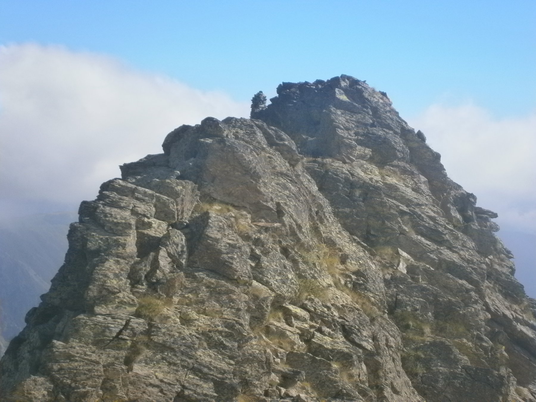 Per evitare il faticoso attraversamento della pietrosa conca del lago conviene alzarsi sulla destra fino alla vicina fascia erbosa sottostante alla cresta rocciosa a nord-est della cima, che si segue con percorso diagonale ascendente a sinistra sempre alla base delle rocce. Le difficoltà aumentano progressivamente.