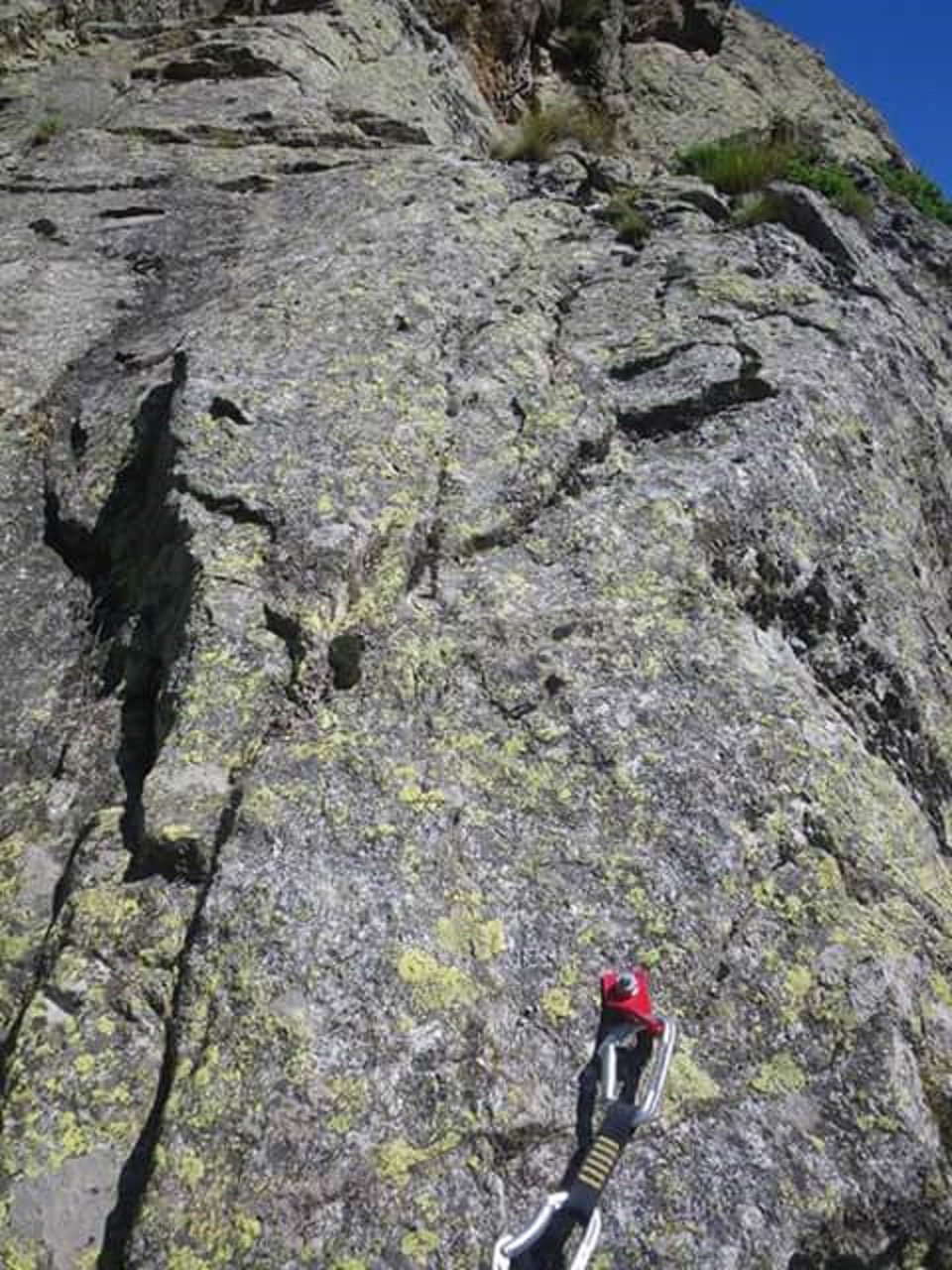 Non abbiamo trovato la targhetta alla base: c’è un cordone e uno spit rosso a inizio via .