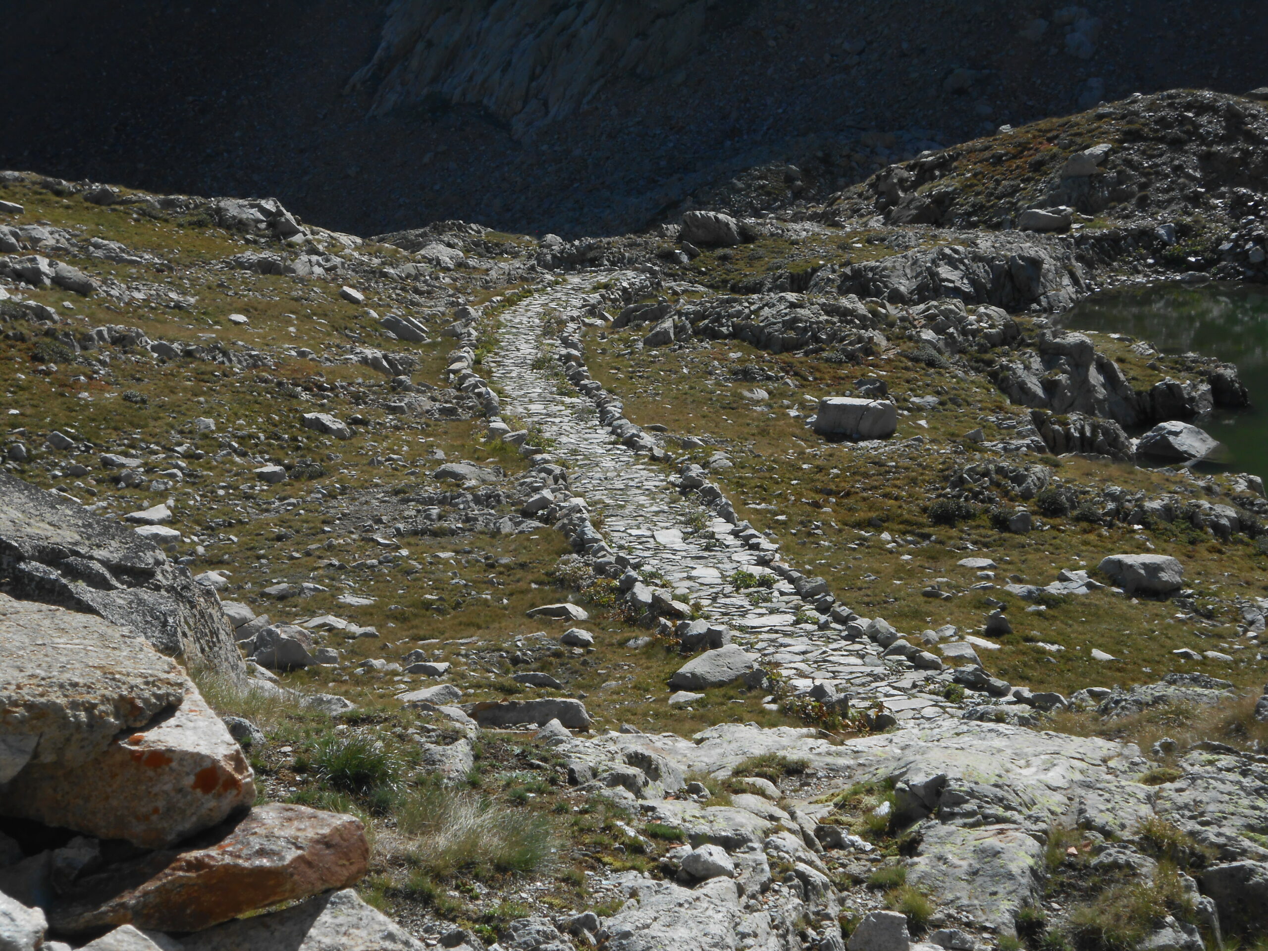 Partiti dalle Terme si seguono le indicazioni per la bassa del Druos, passando per il piano del Valasco e il lago inferiore di Valscura. Invece di deviare per la bassa del Drous si continua sulla traccia (paline verso sx) verso l’evidente bassa della Lausa dove ci sono dei ruderi di casermette ( 2639 mt).