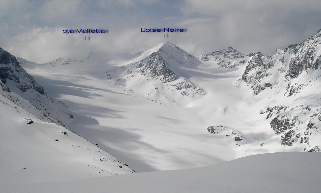Dal rifugio raggiungere in piano il rio che scende dal Glacier d’Arnas; traversalo su ponticello di legno, poi risalire lo stretto vallone, abbastanza ripido, compreso tra la cresta NO della Punta d’Arnas e la Ouille de la Vallettaz.