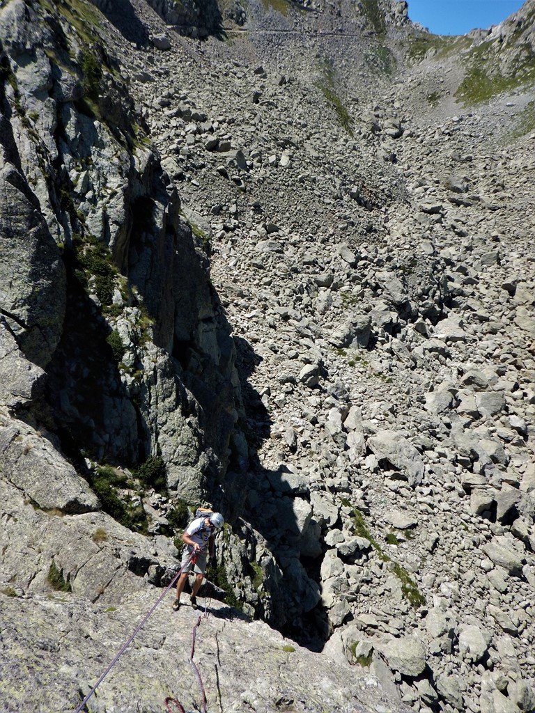 Discesa: consigliata una doppia di 40 mt nel vuoto sul versante opposto.
