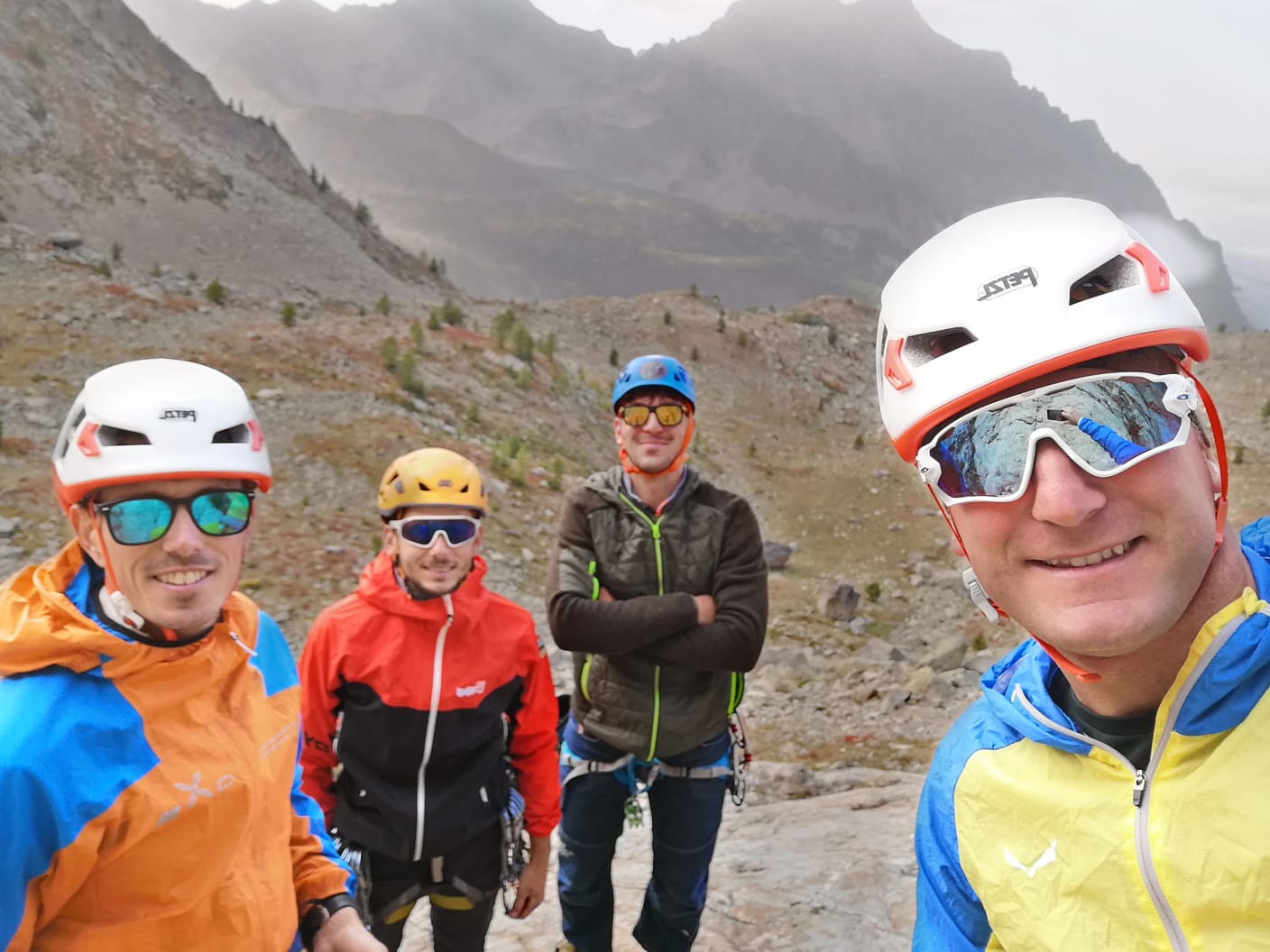 Belli il terzo e il quarto tiro, volendo ci si può calare sulla via con tra calate in doppia, seguendo le soste di salita.